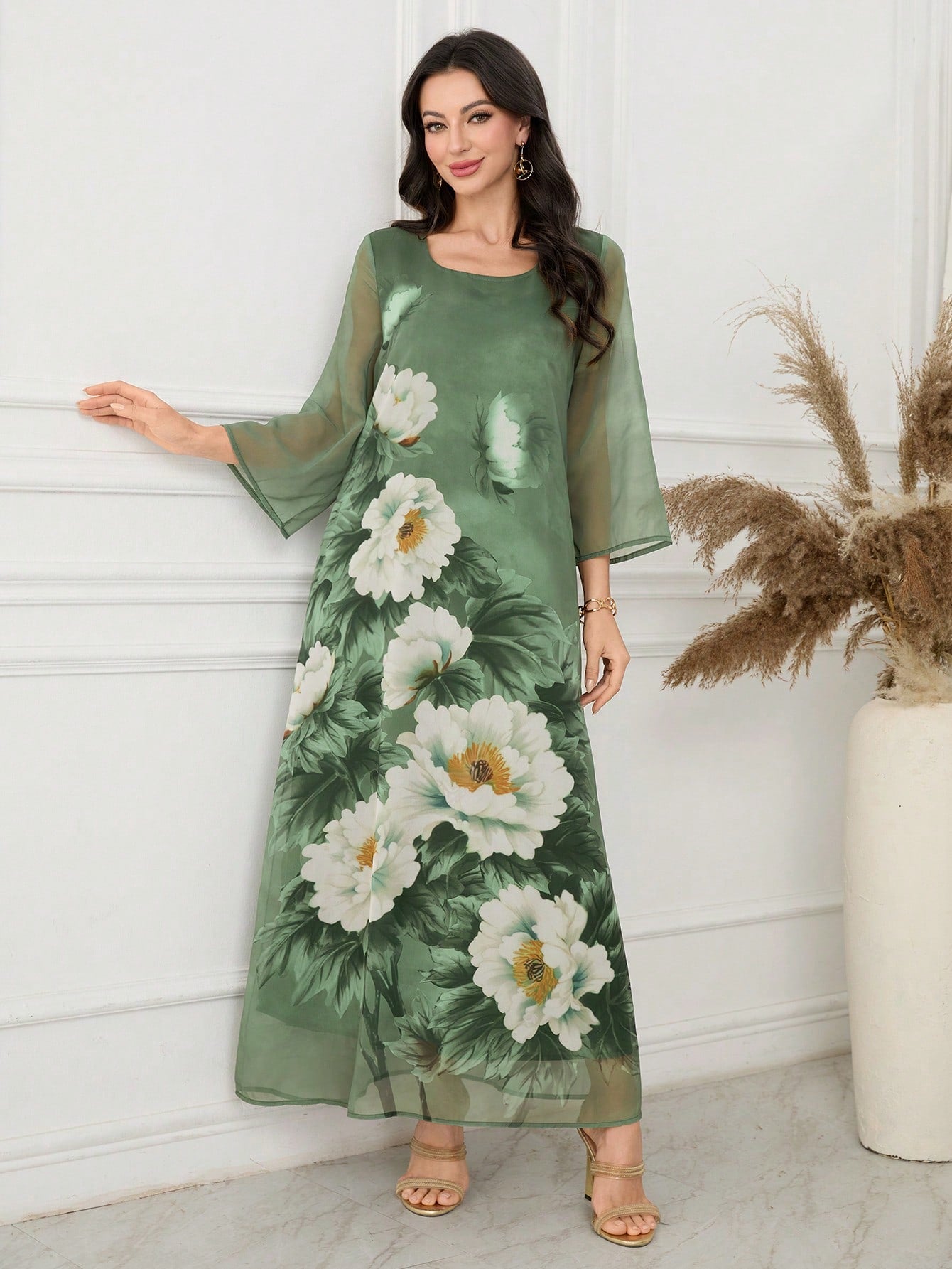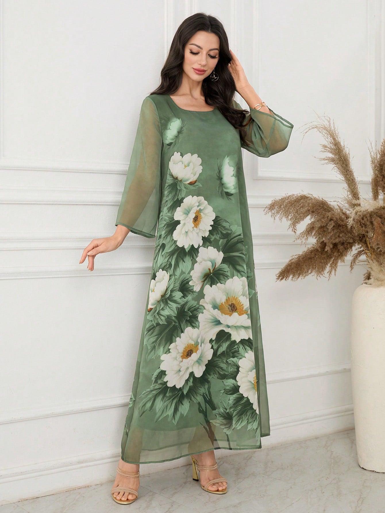 Lacomfia Printed Long Dress,Casual And Fashionable For Everyday Wear