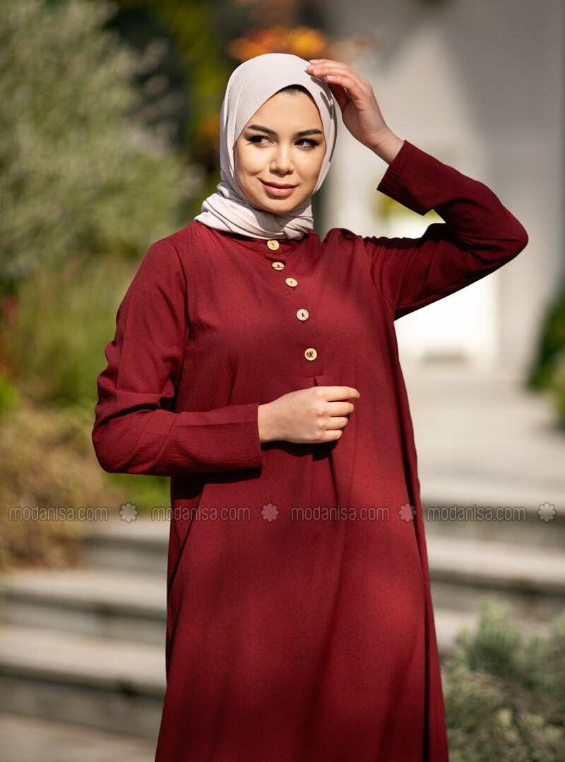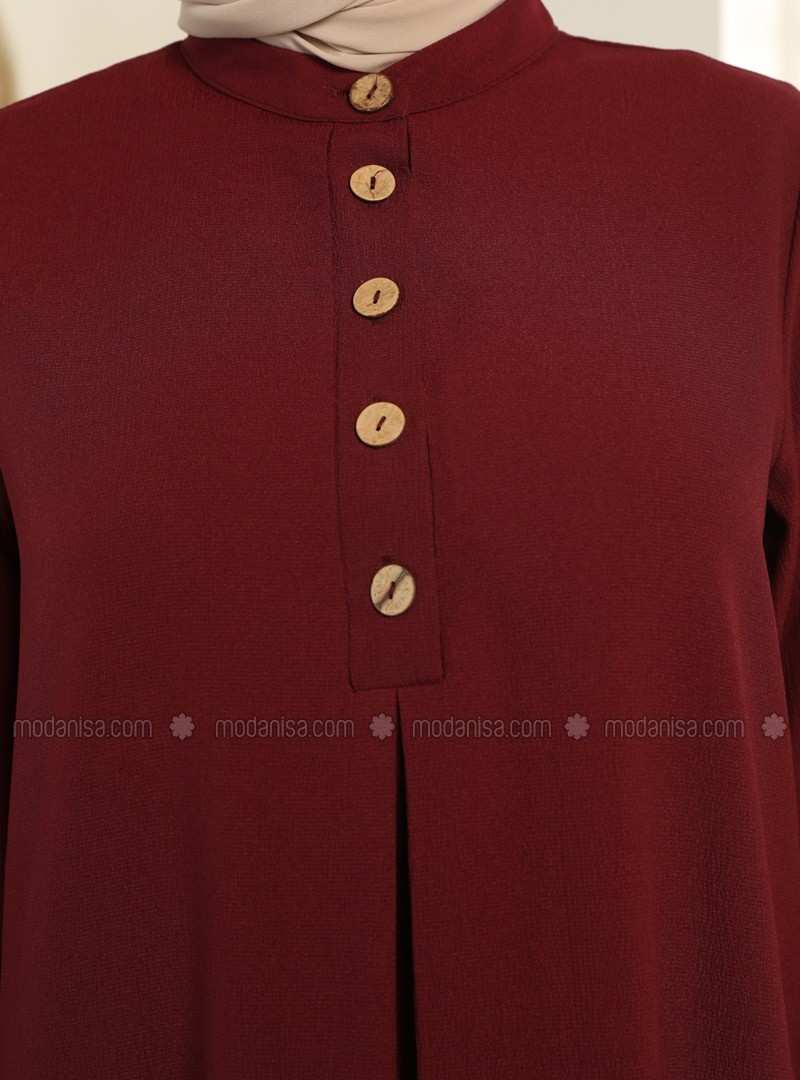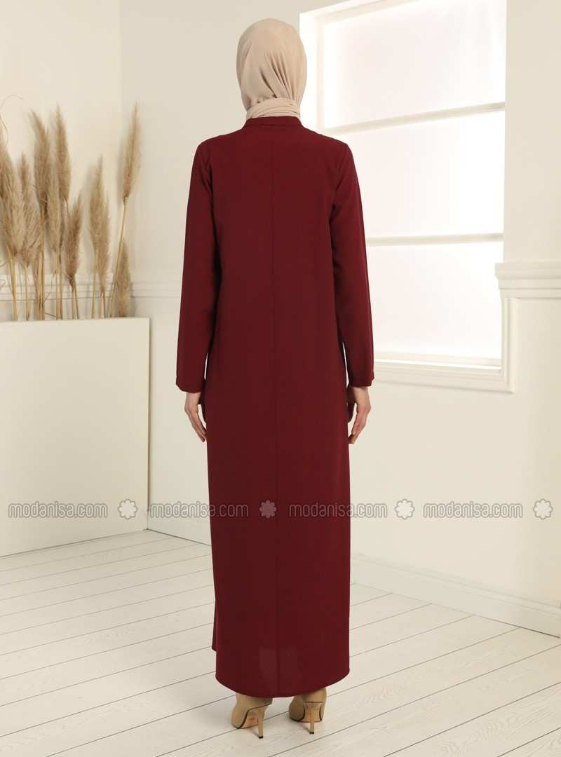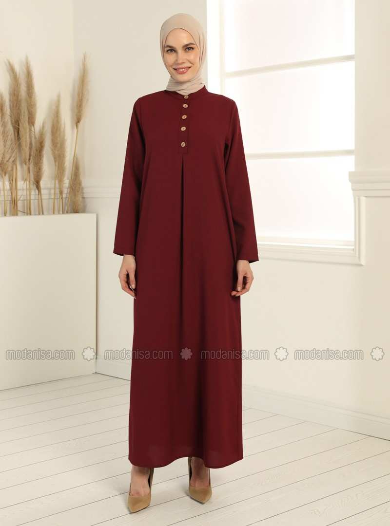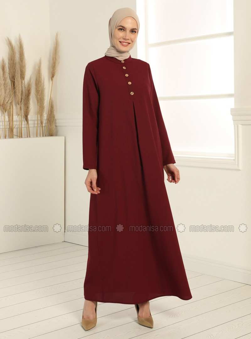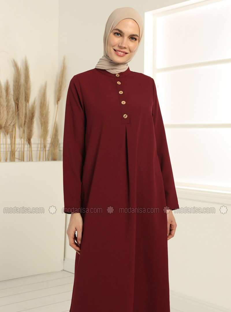 فستان كستنائي بياقة بأزرار غير مُبطن