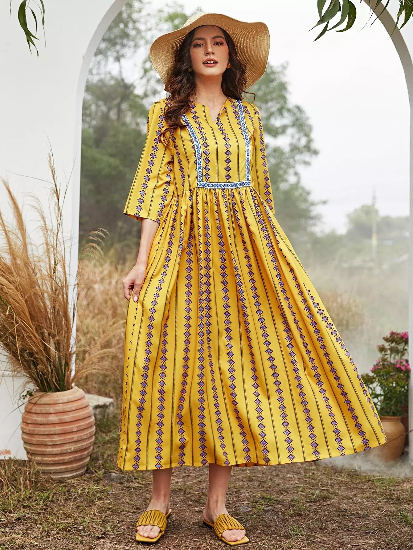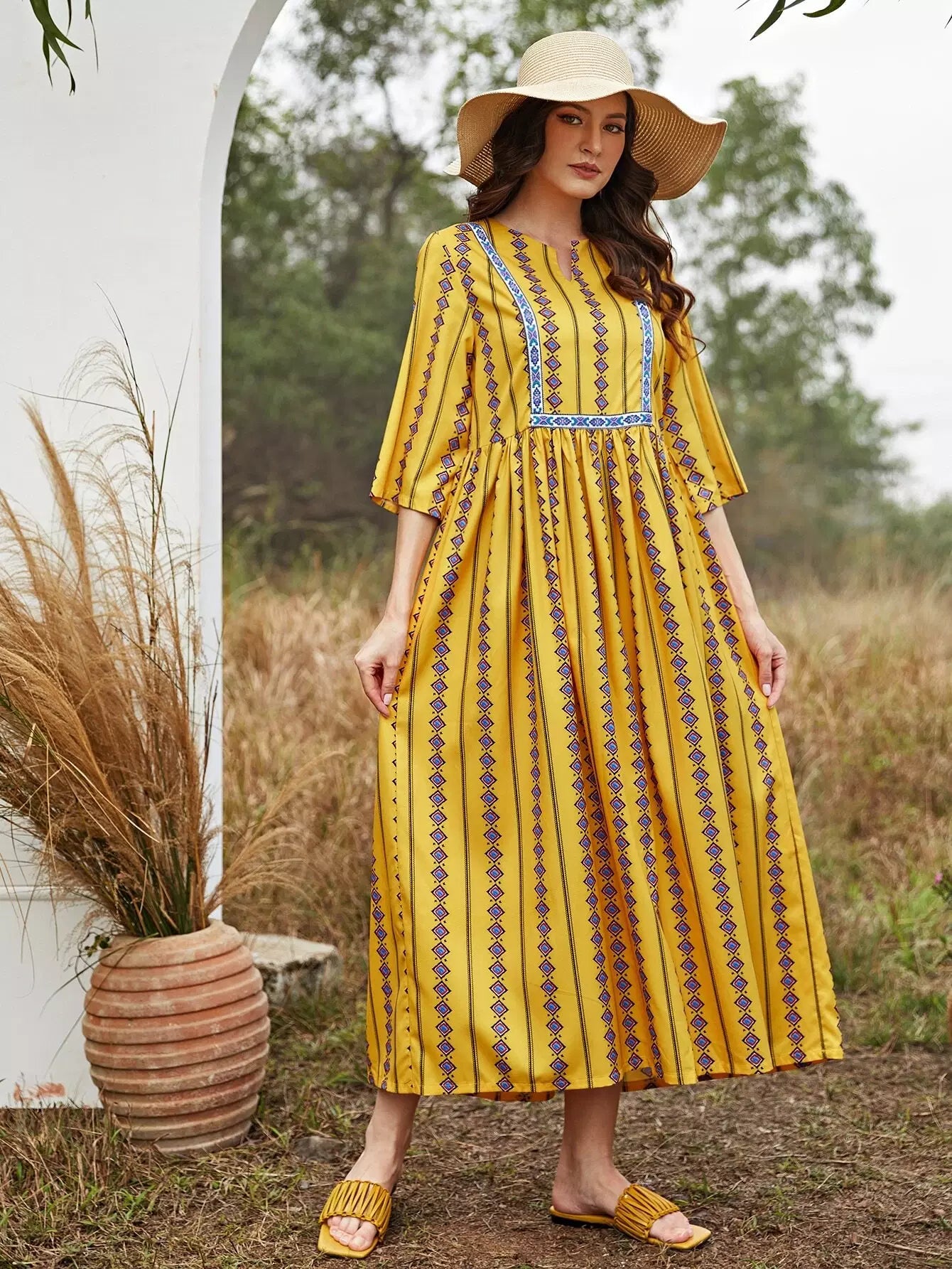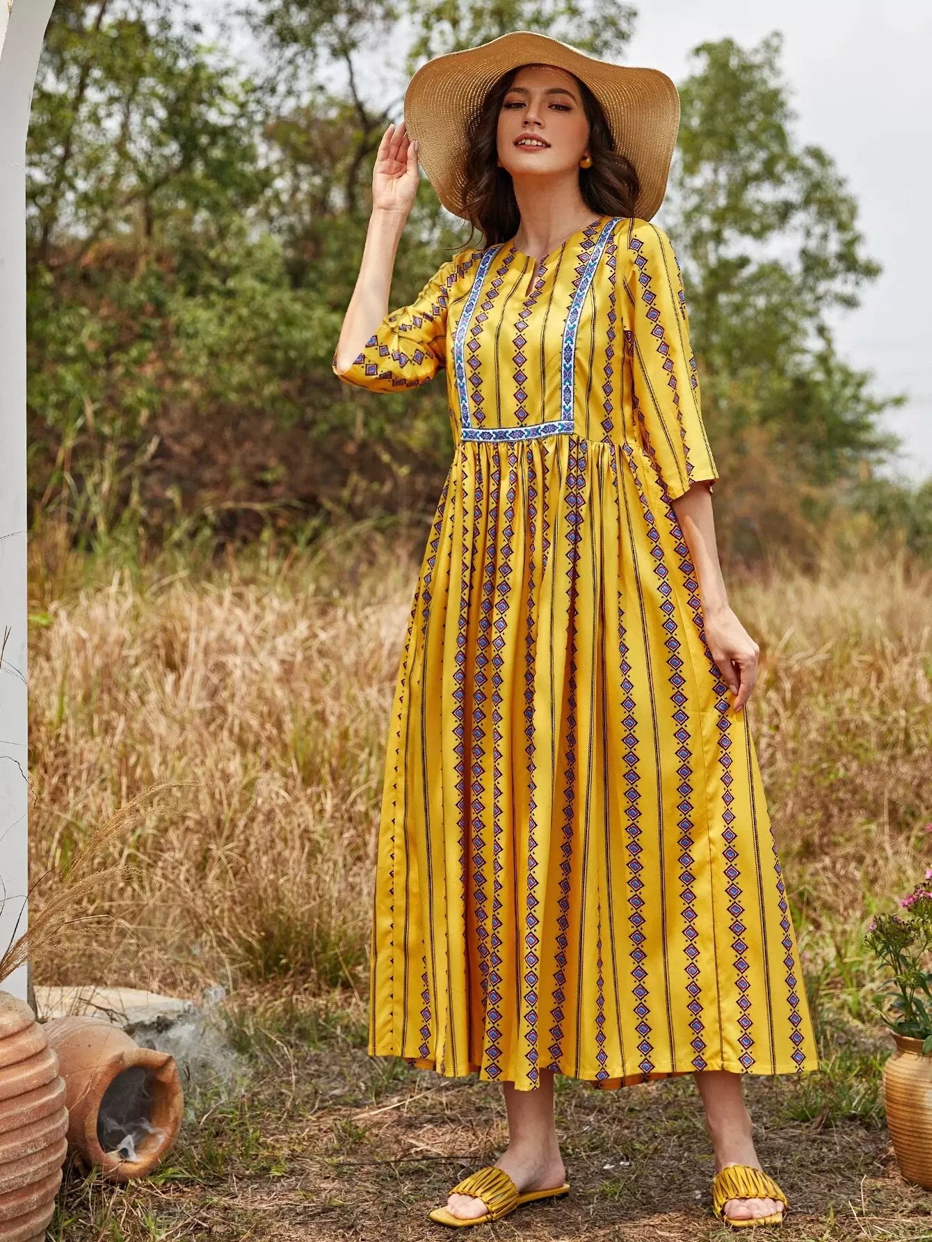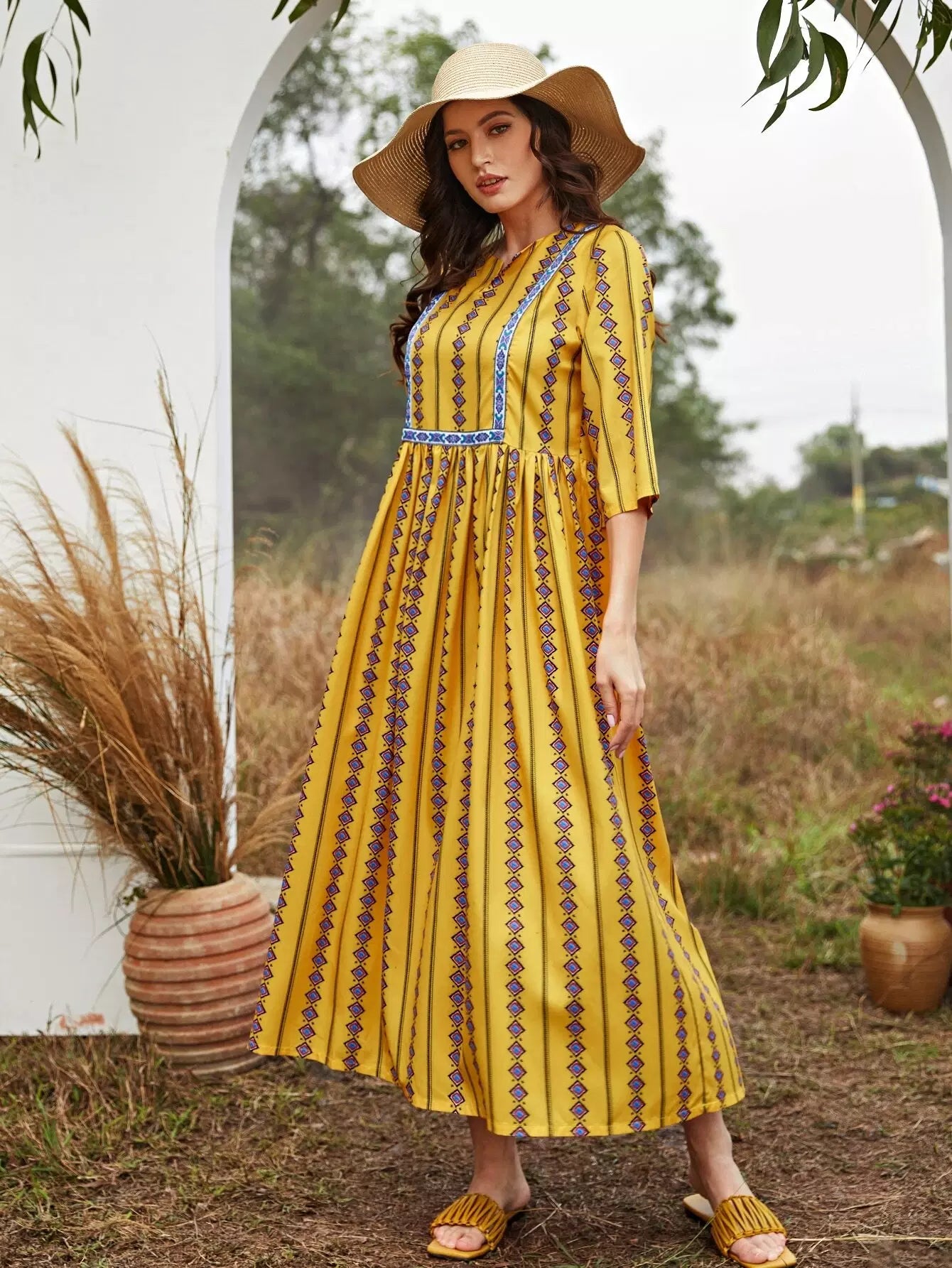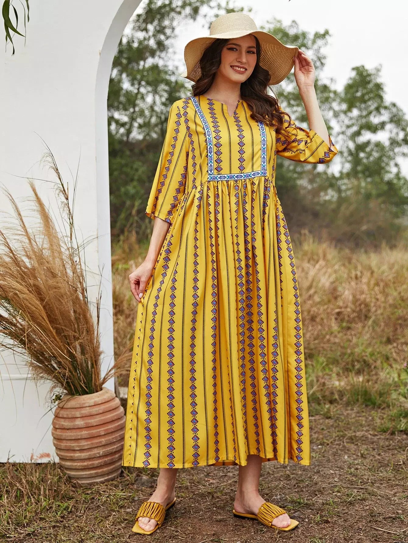 فستان برقبة رقبة رقبة رقيق مطبوع بنقشة أرجيل