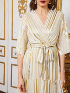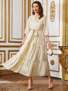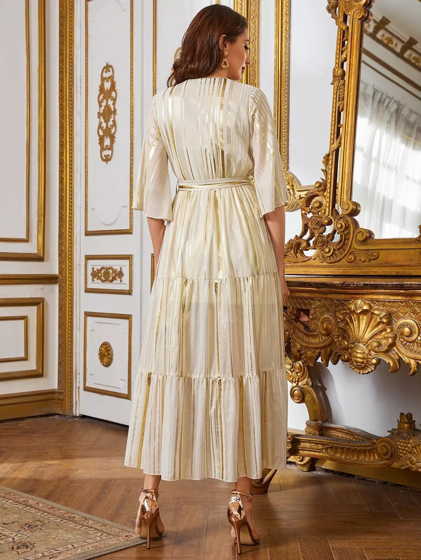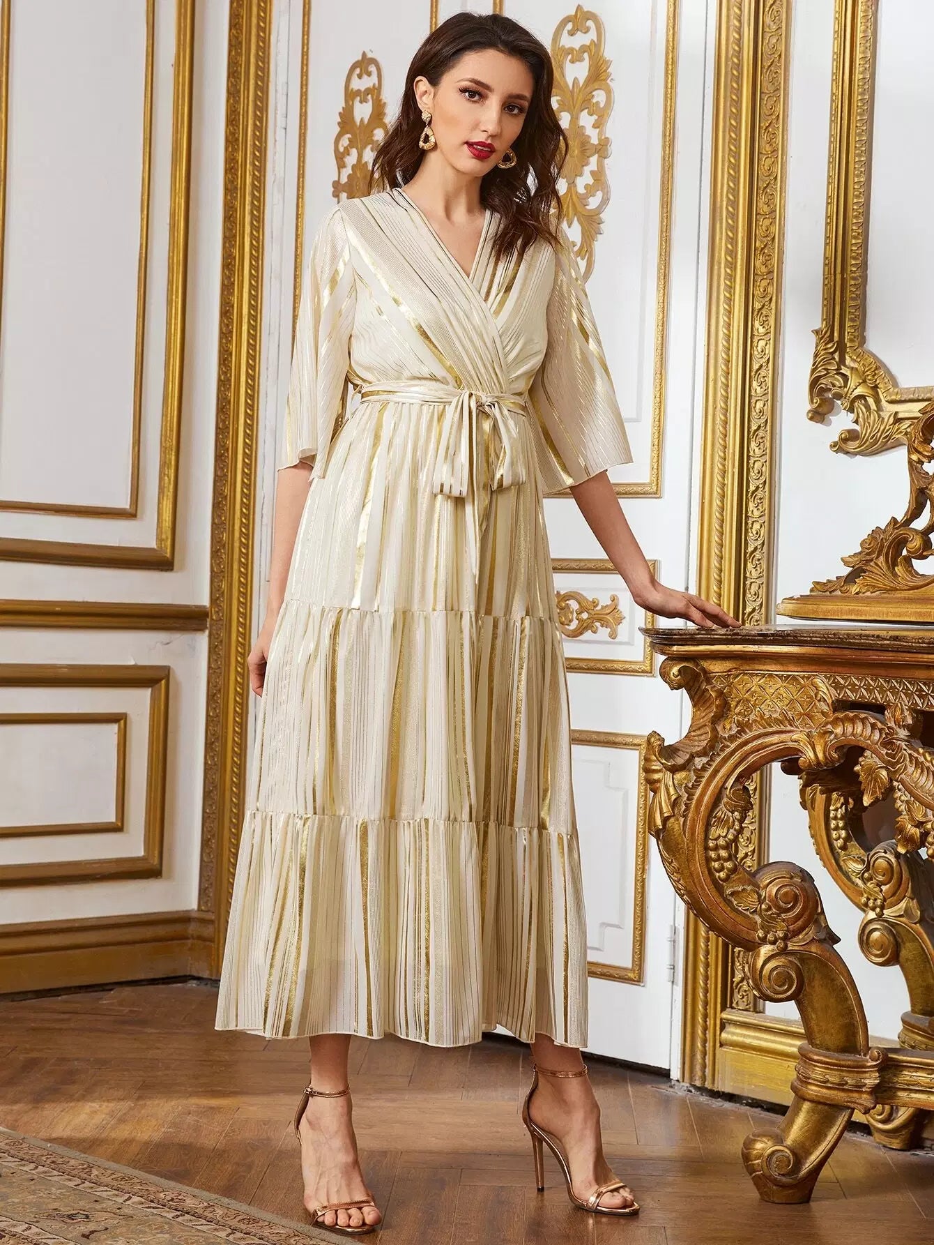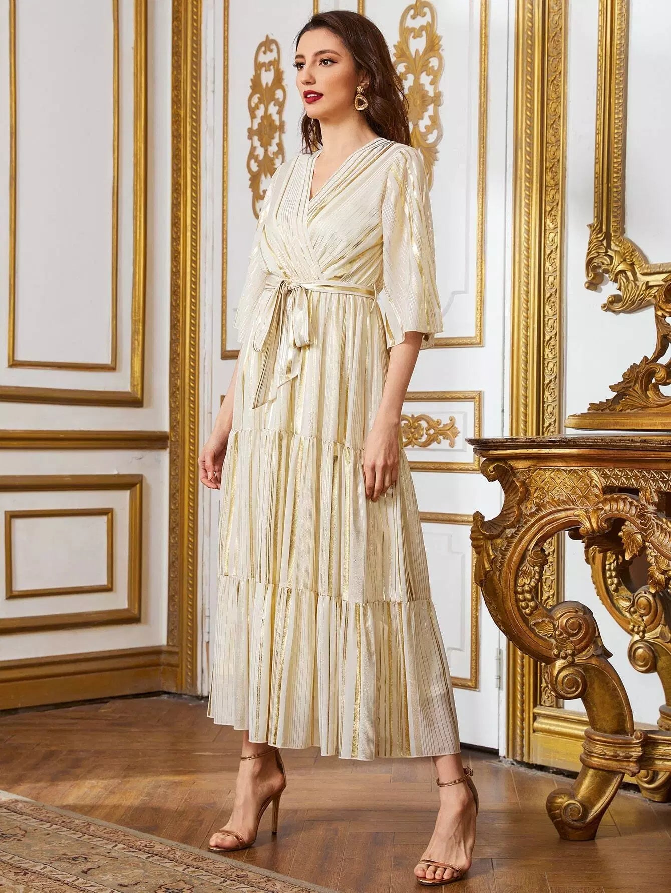 فستان برقبة كشكش بفتحة عنق مكشكش بدون حزام