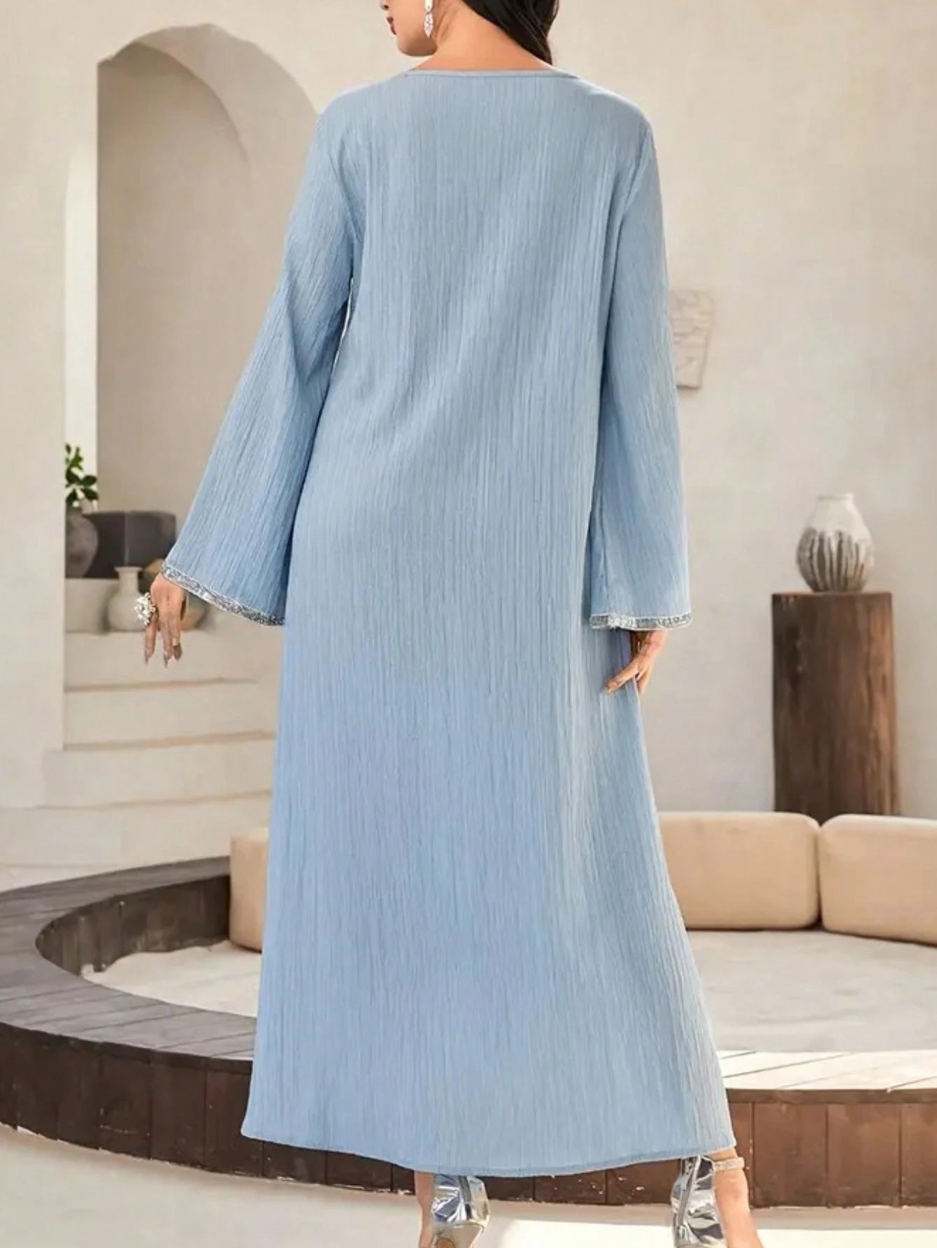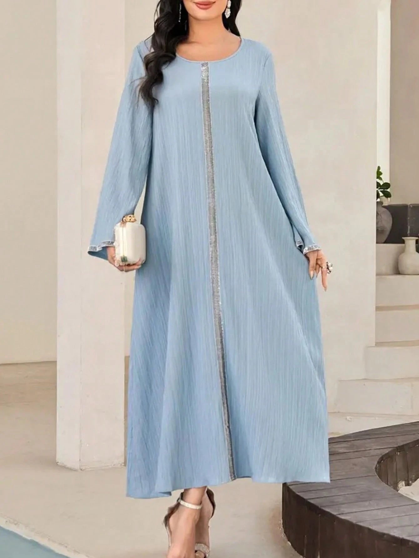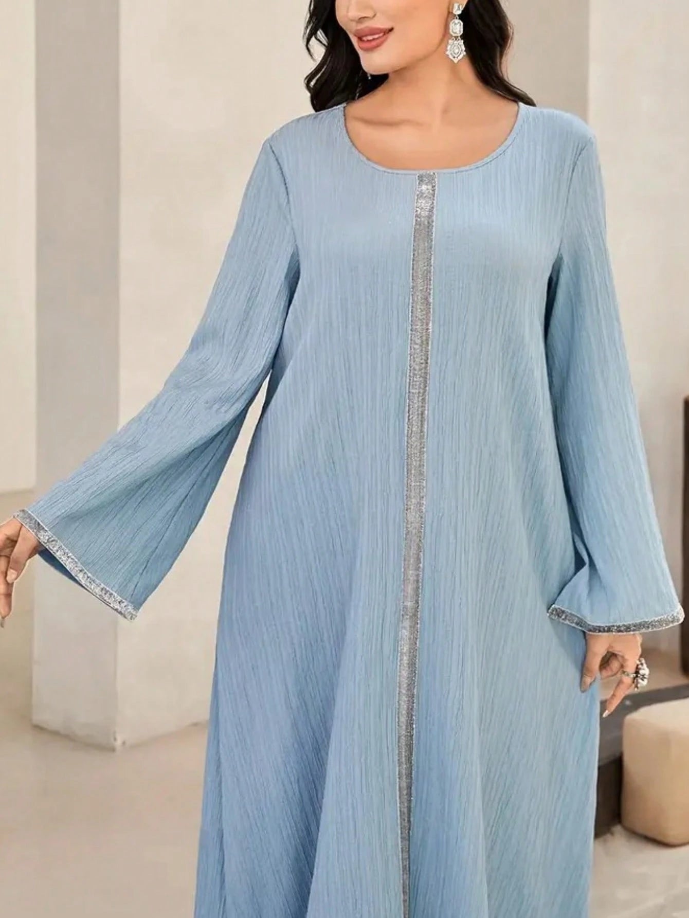 Women's Elegant Sequin Ribbon Decorated Arabian Long Robe, Modest Kaftan