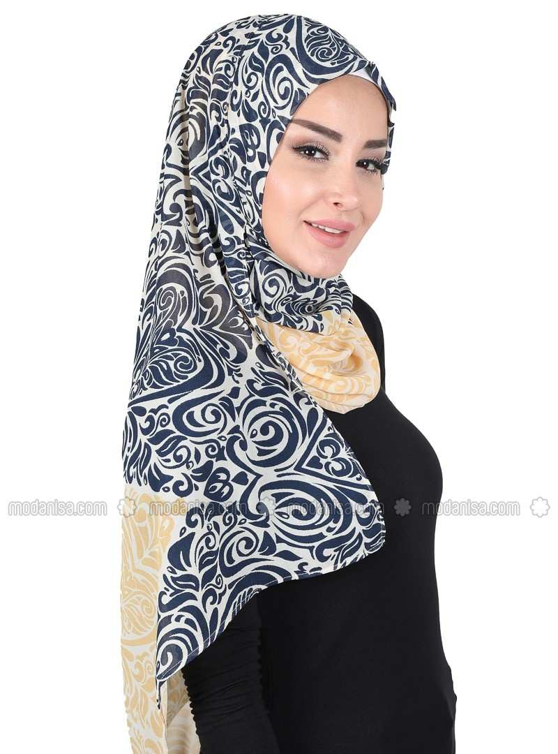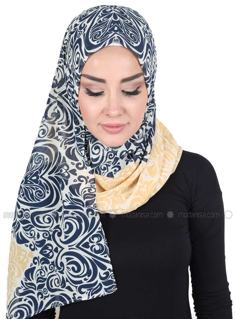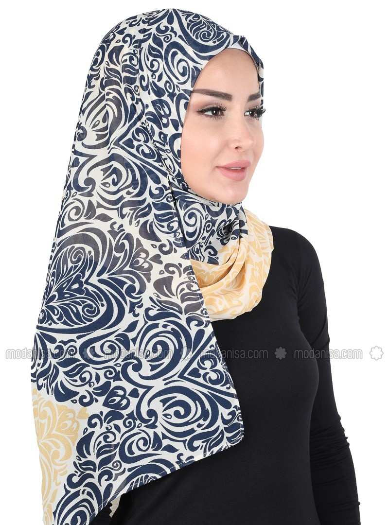 وشاح فوري مطبوع باللون الأزرق الداكن
