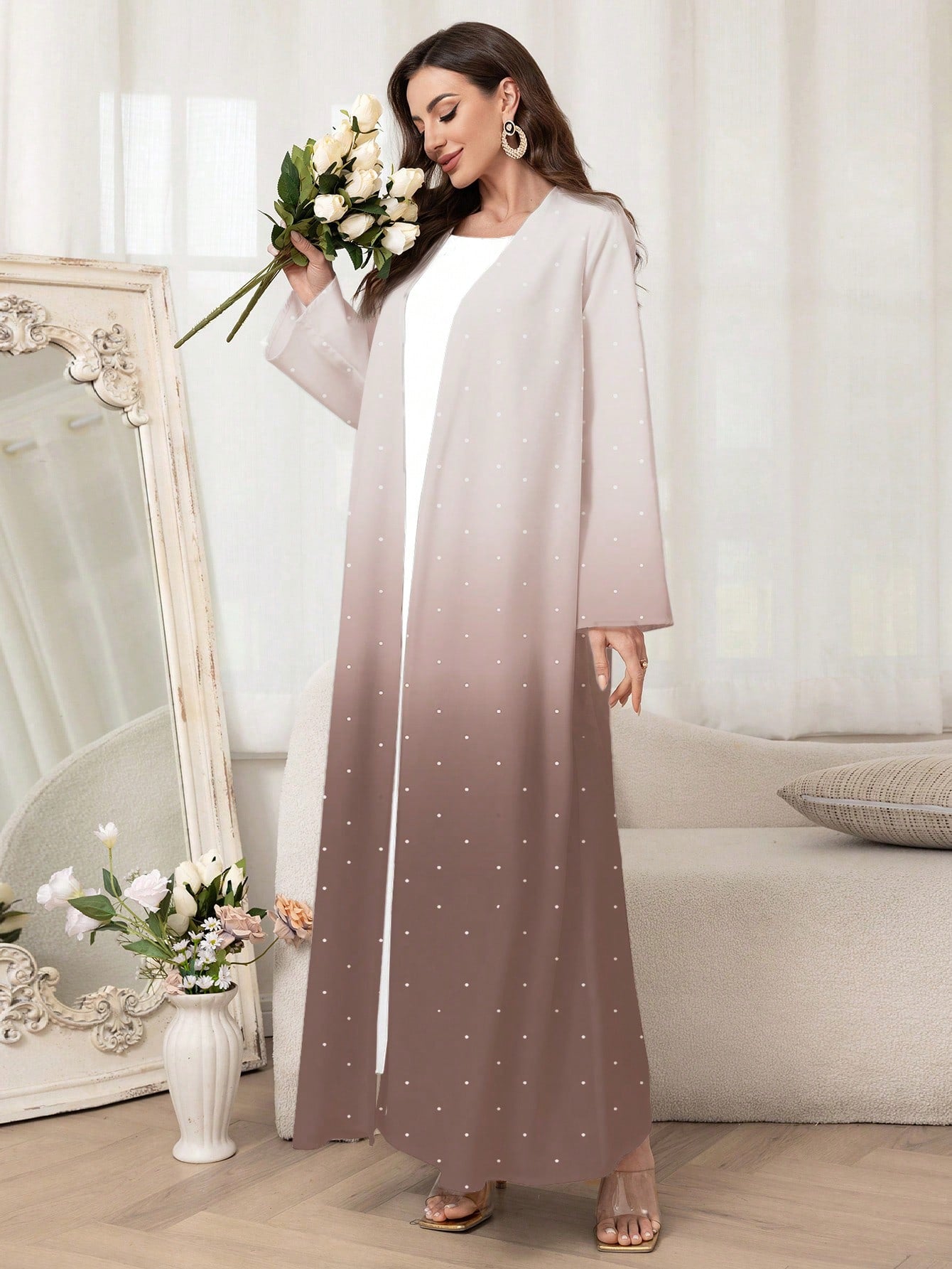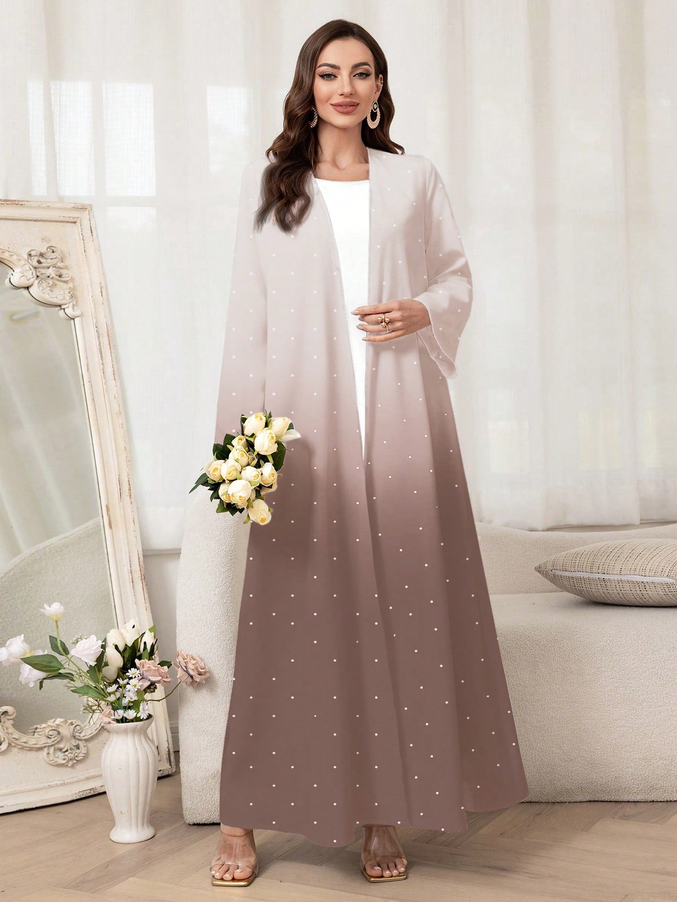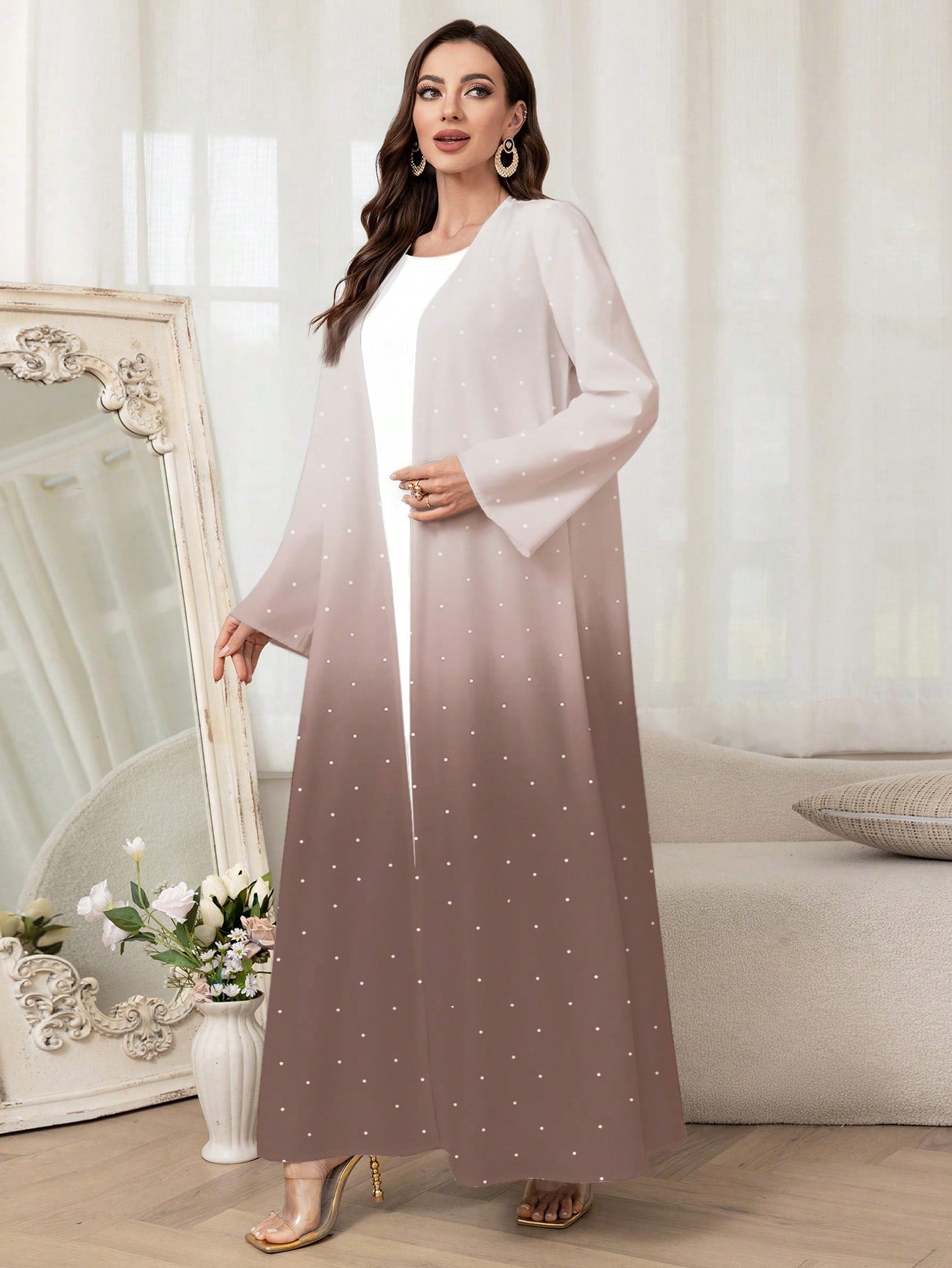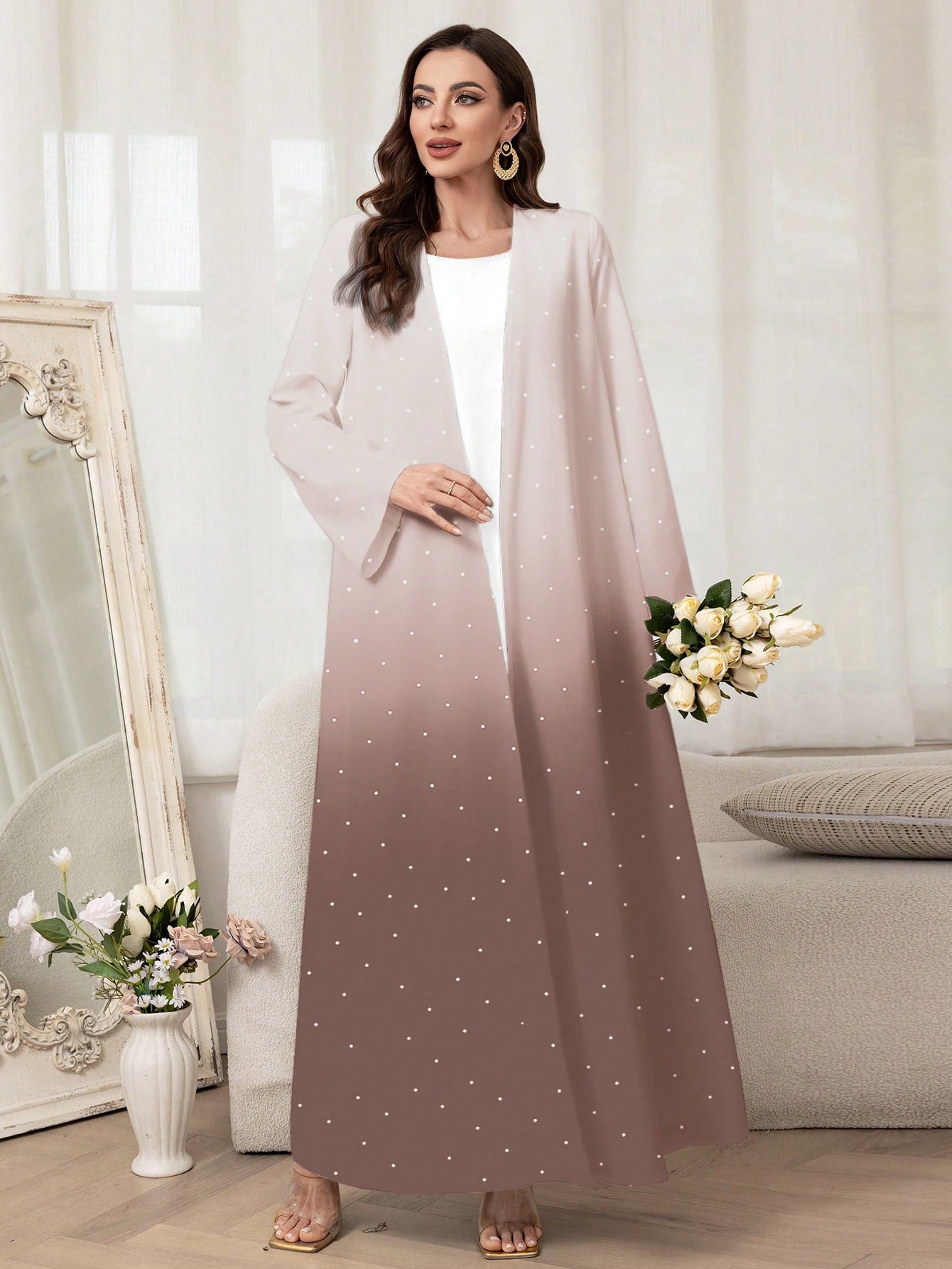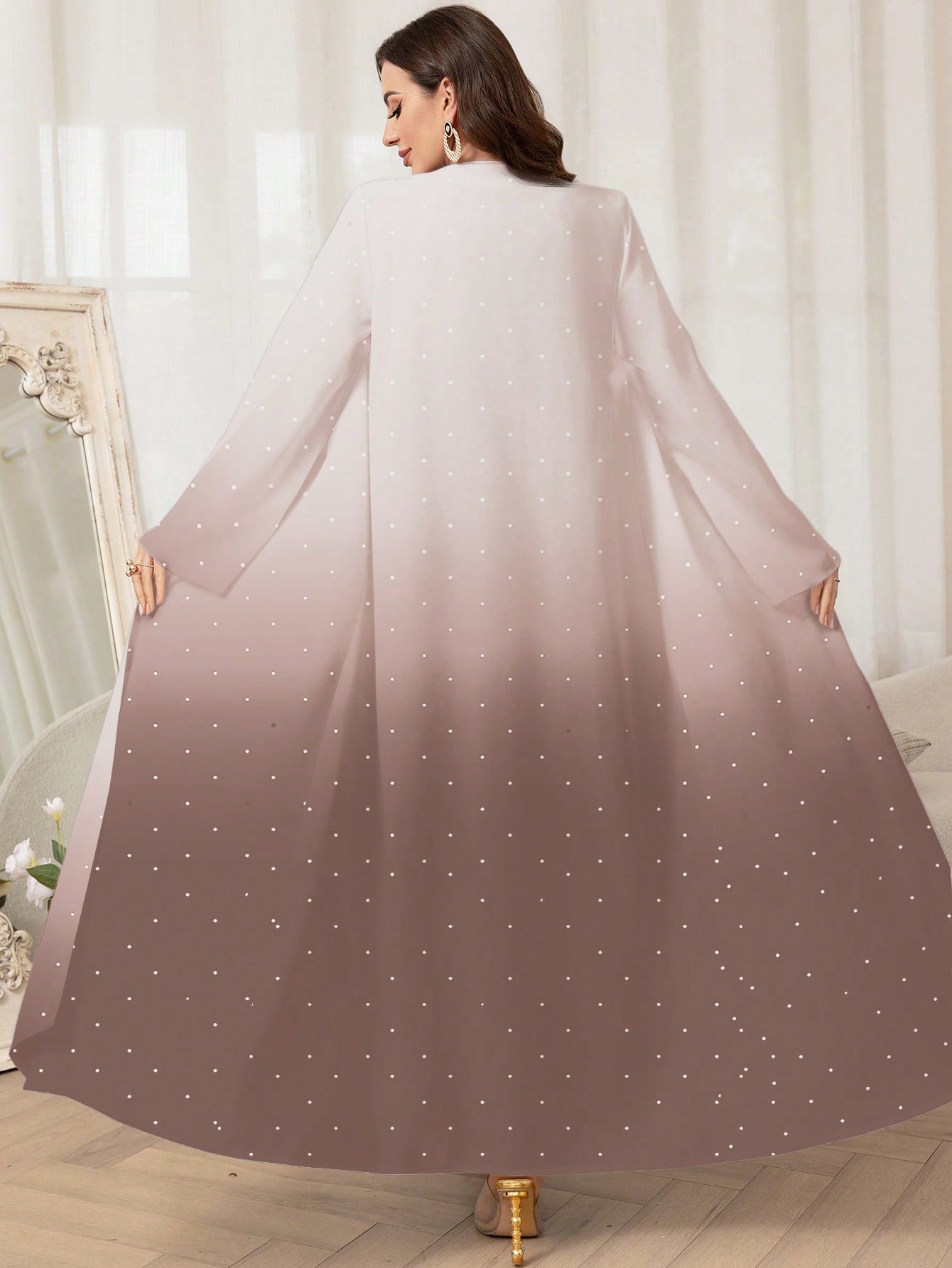 women Al Najma Women Ombre Polka Dot Print Long Sleeve Arabic Abaya Cover-Up Jacket