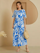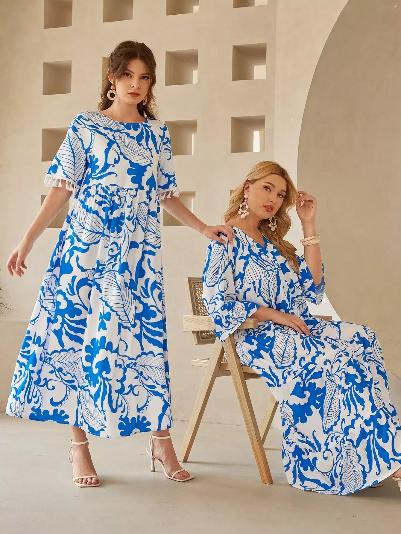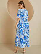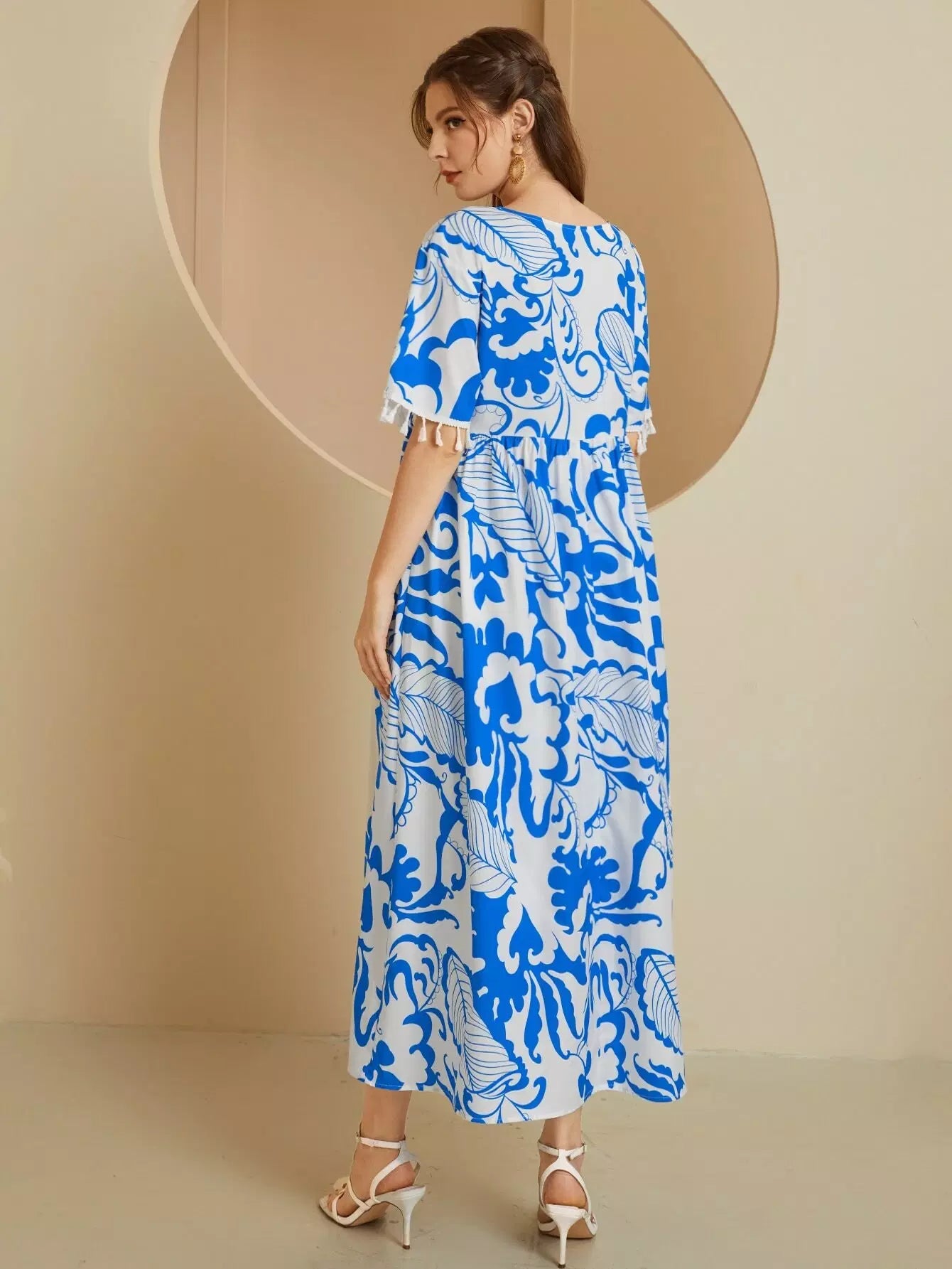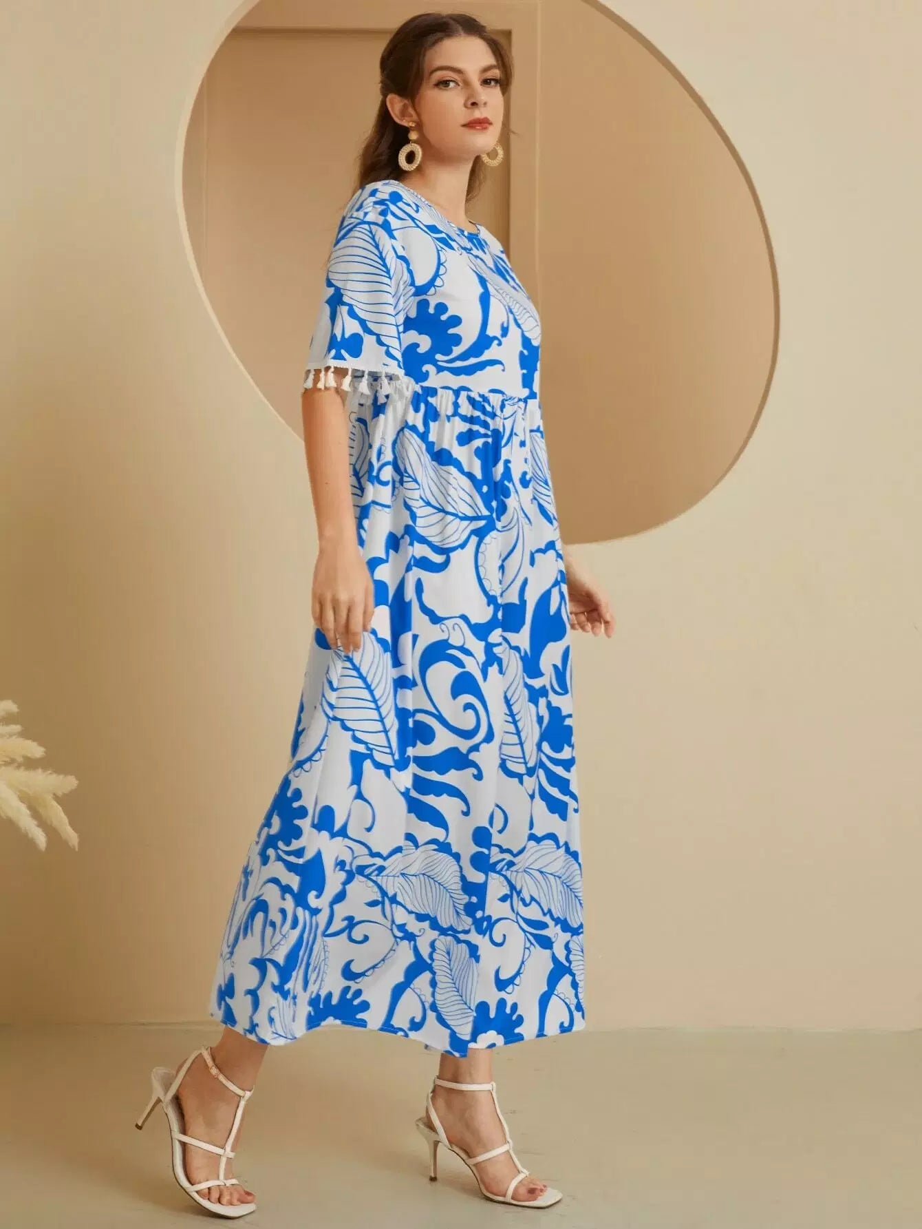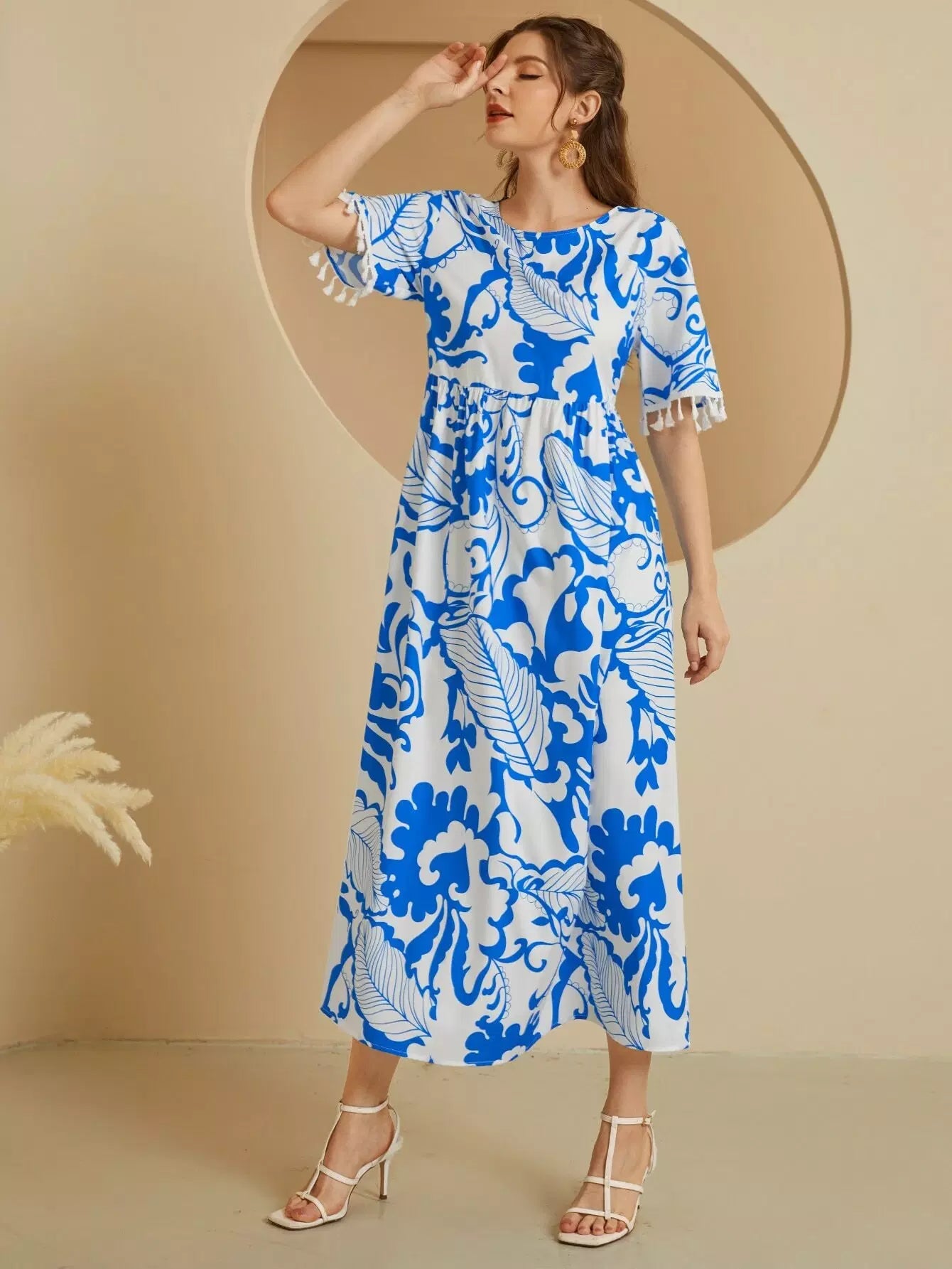 1 قطعة فستان ضيق مزين بطبعة نباتية بطبعة نباتية وشرابة