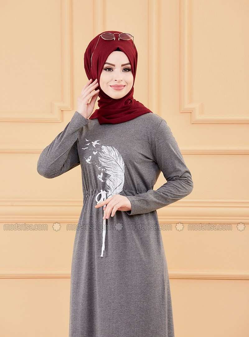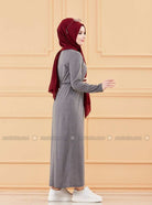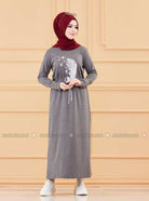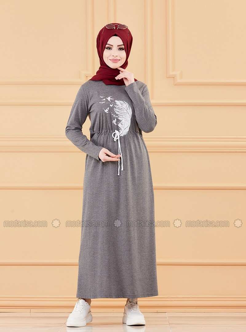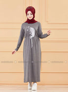فستان أنثراسايت ذو رقبة مستديرة وغير مُبطن