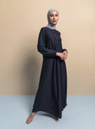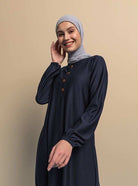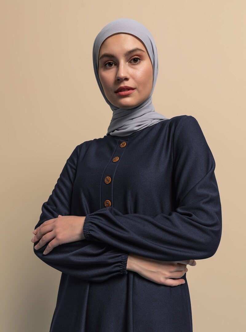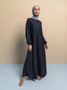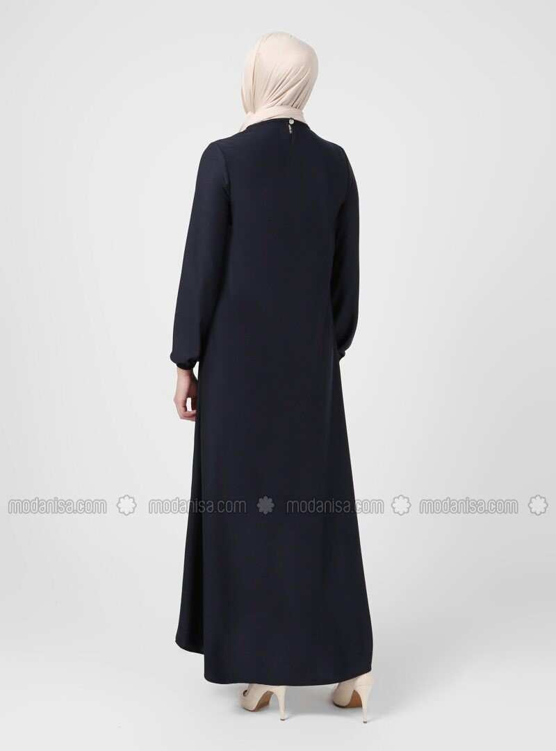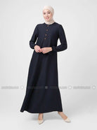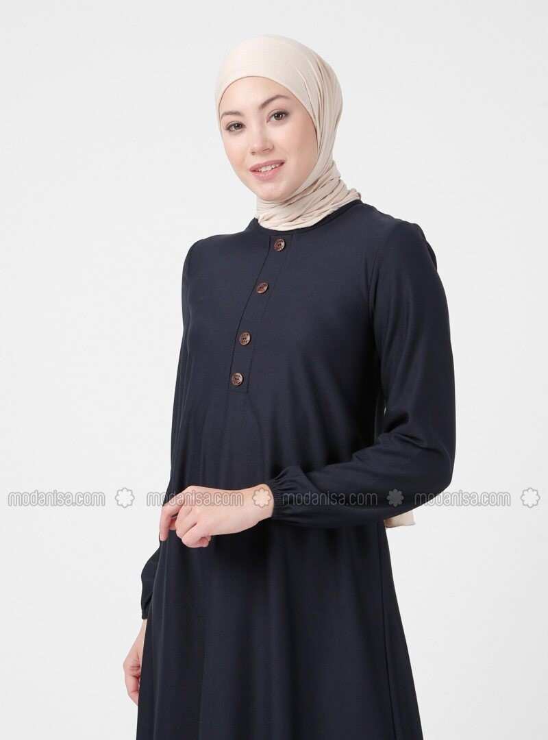 فستان مزين بأزرار باللون الأزرق الداكن ECESUN