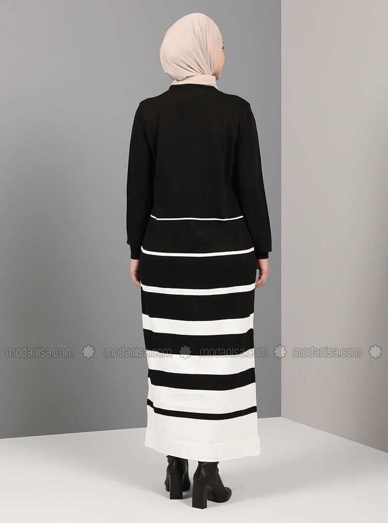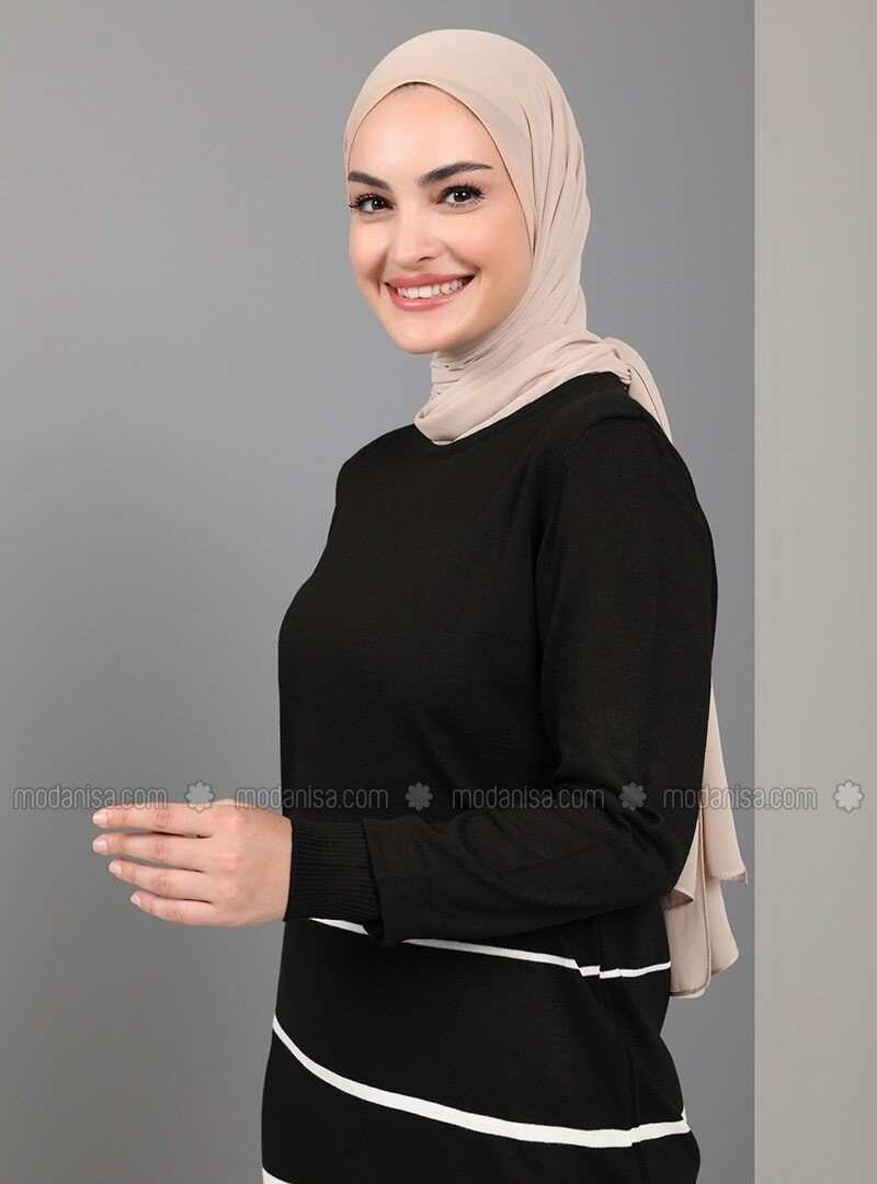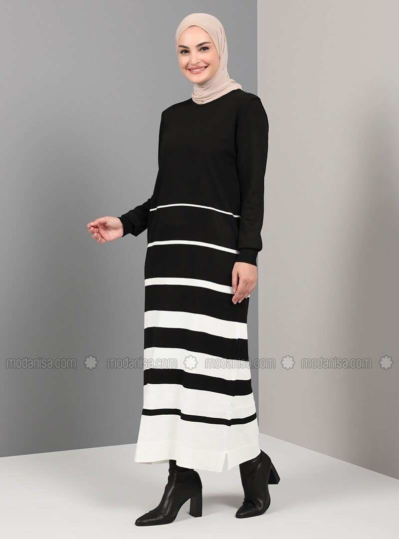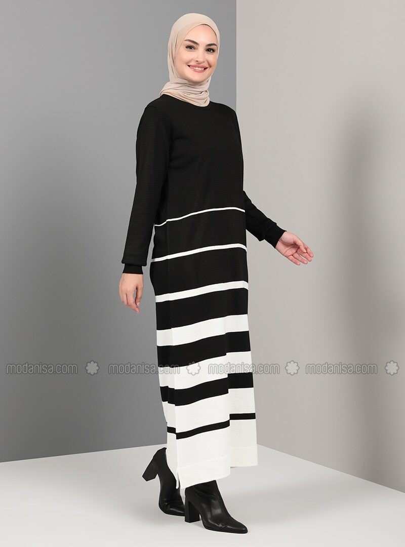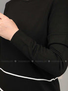 طاقم الرقبة خط تفصيلي تريكو فستان طويل تافين الأسود