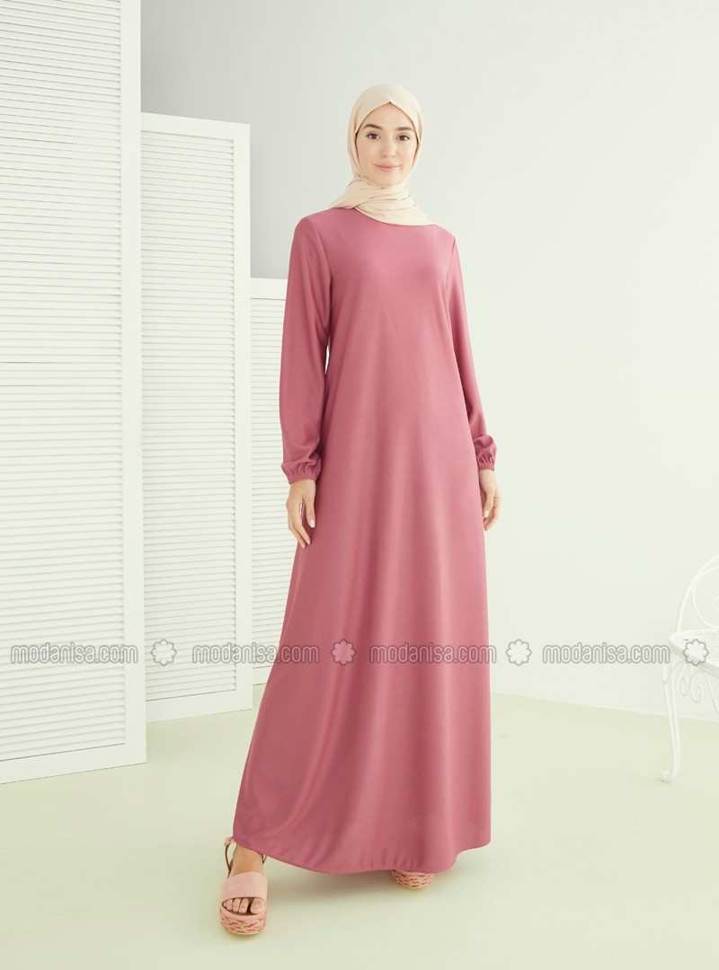 فستان غير مُبطن برقبة دائرية من Dusty Rose Hac ve Umre