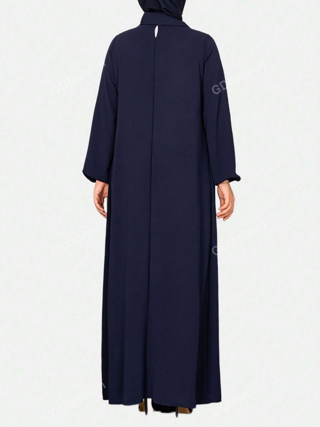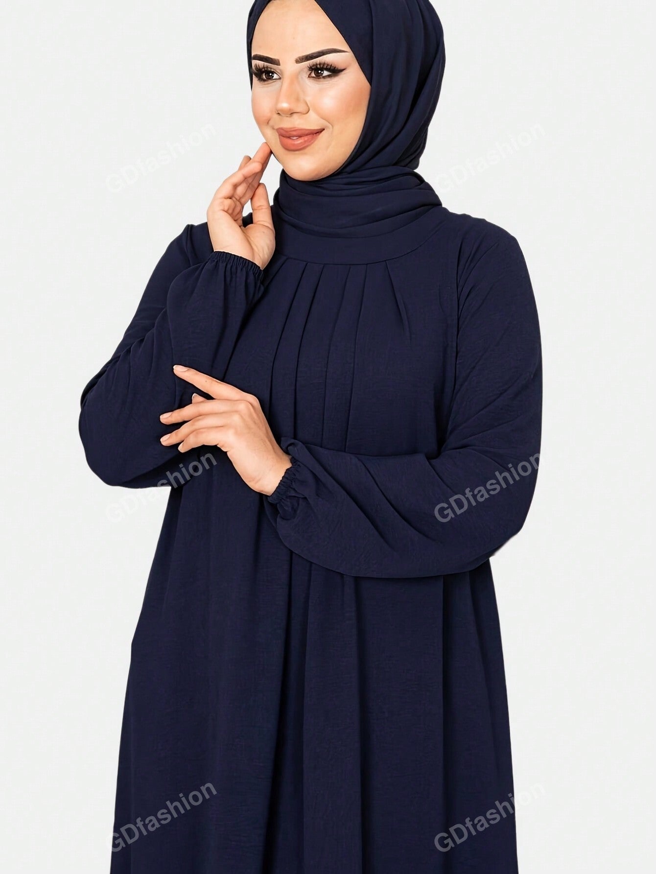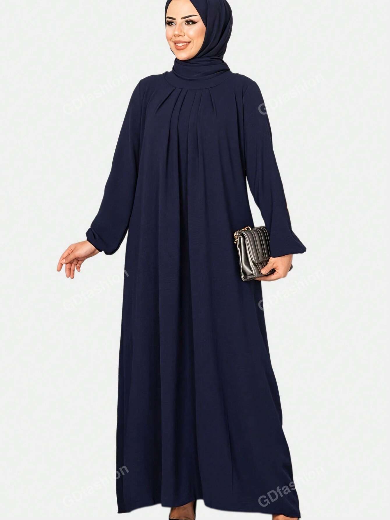 Fashion Women's Casual Retro Plain Round Neck Long Loose Robe Modest Long Sleeve Dress Without the hijab