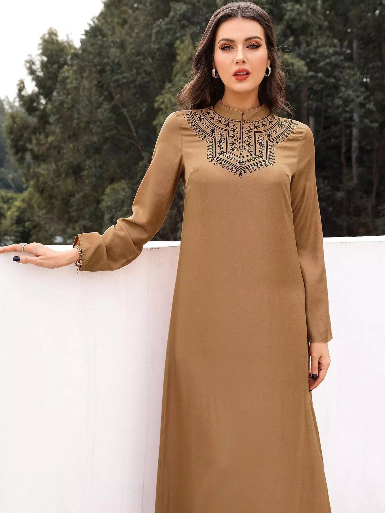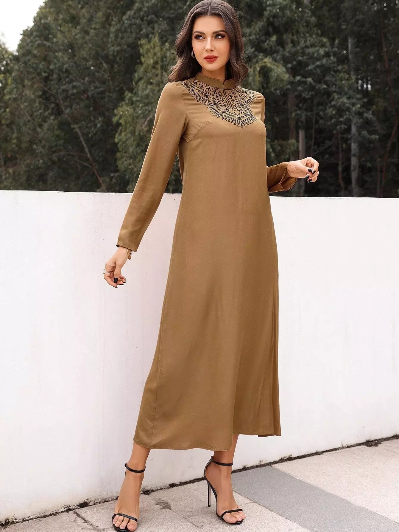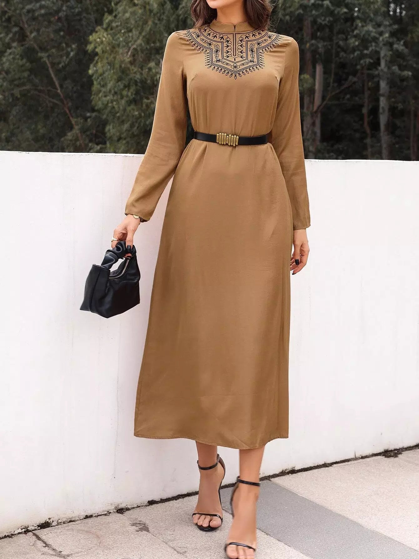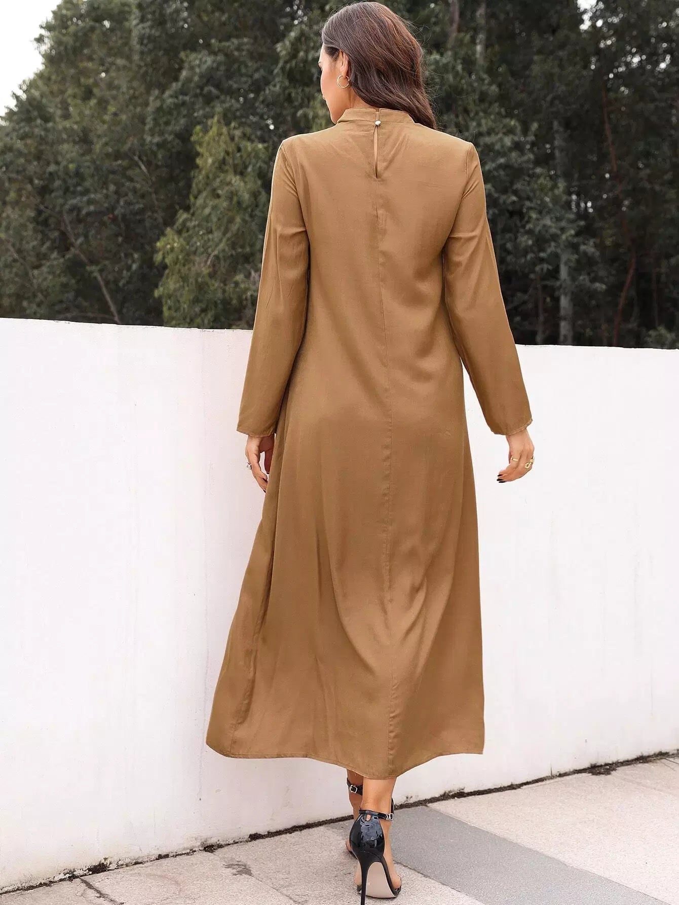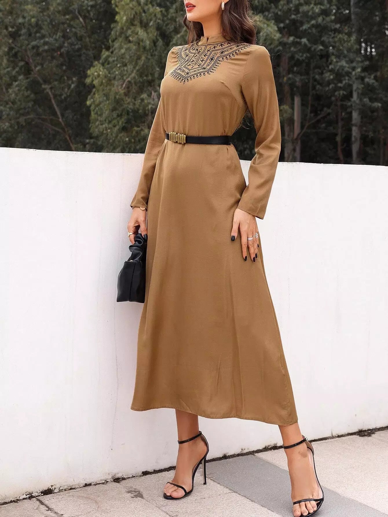 فستان بطبعة زهور وياقة وهمية بدون حزام