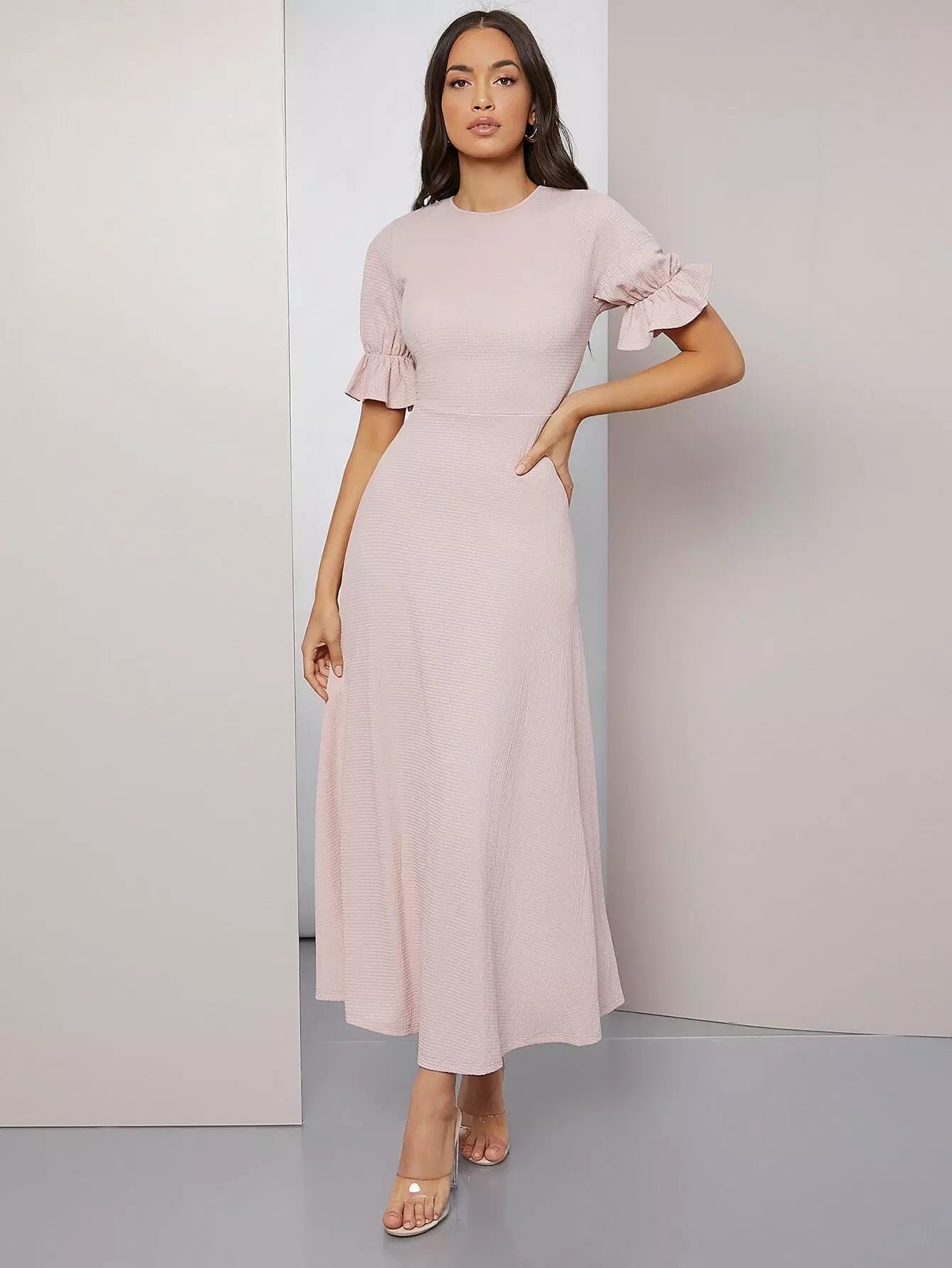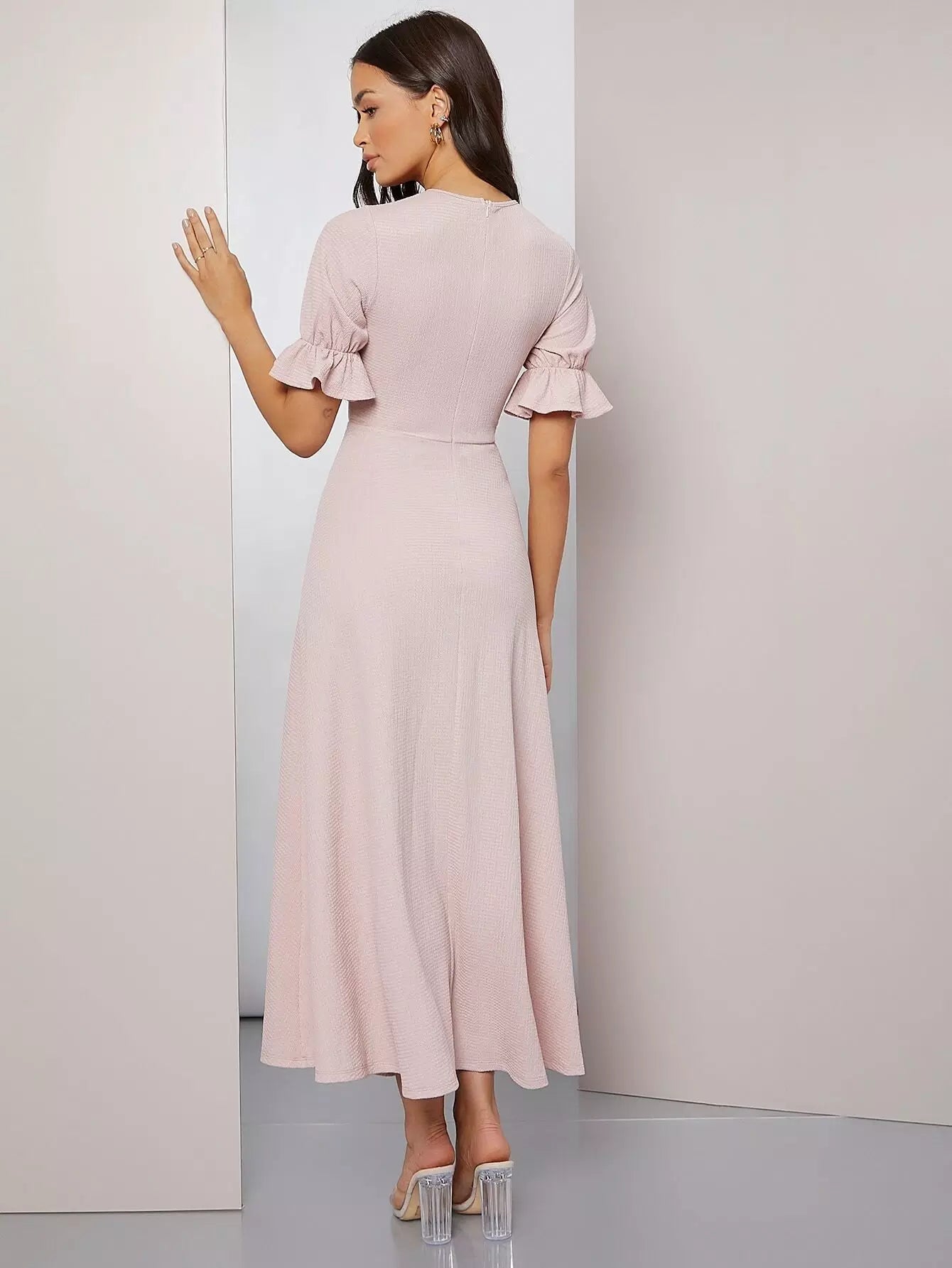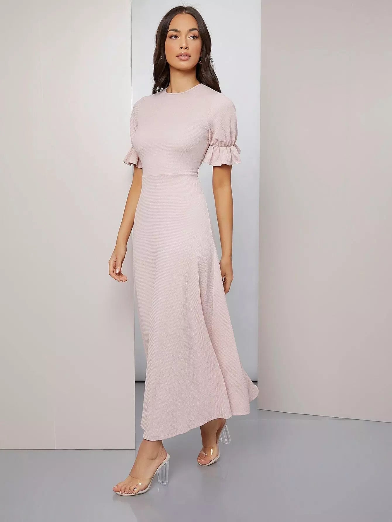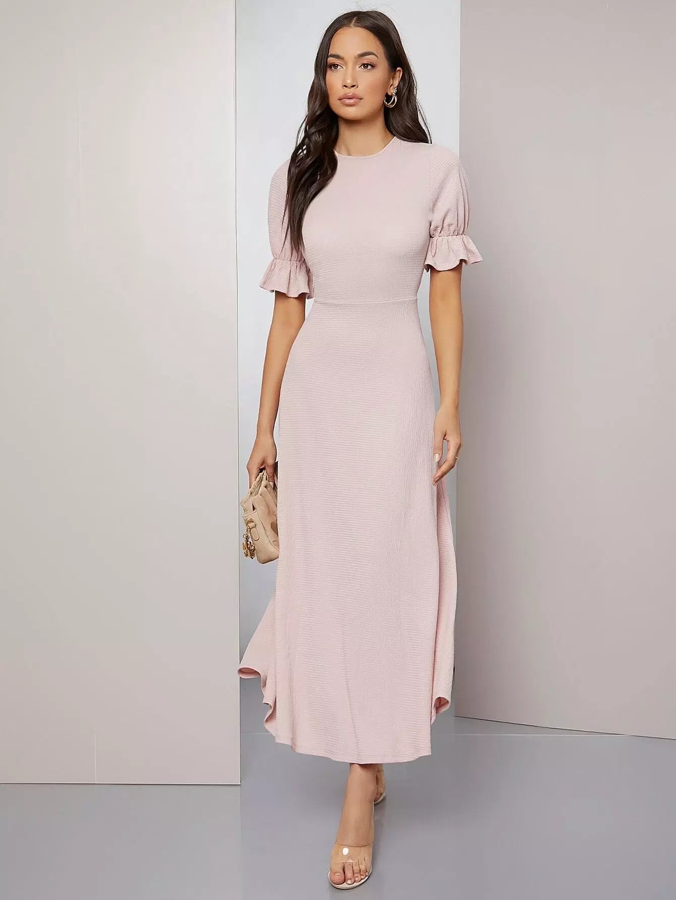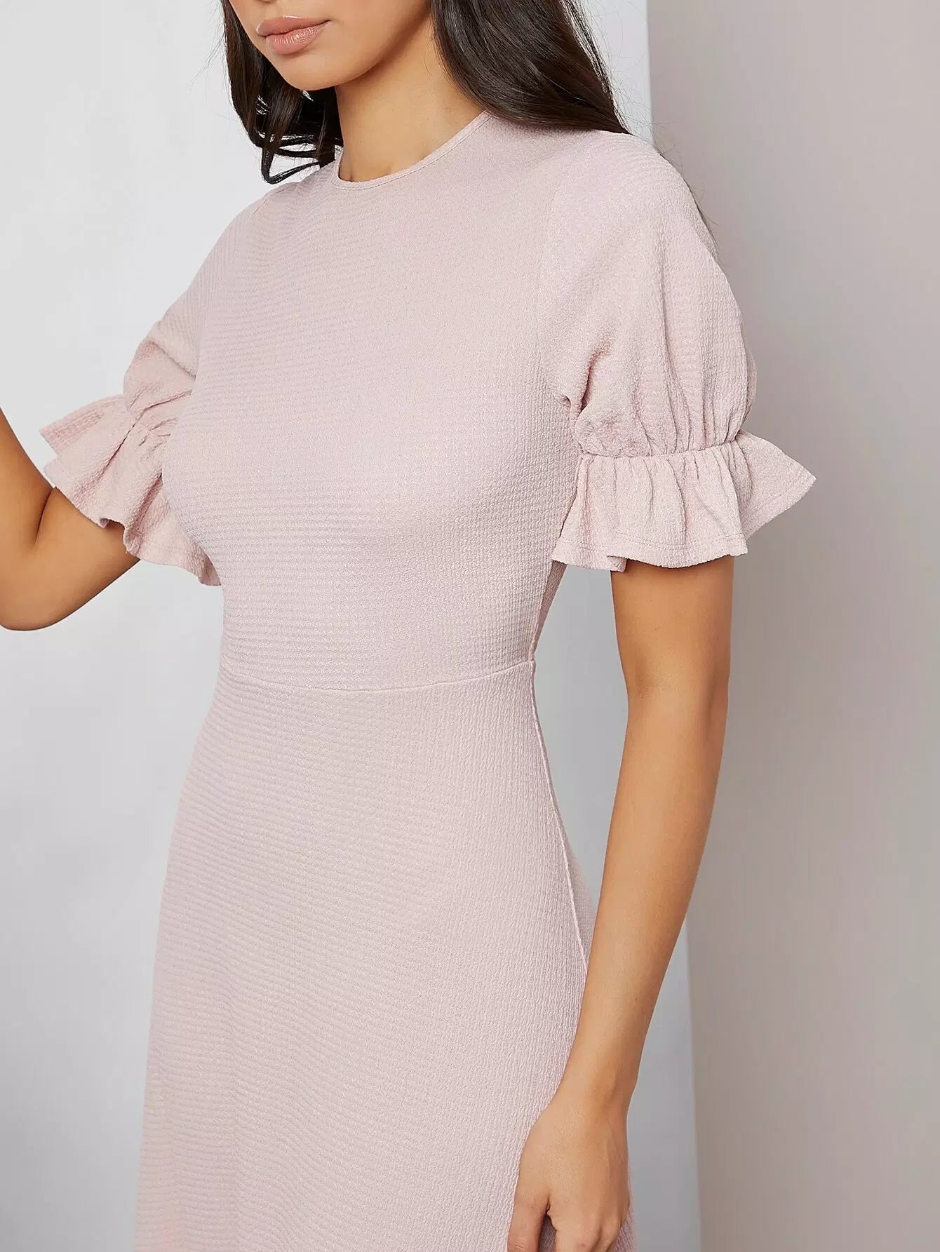 فستان سادة بأكمام منفوشة
