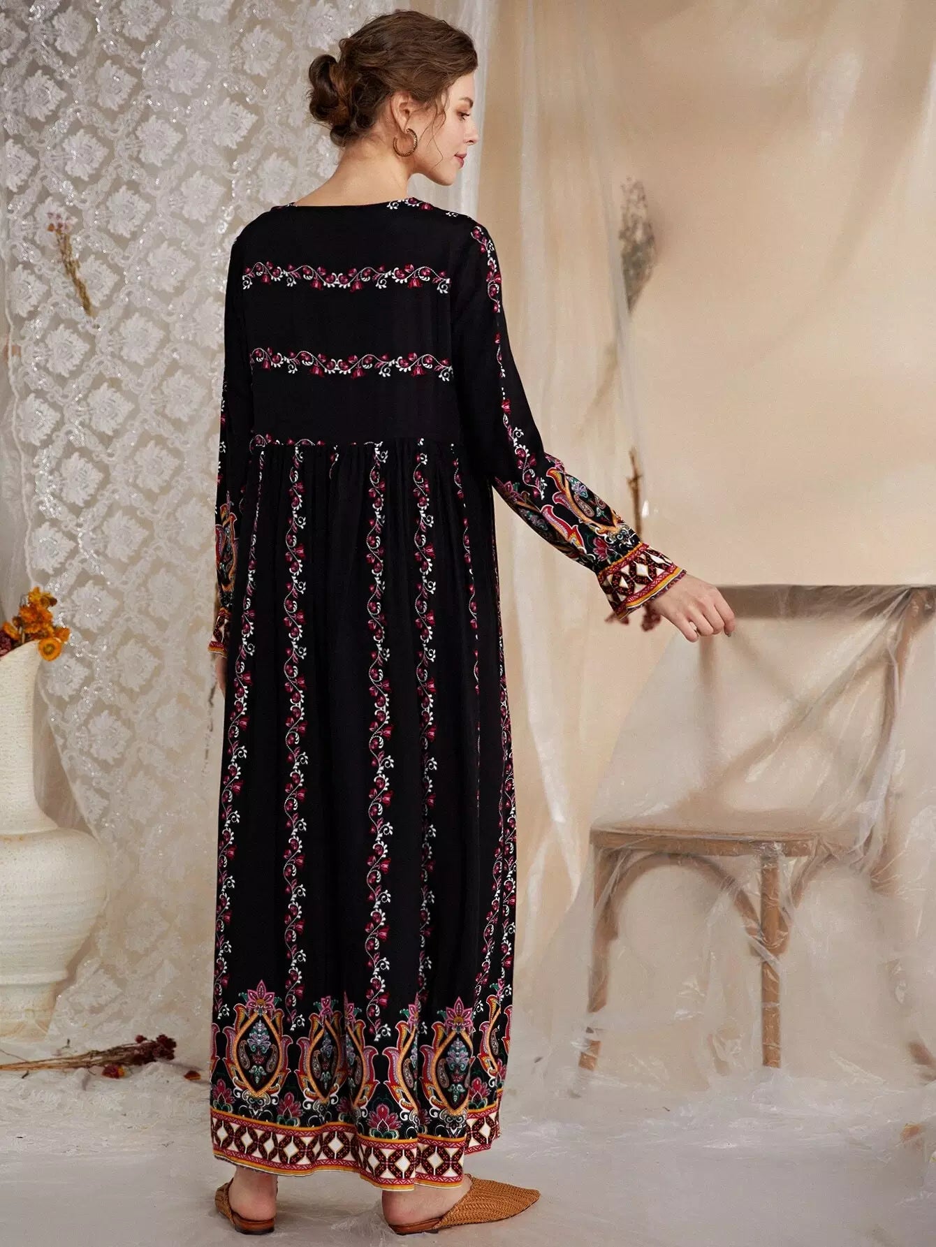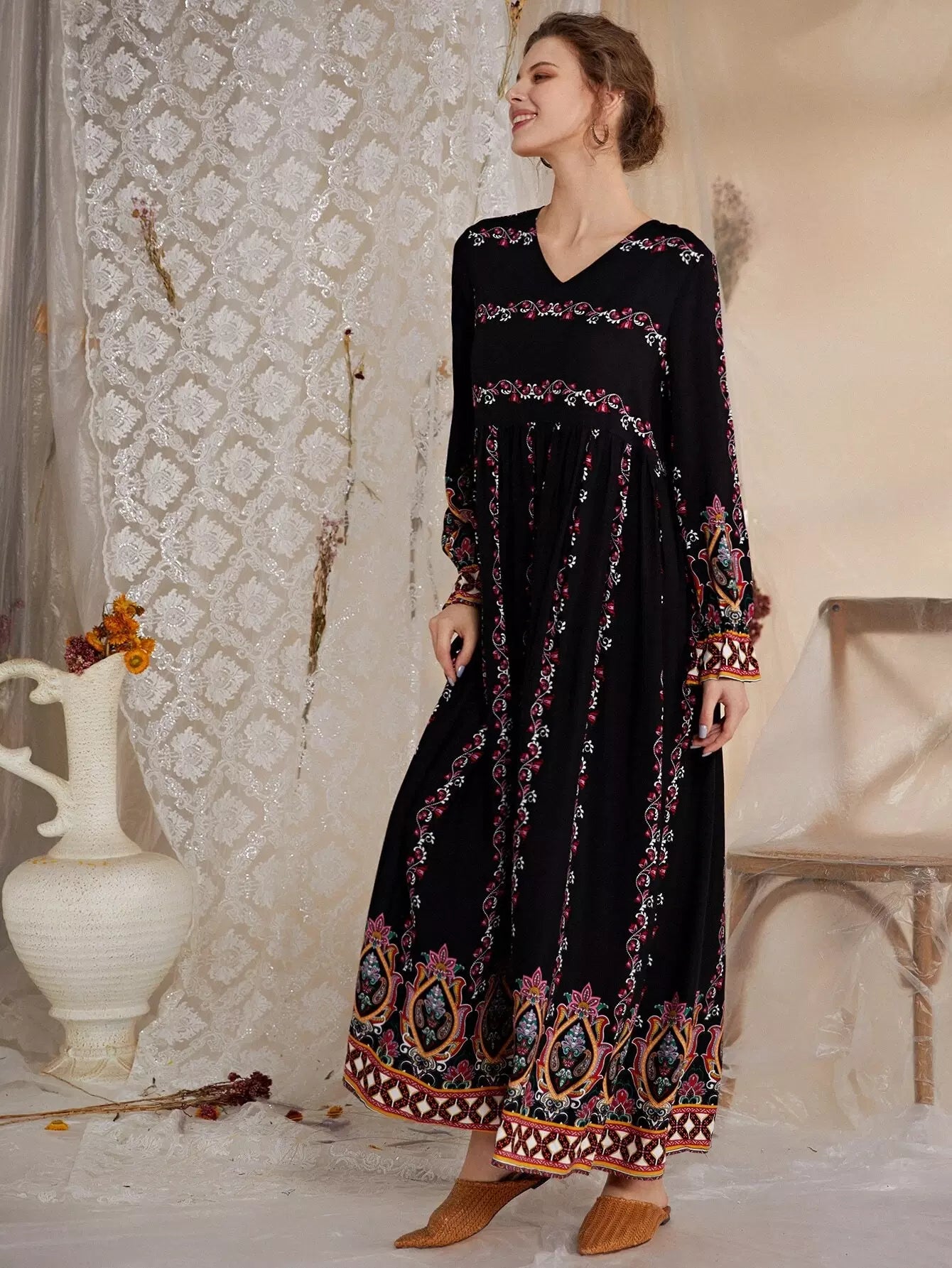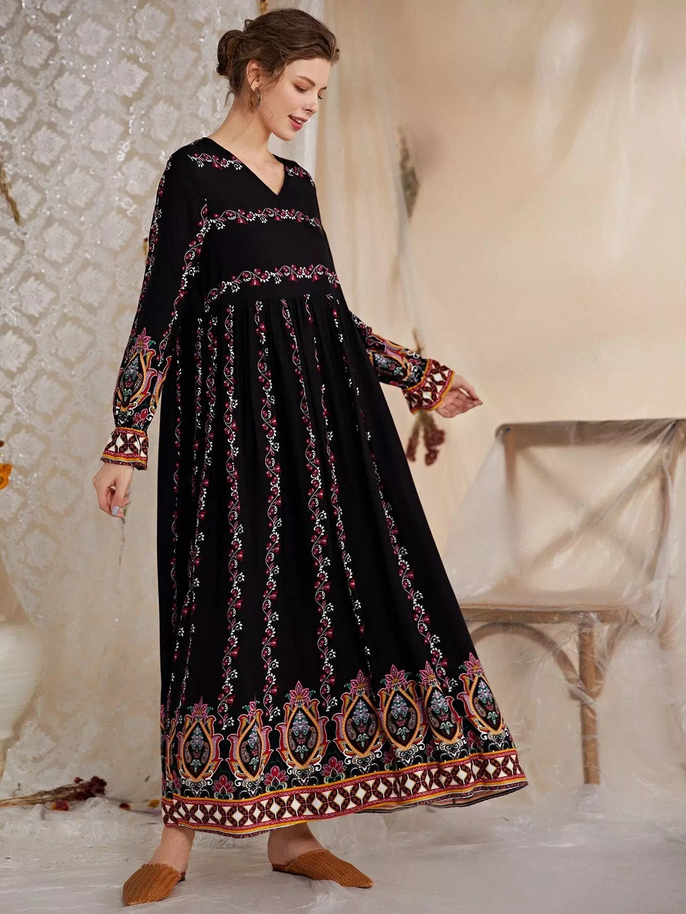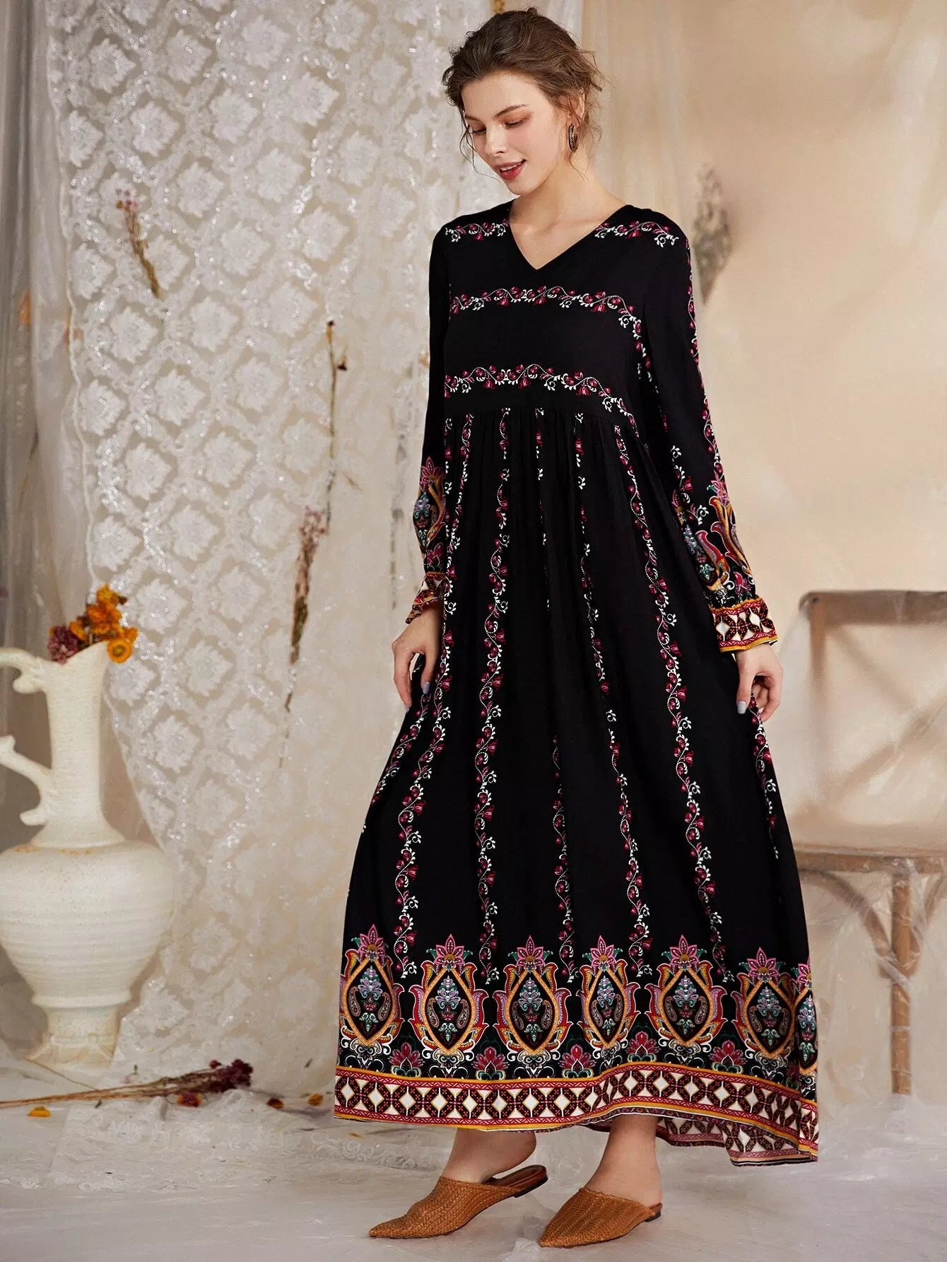 فستان بيبيدول بطبعة زهور ونقشة بيزلي