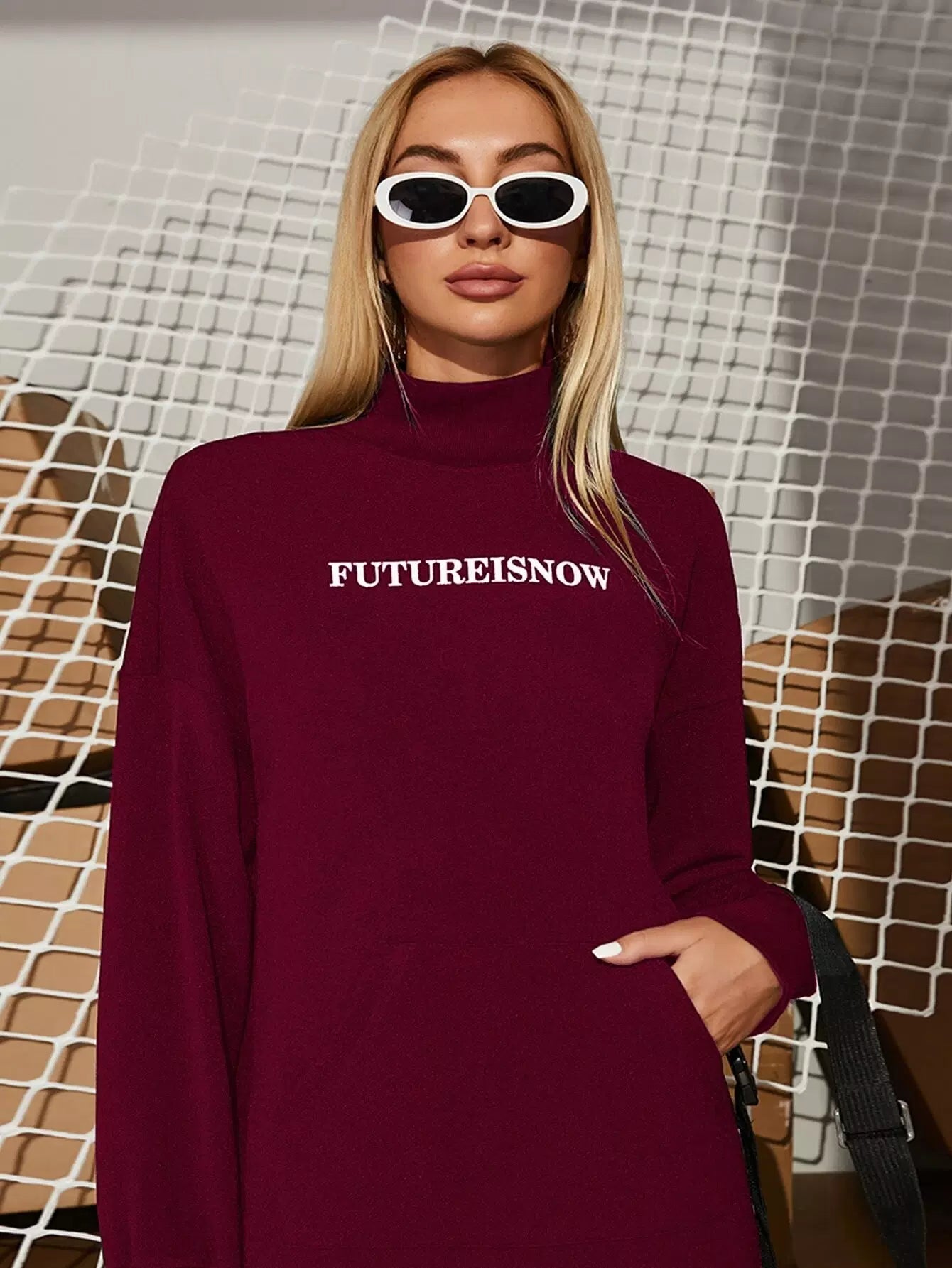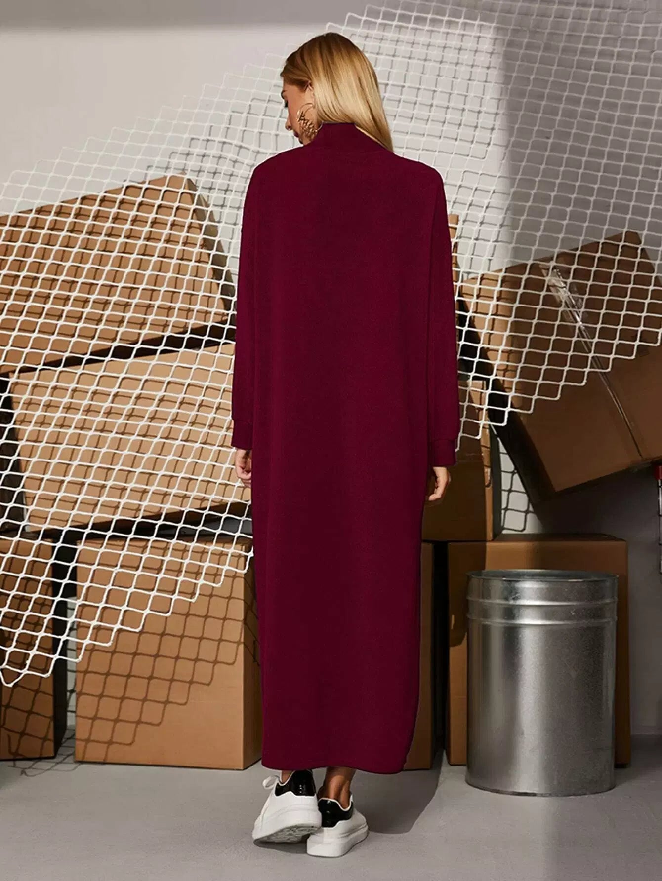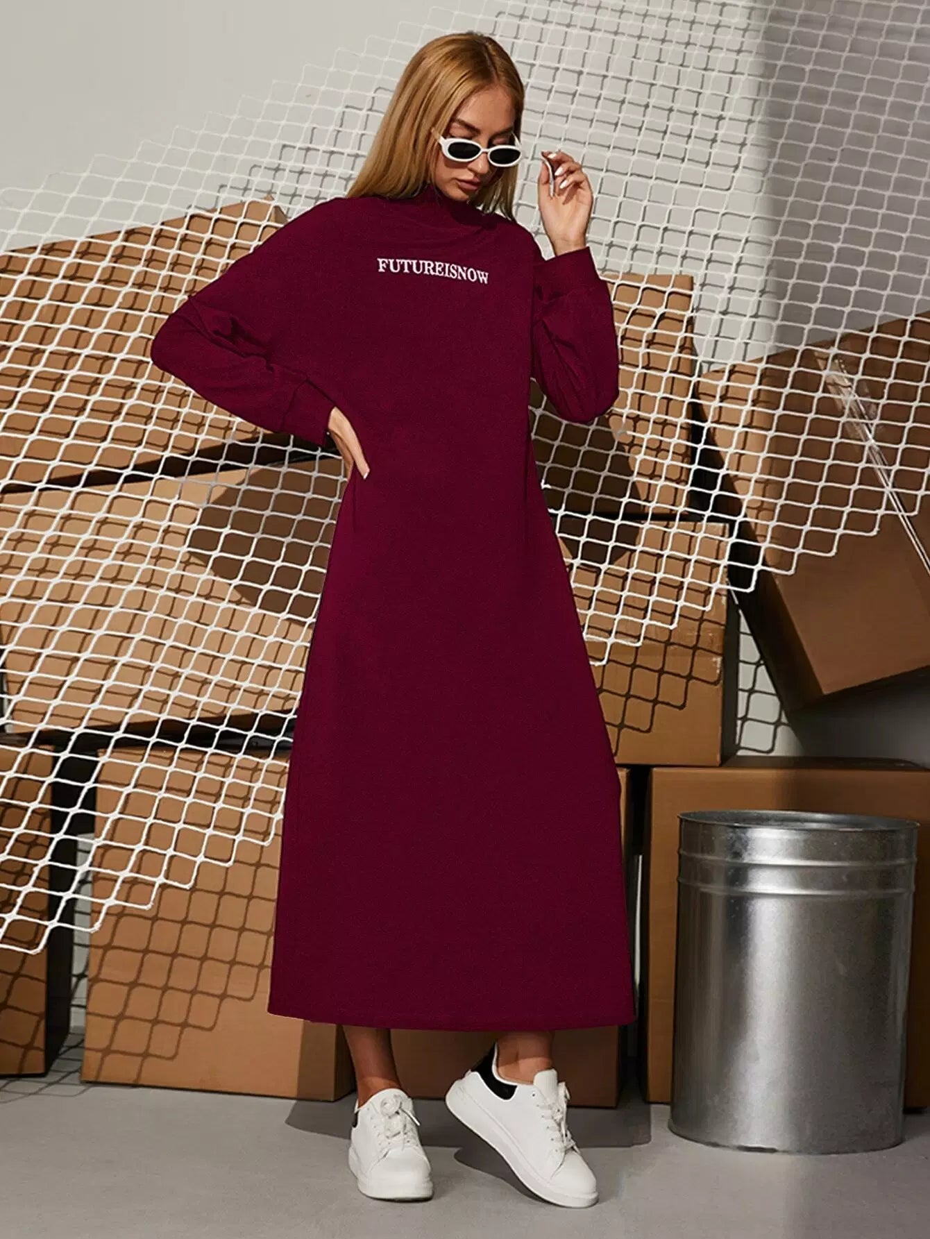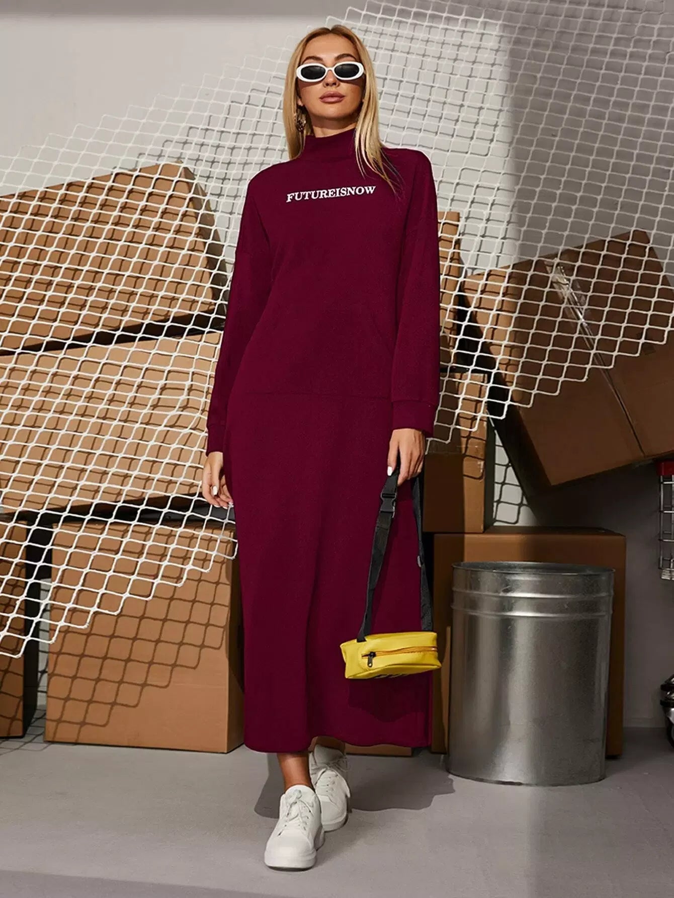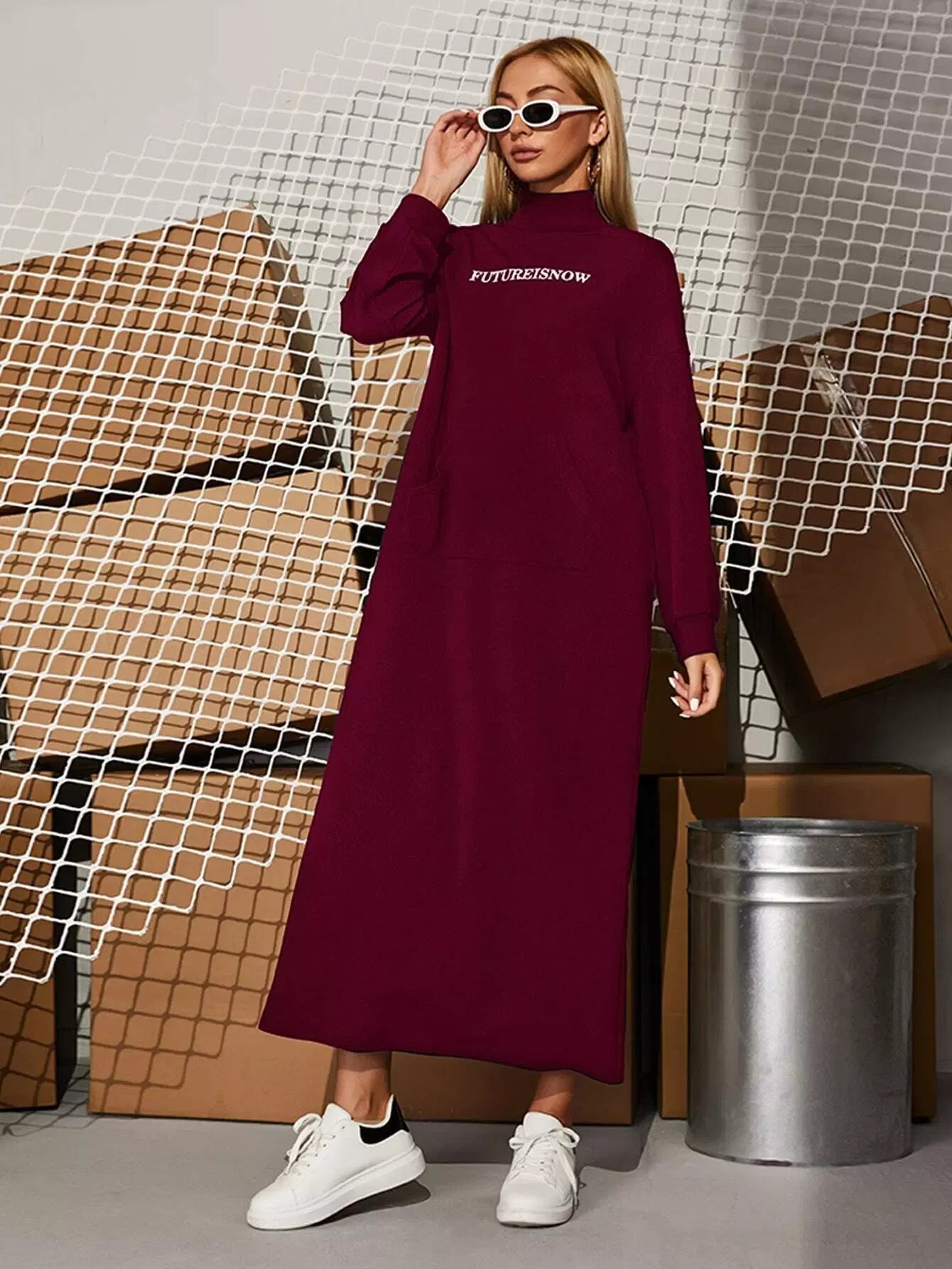فستان بياقة منسدلة على الكتف بجيوب منسدلة على شكل حرف جرافيك برقبة منسدلة على الكتف