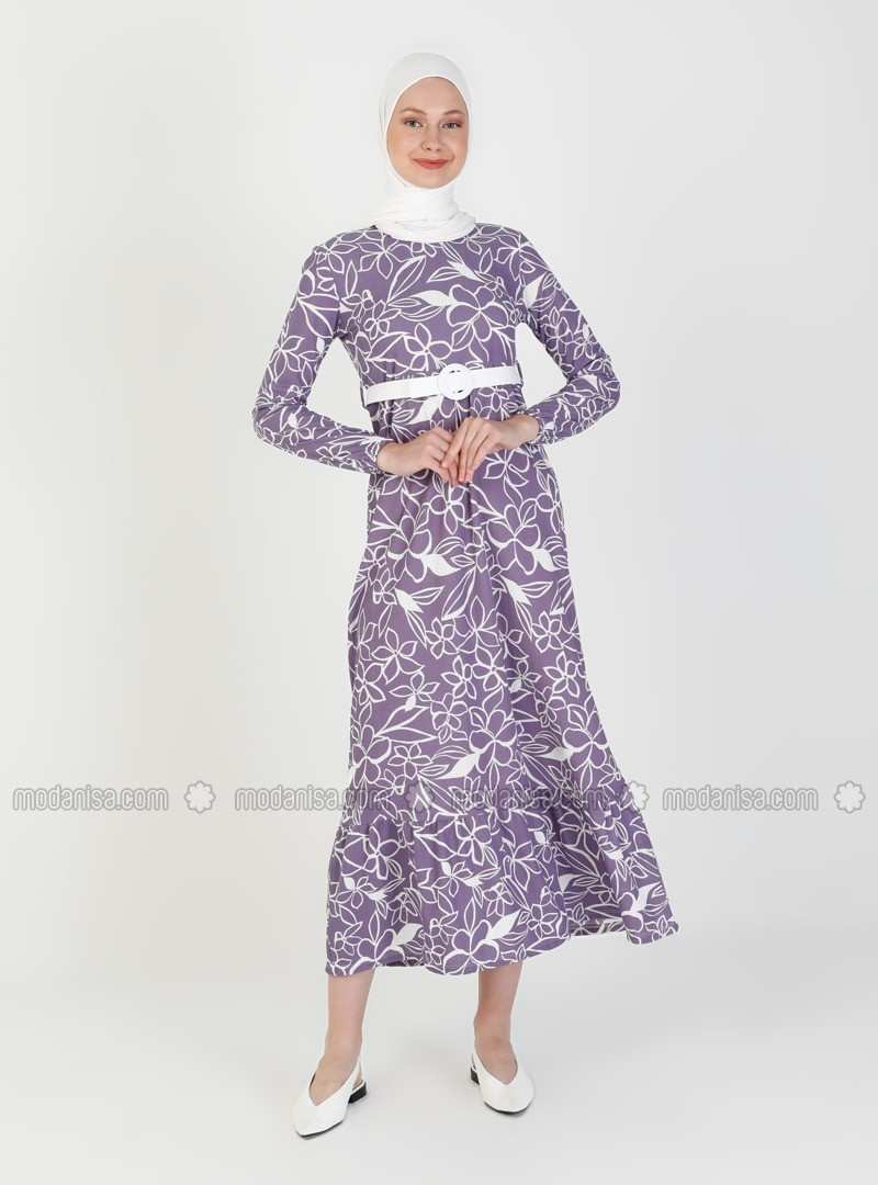 فستان محتشم أرجواني متعدد غير مُبطن