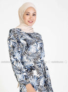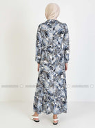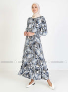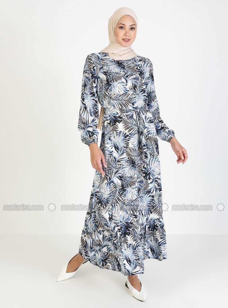 فستان محتشم من الفيسكوز غير مُبطن بياقة دائرية متعددة باللون الأزرق الداكن