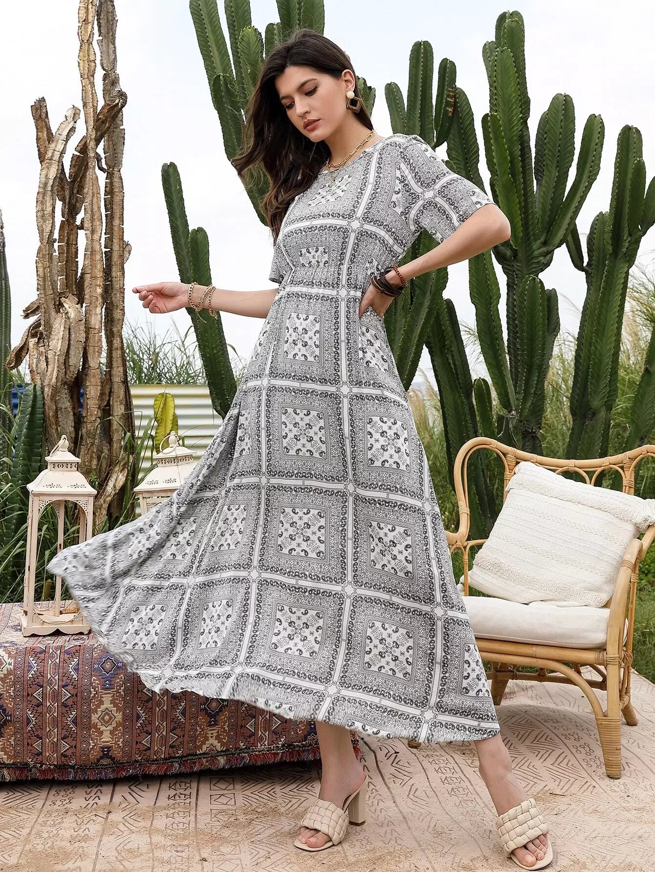 فستان مرقع مرقع بيزلي على شكل حرف A