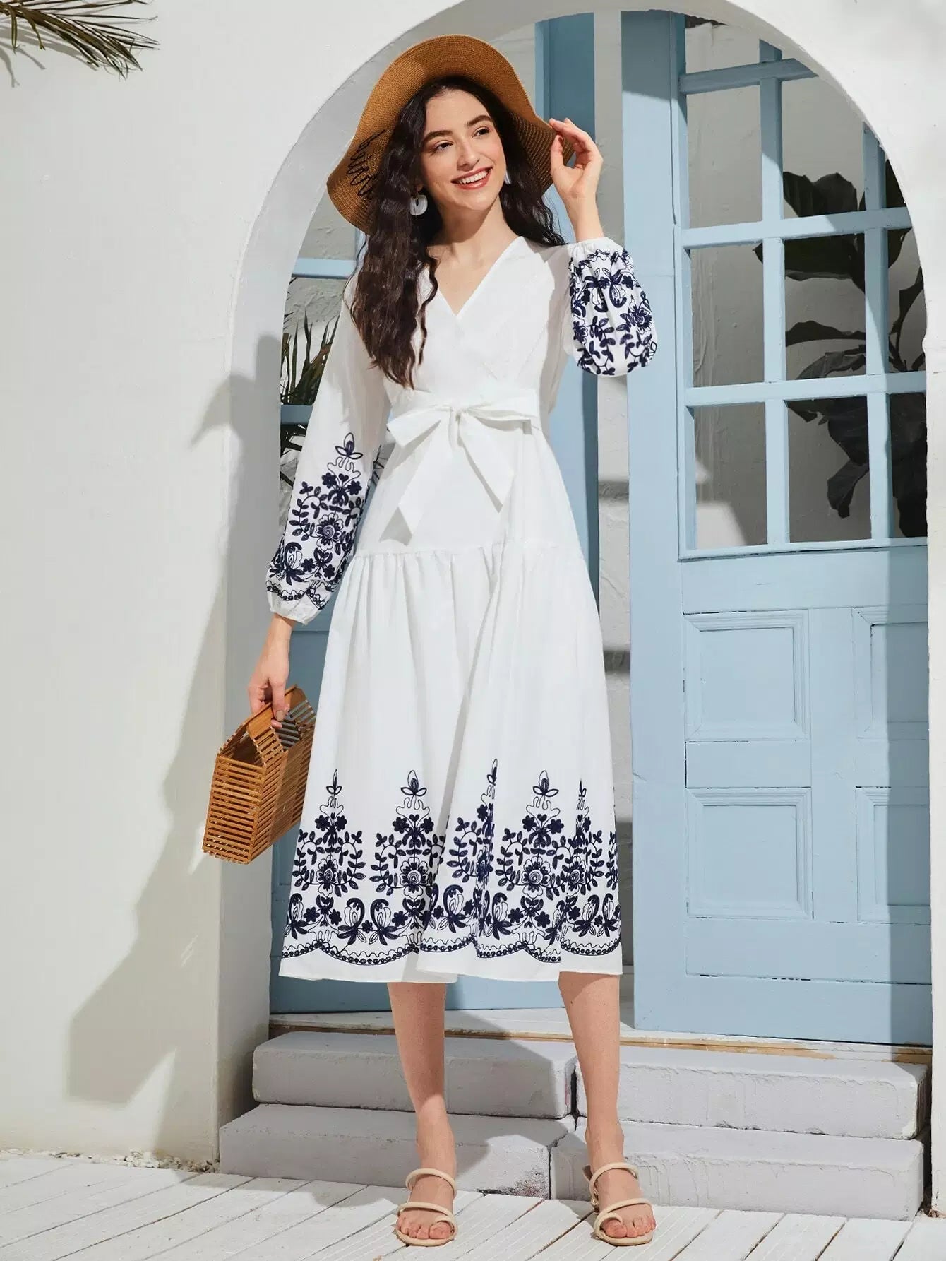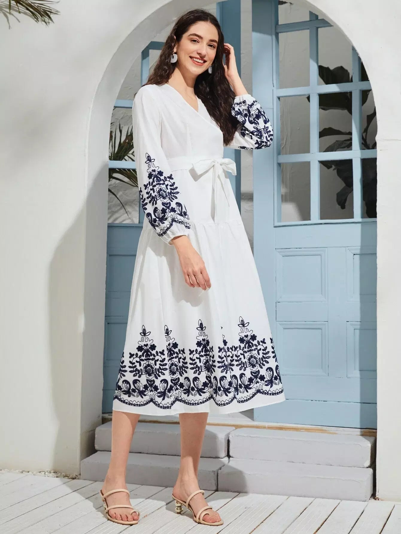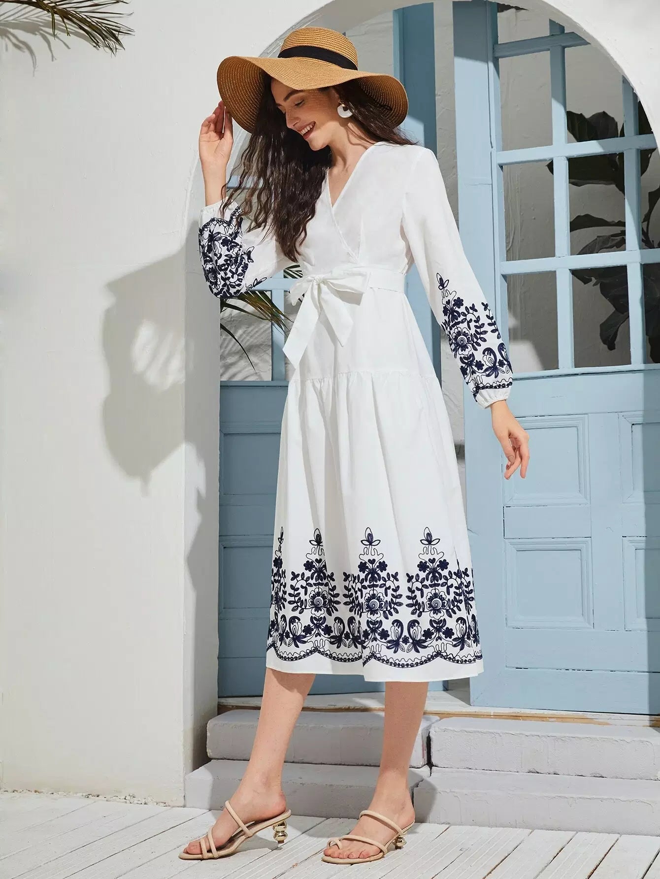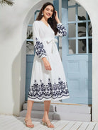 فستان ملفوف بطباعة نباتات بدون حزام