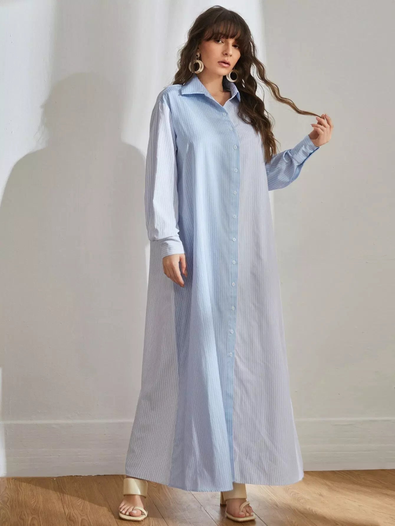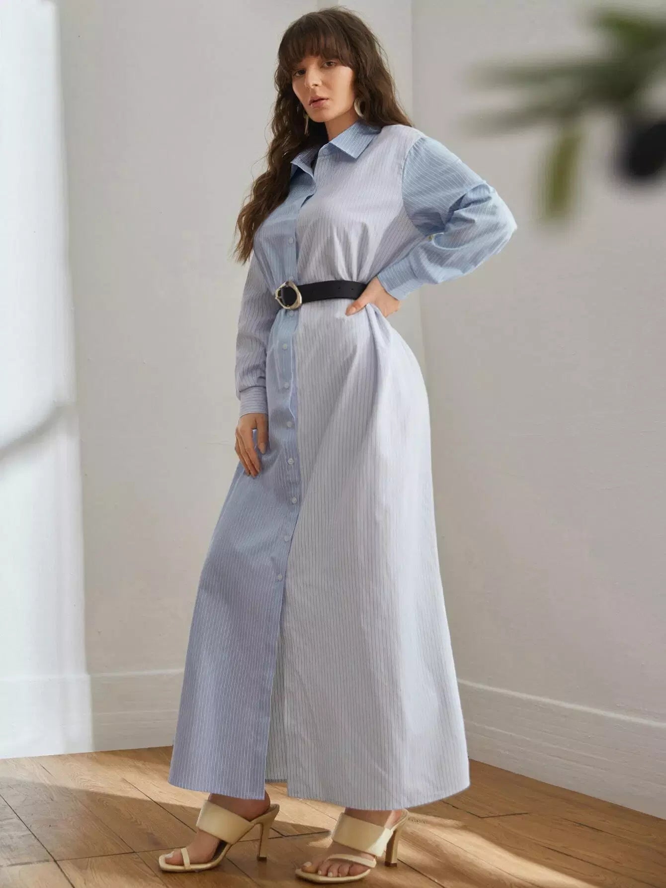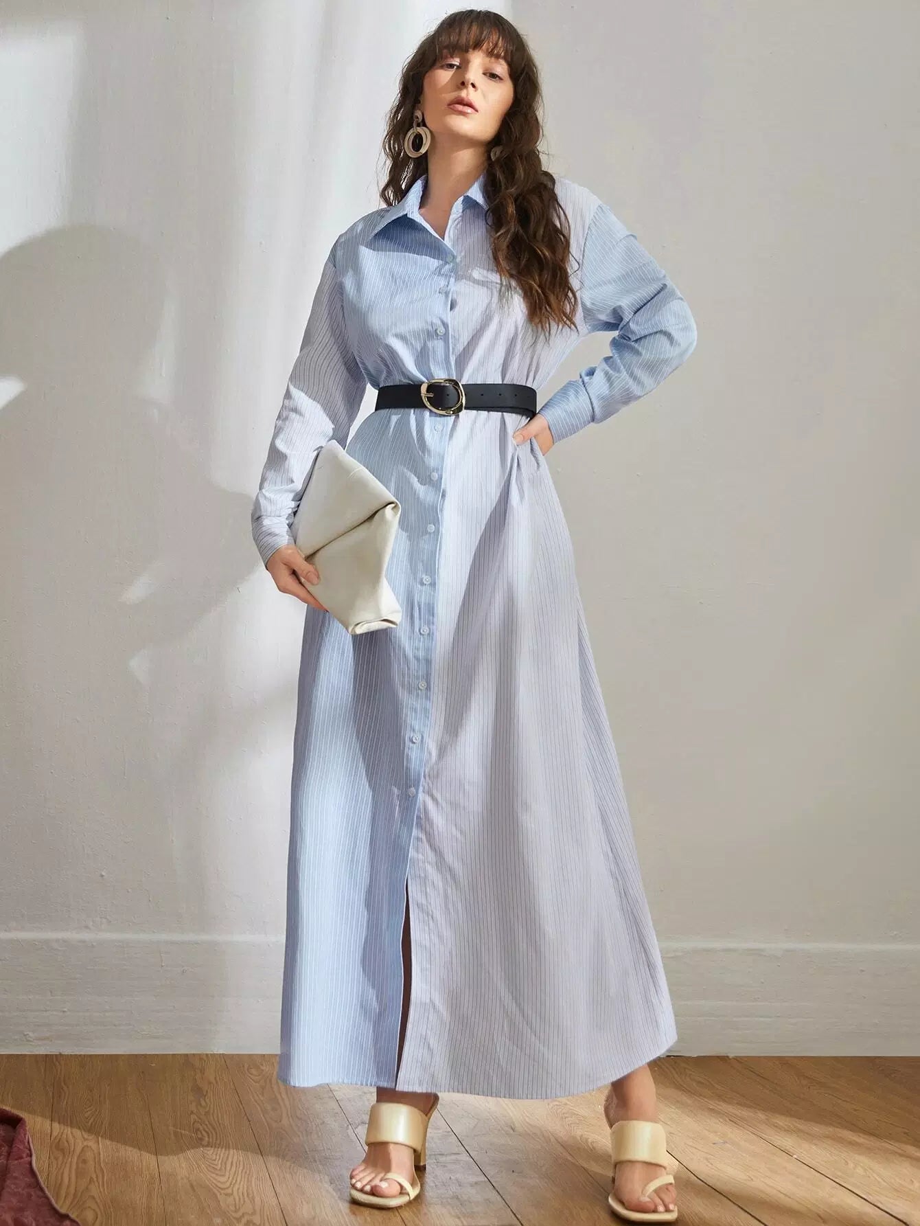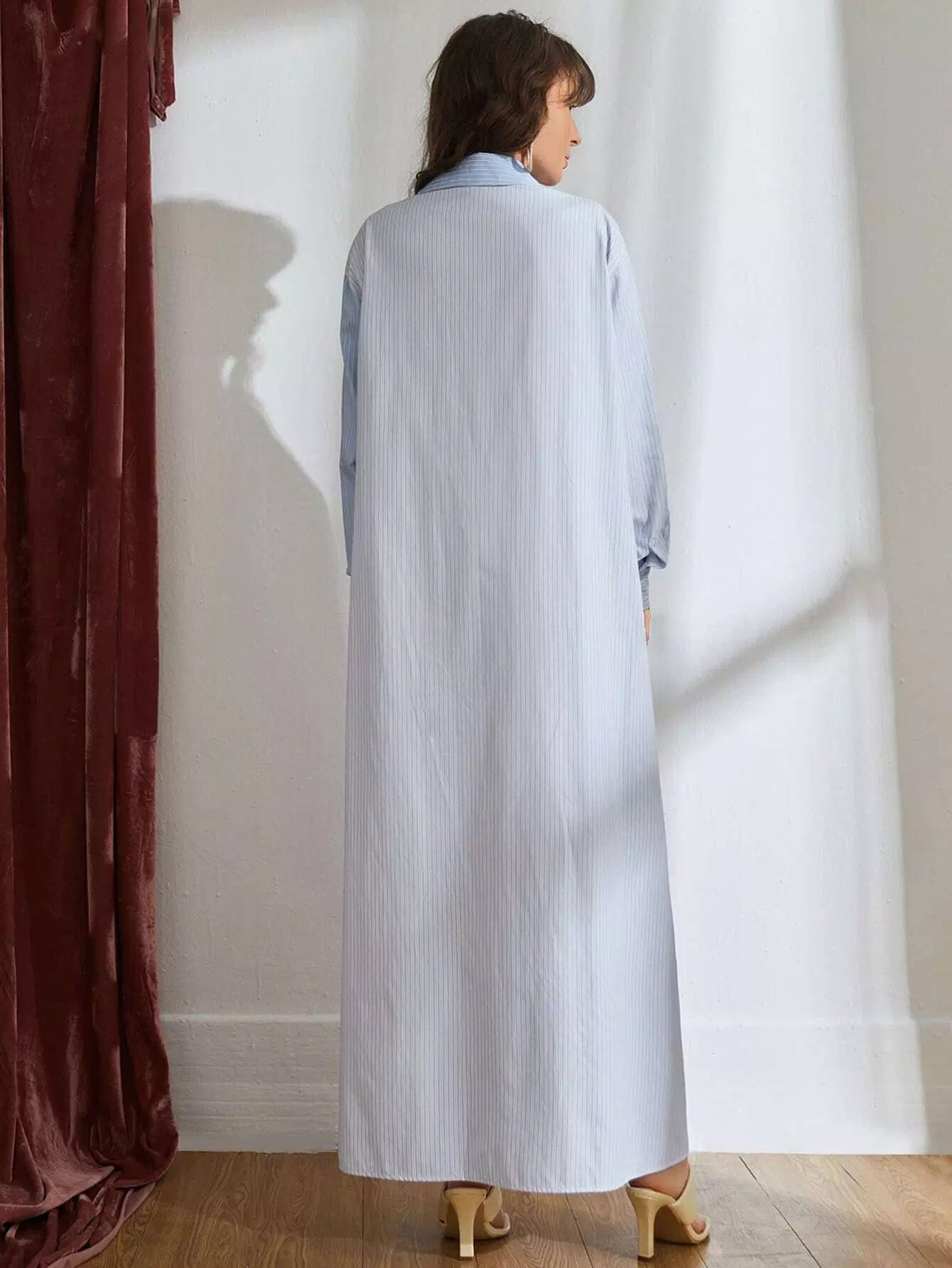 فستان قميص مخطط بدون حزام