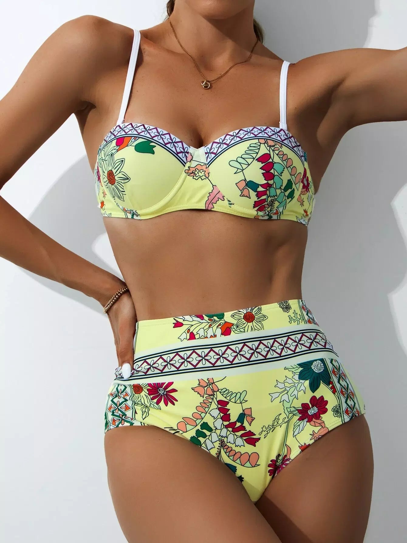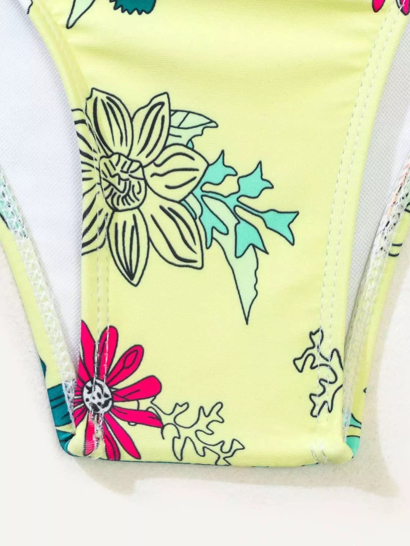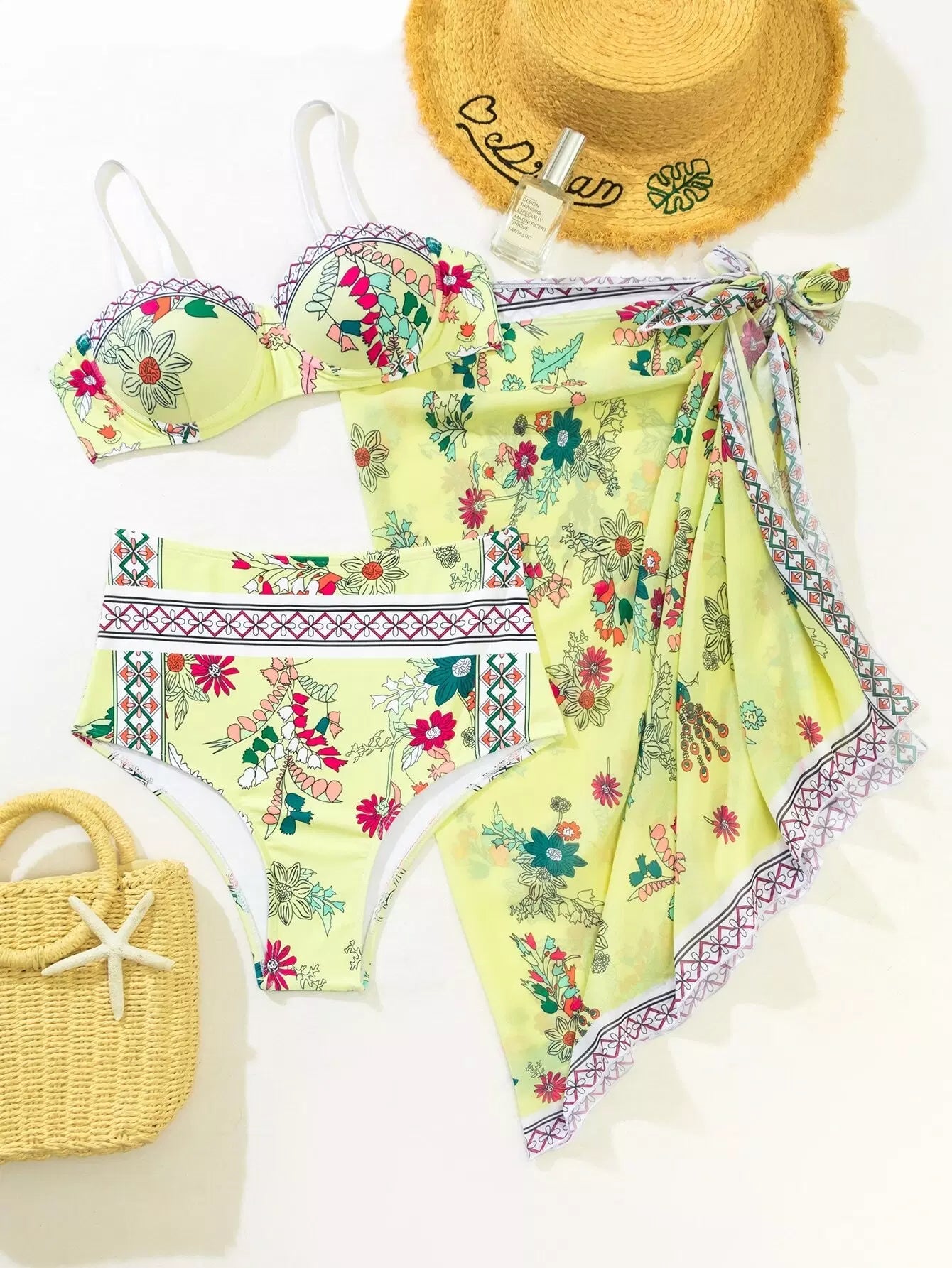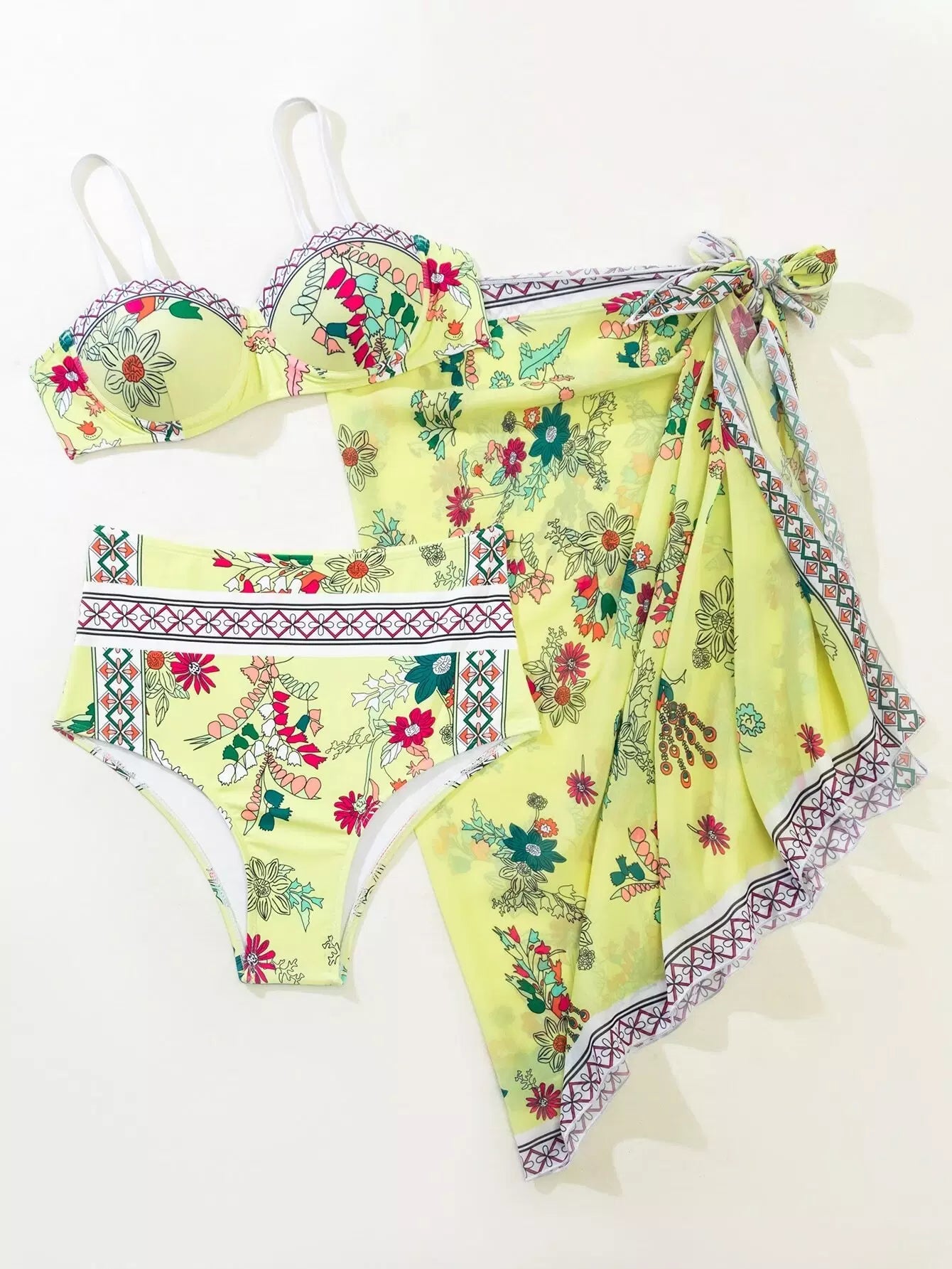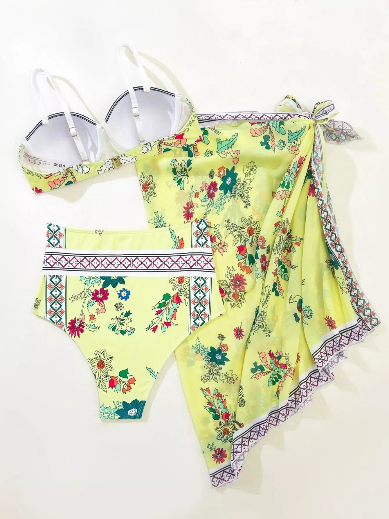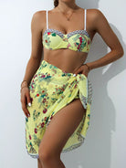 3 عبوات ملابس سباحة بيكيني بغطاء سباحة مزين بالزهور وتنورة شاطئية