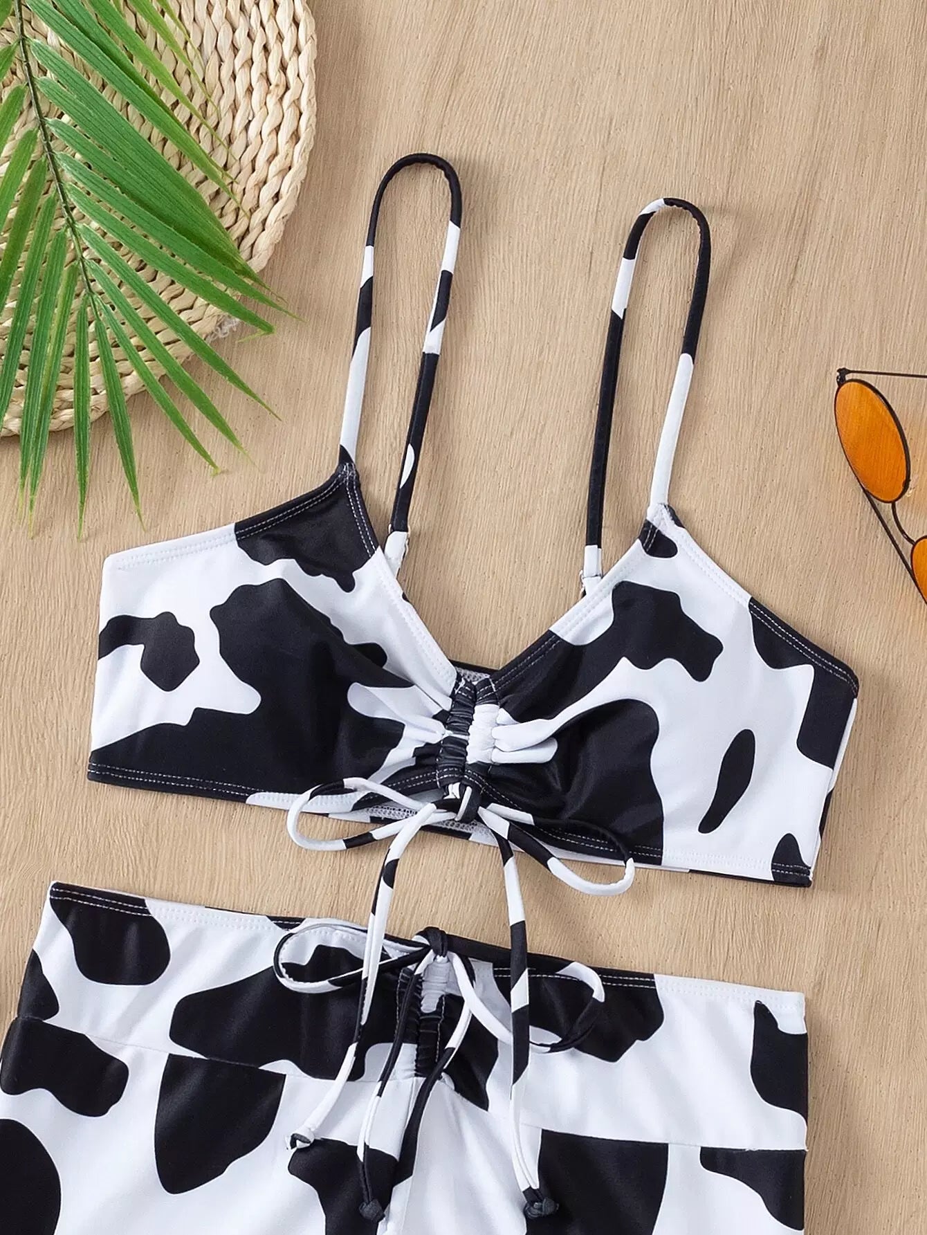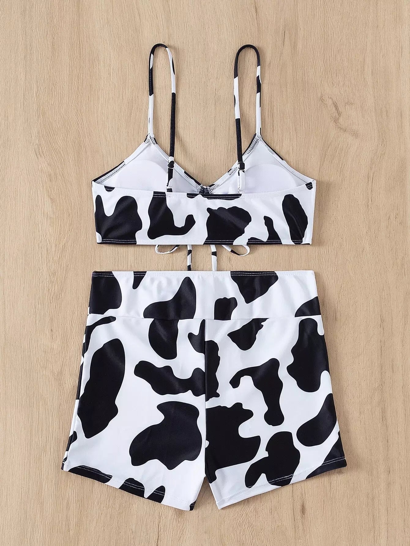 ملابس سباحة بيكيني بيكيني برباط أمامي بنقشة بقرة