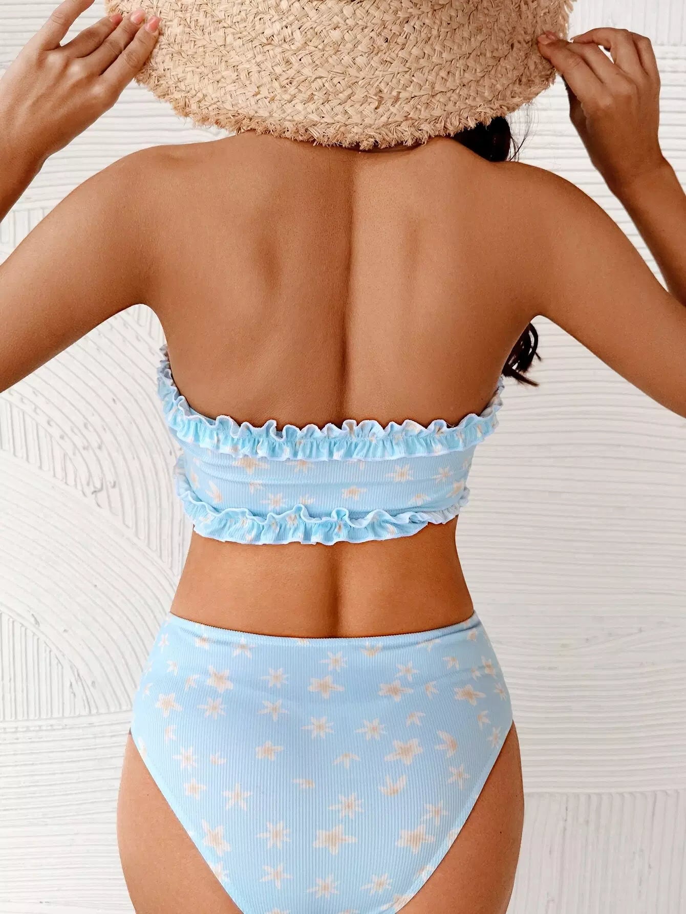مايوه سباحة بيكيني بعصابة من الكشكش على شكل ضلع زهري
