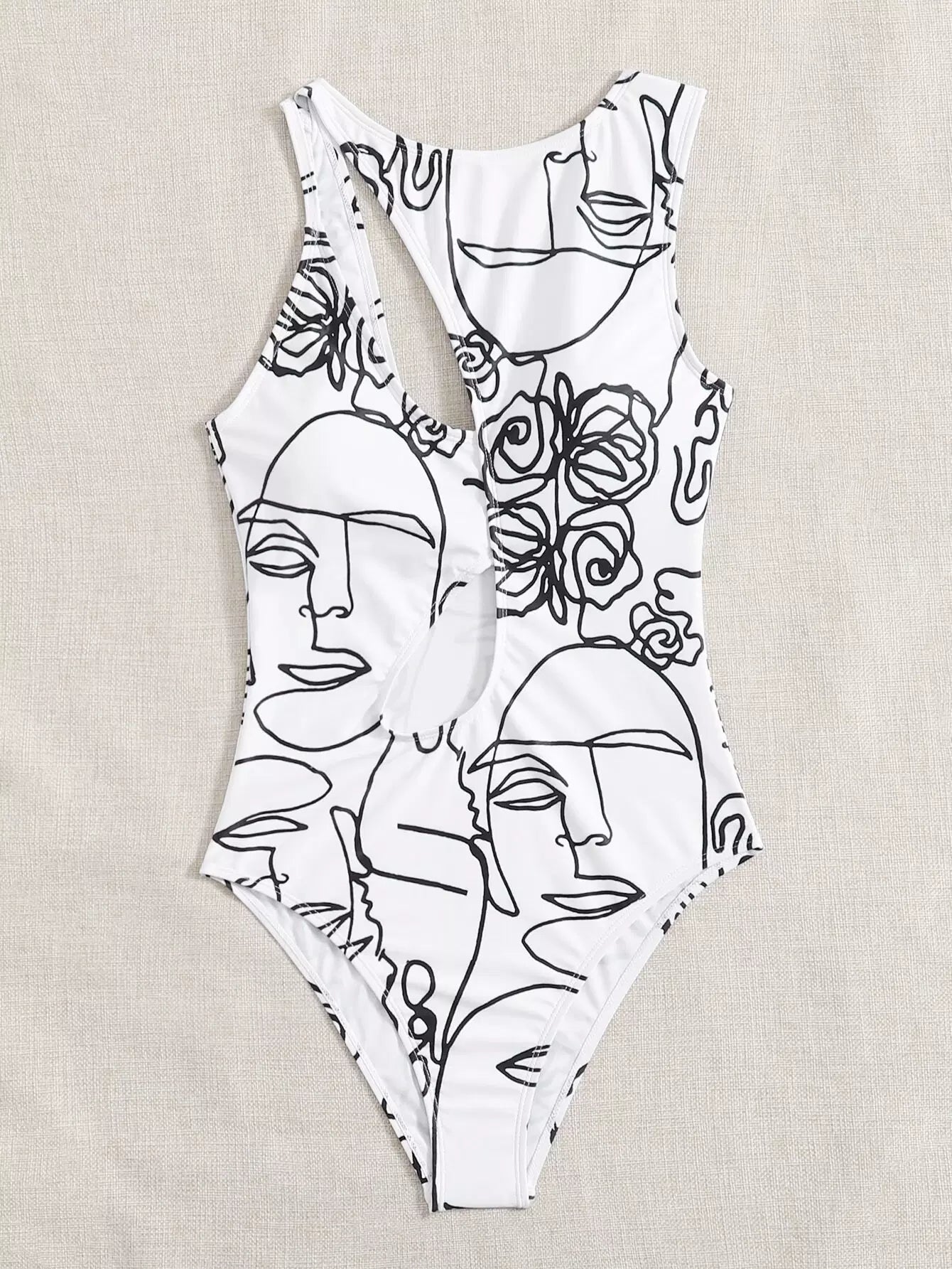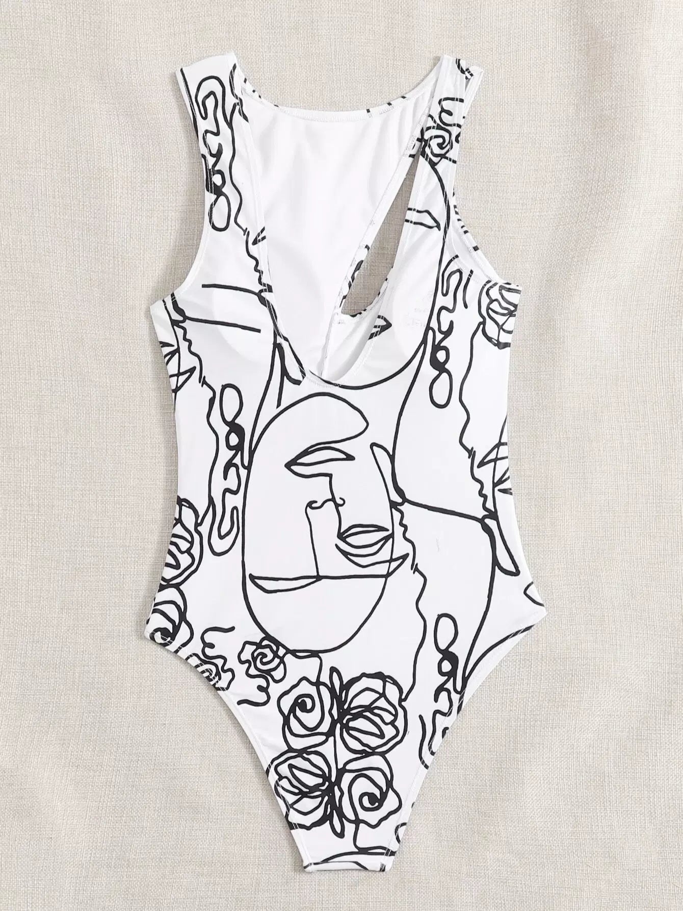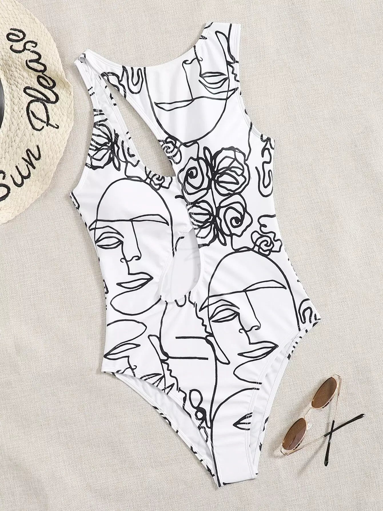 بدلة سباحة بقطعة واحدة بقصّة واحدة جرافيك مقطوعة