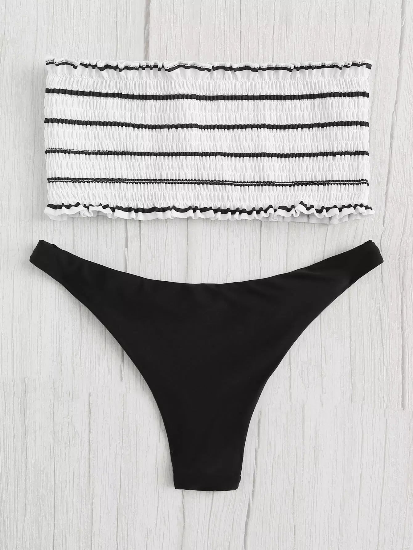 عصابة مخططة عشوائية مخططة بشريط مع قميص بيكيني قصير