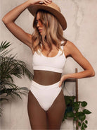 للنساء - ملابس سباحة بيكيني مضلعة بخصر عالٍ