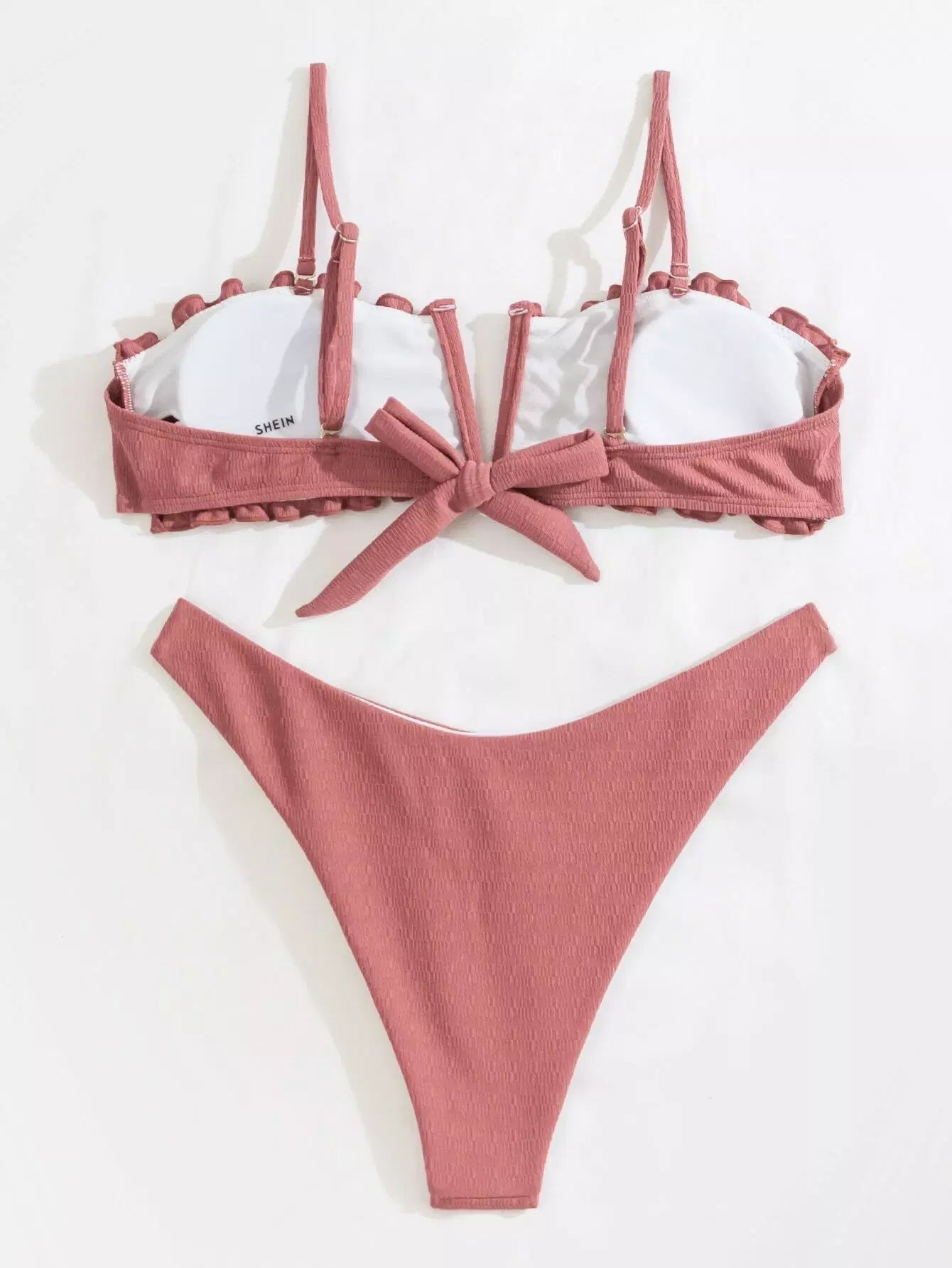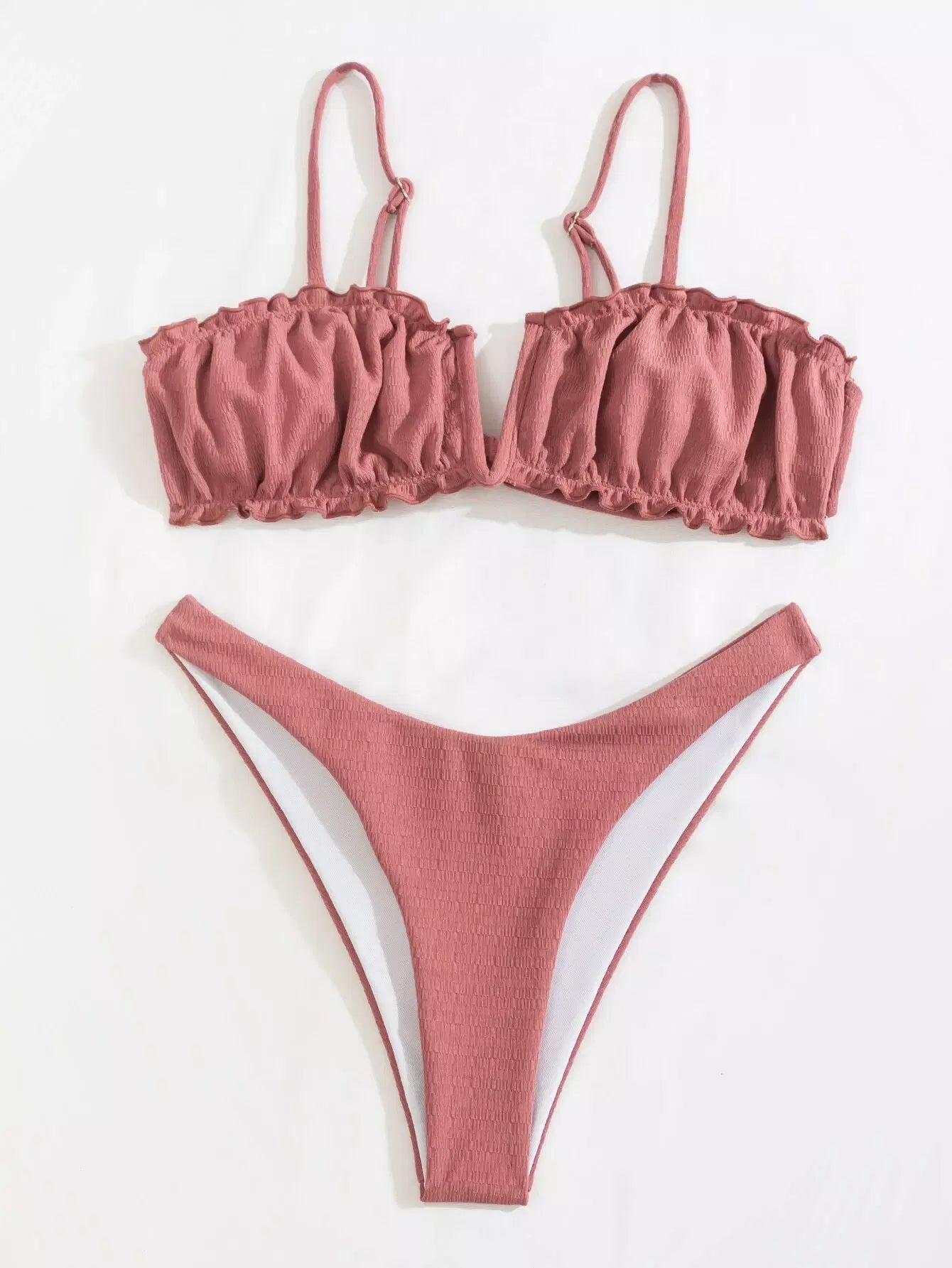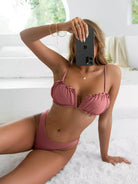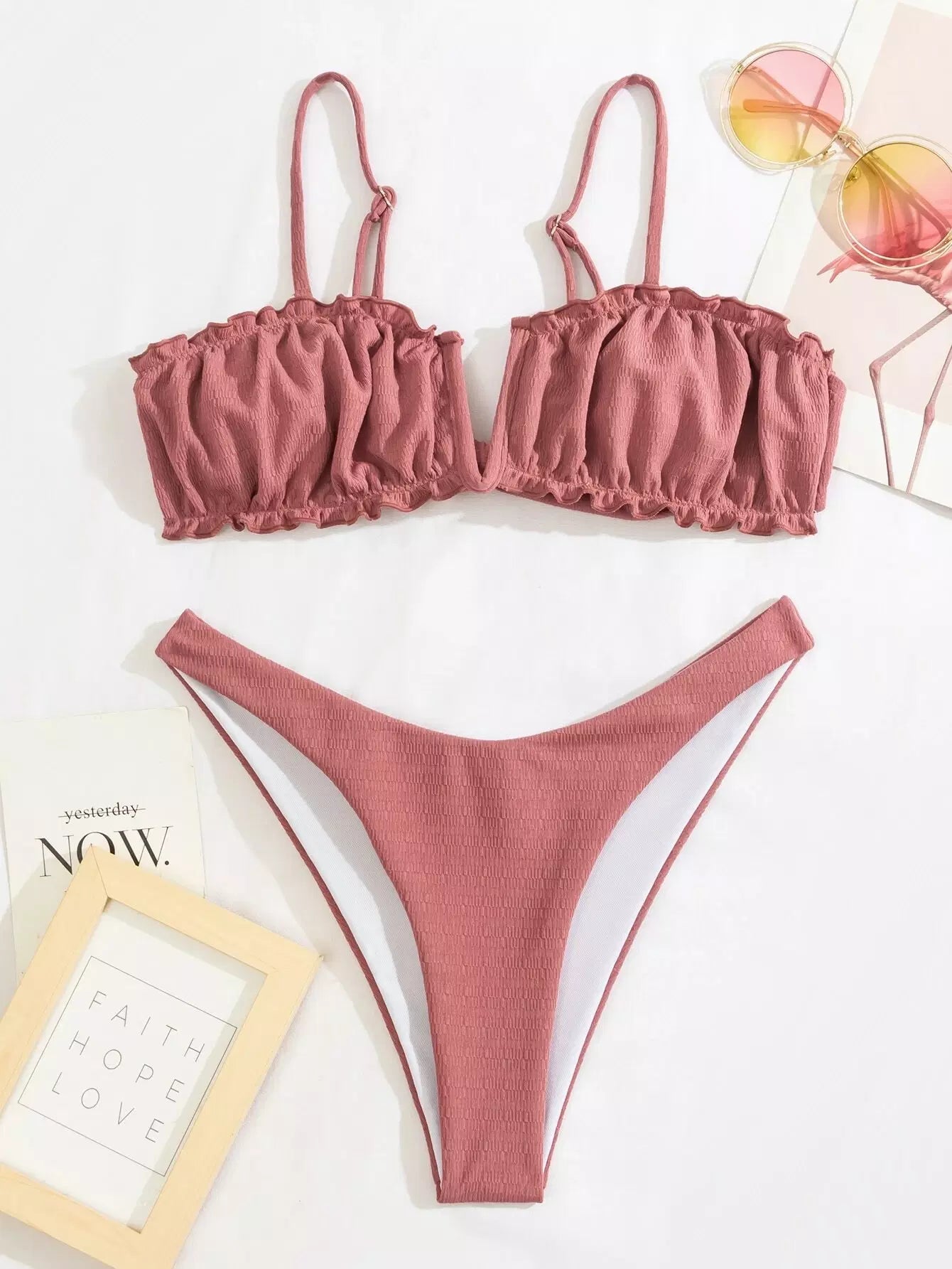 بكيني سباحة بيكيني بحافة سلكية على شكل ضلع على شكل حرف V