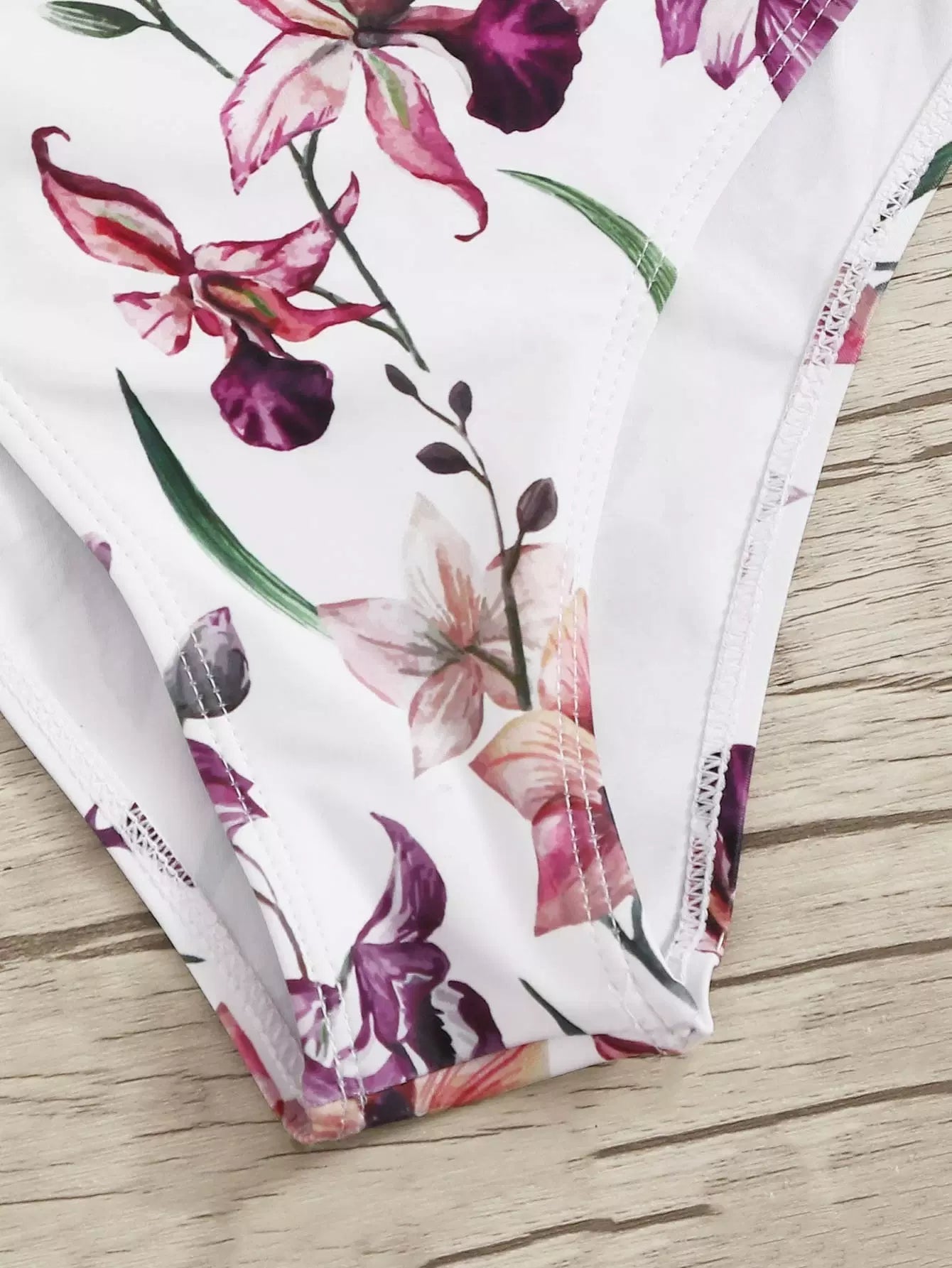 للنساء - بدلة سباحة بكيني ذات حافة مكشكشة متقاطعة وخصر مرتفع