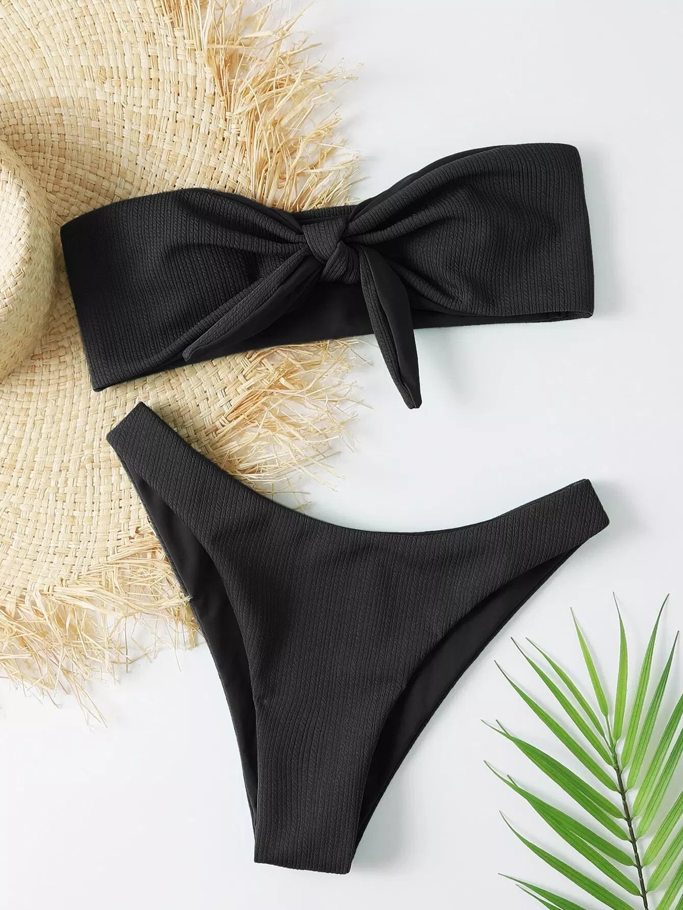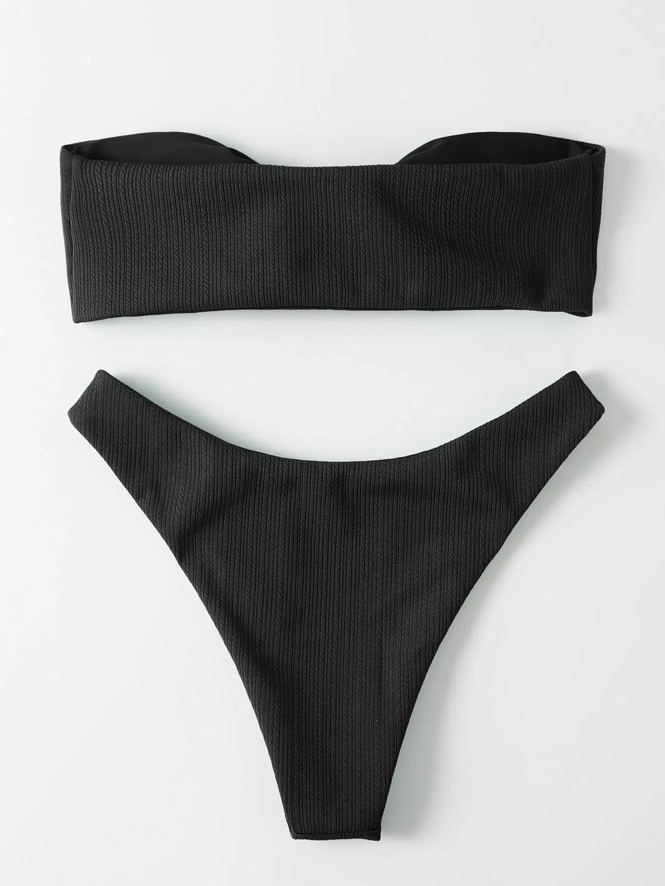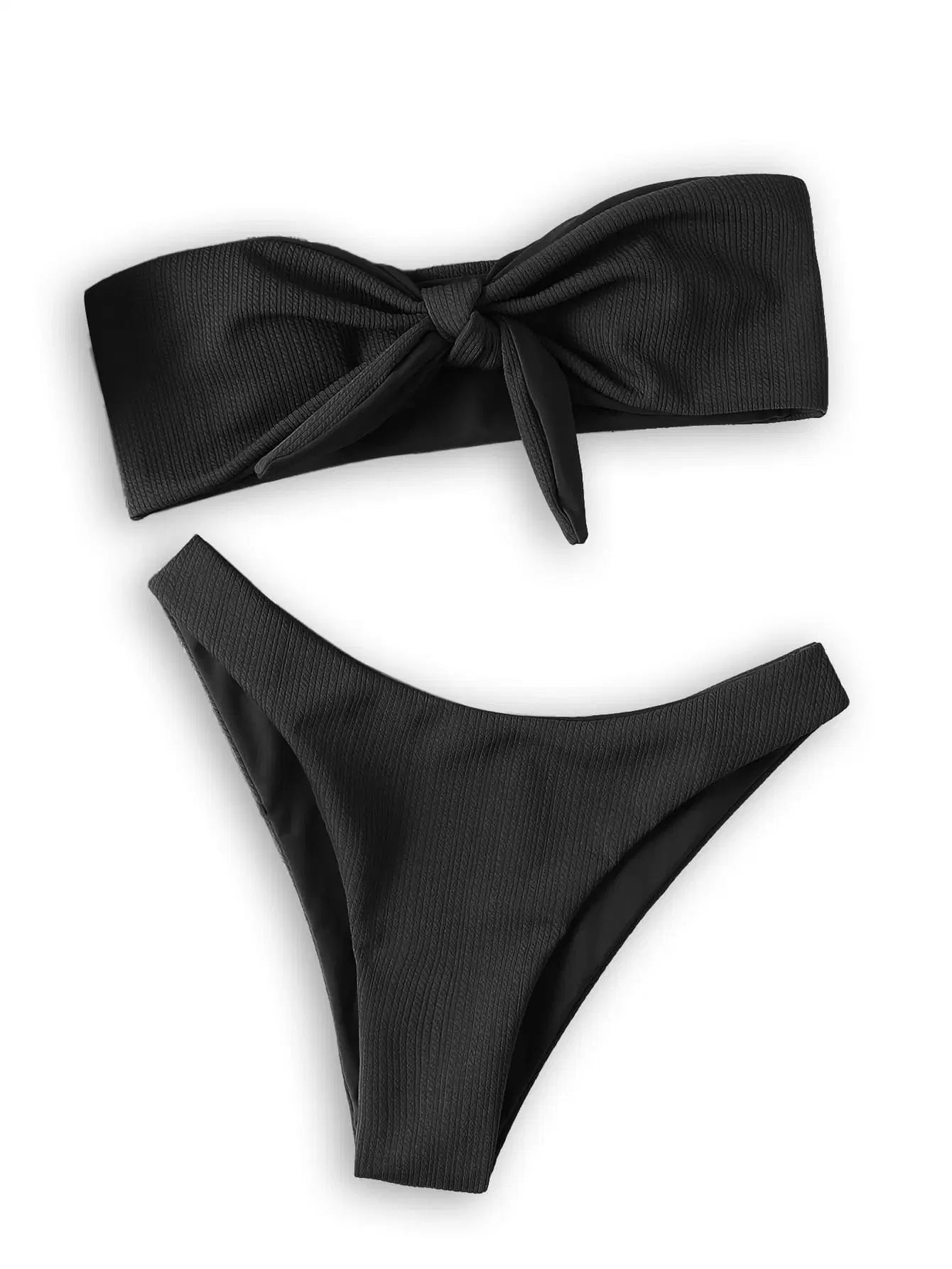 ملابس سباحة بيكيني سادة بقصّة عالية بعصابة سادة
