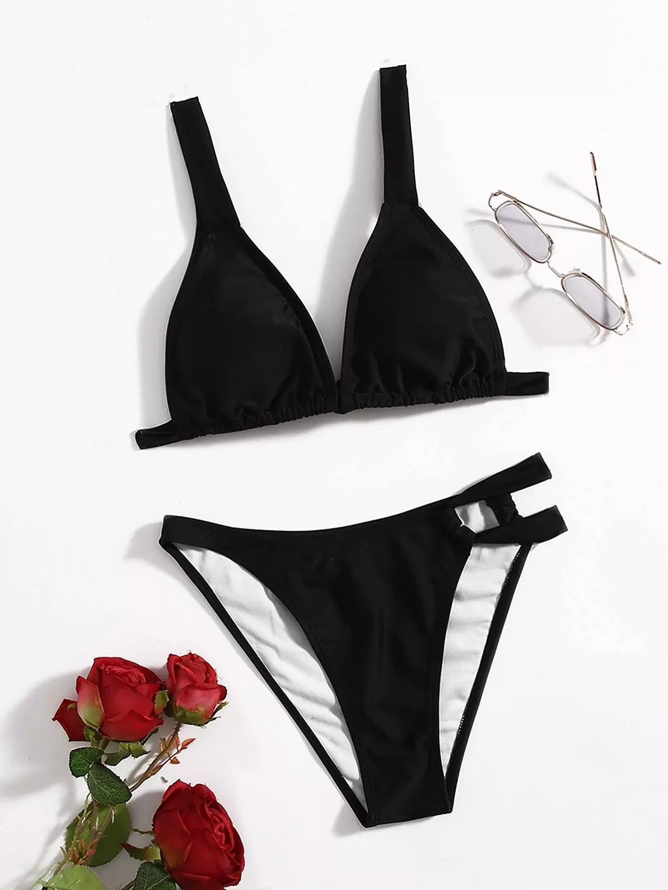 ملابس سباحة بيكيني سادة بقصات متصلة
