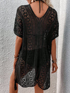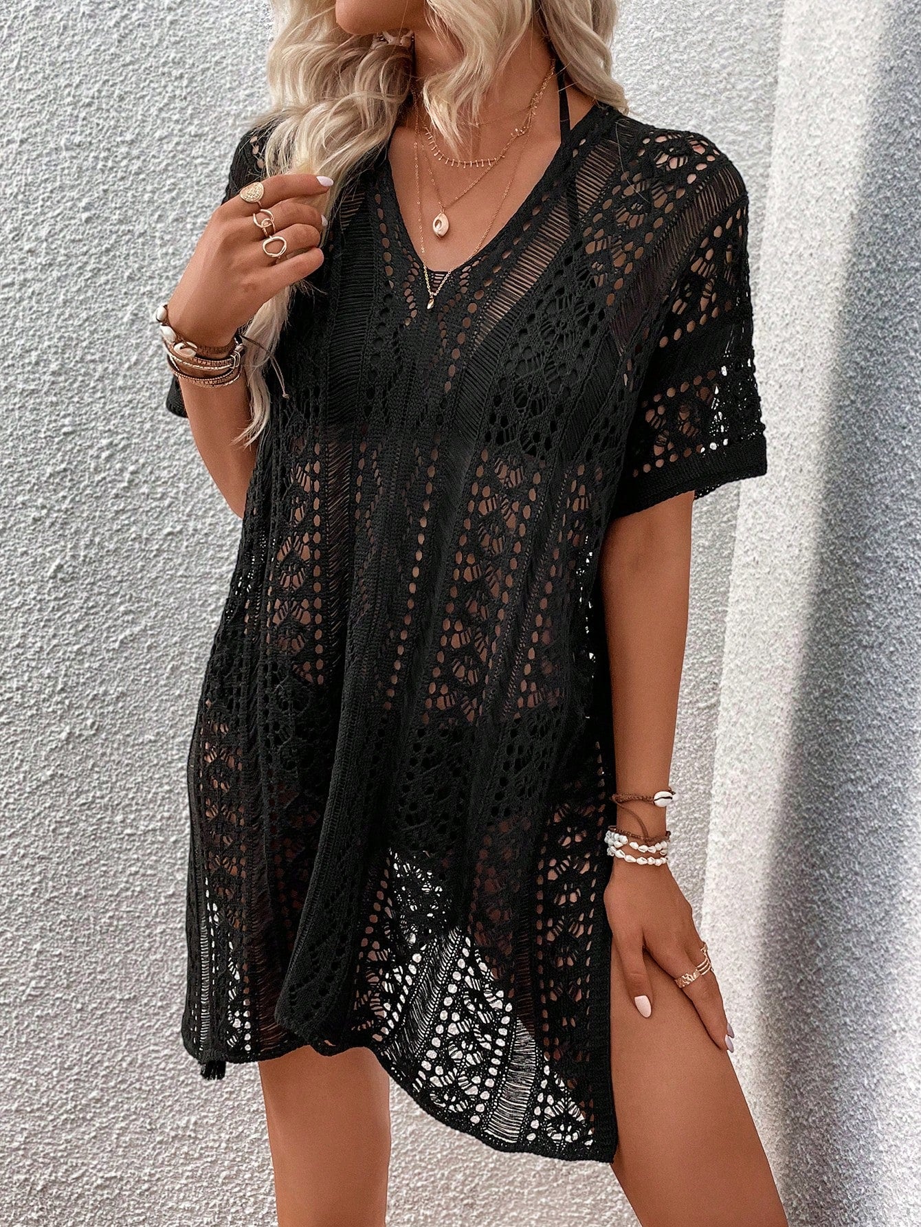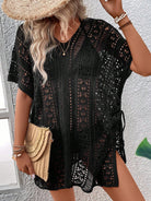 Swim Hollow Out Split Thigh Batwing Sleeve Cover Up Dress Without Bikini,Summer Beach