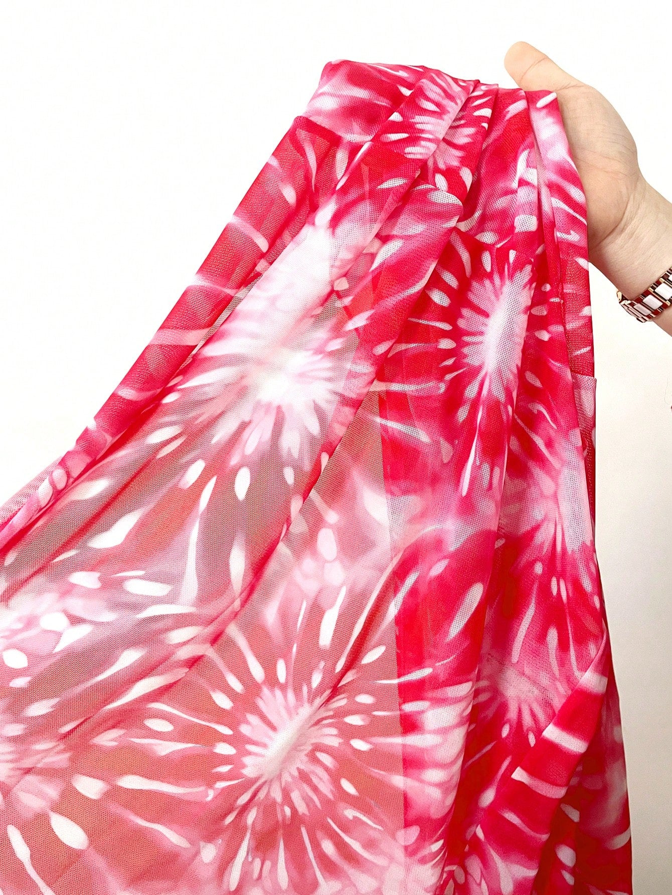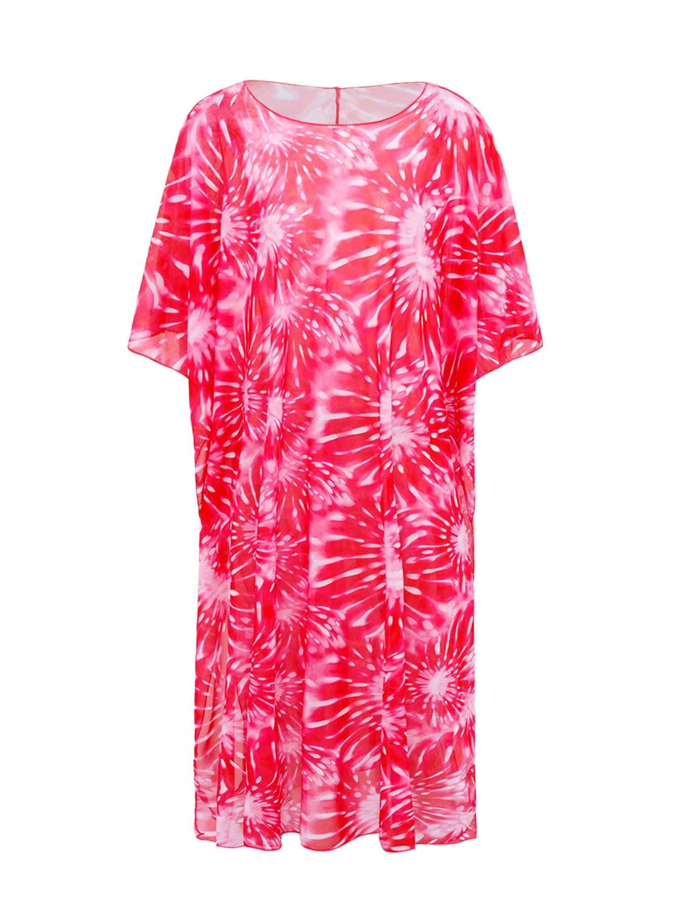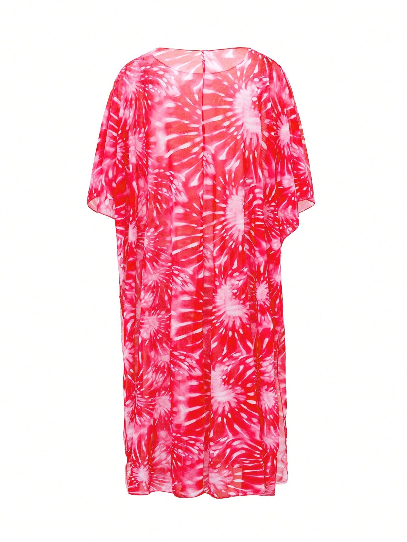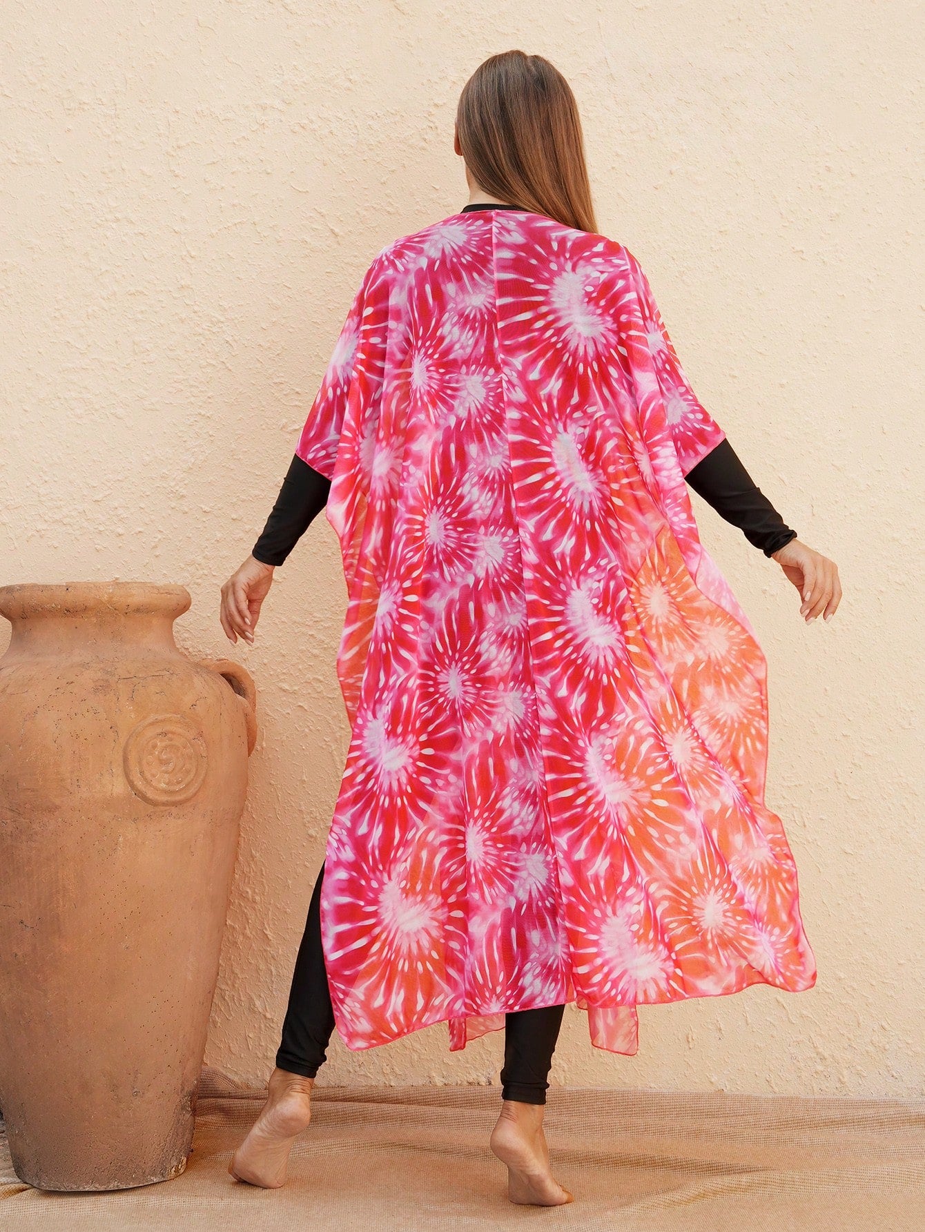 Swim Mulvari Women Tie Dye All-Over Print Gradient Long Chiffon Kimono Cardigans For Summer Beach Vacation