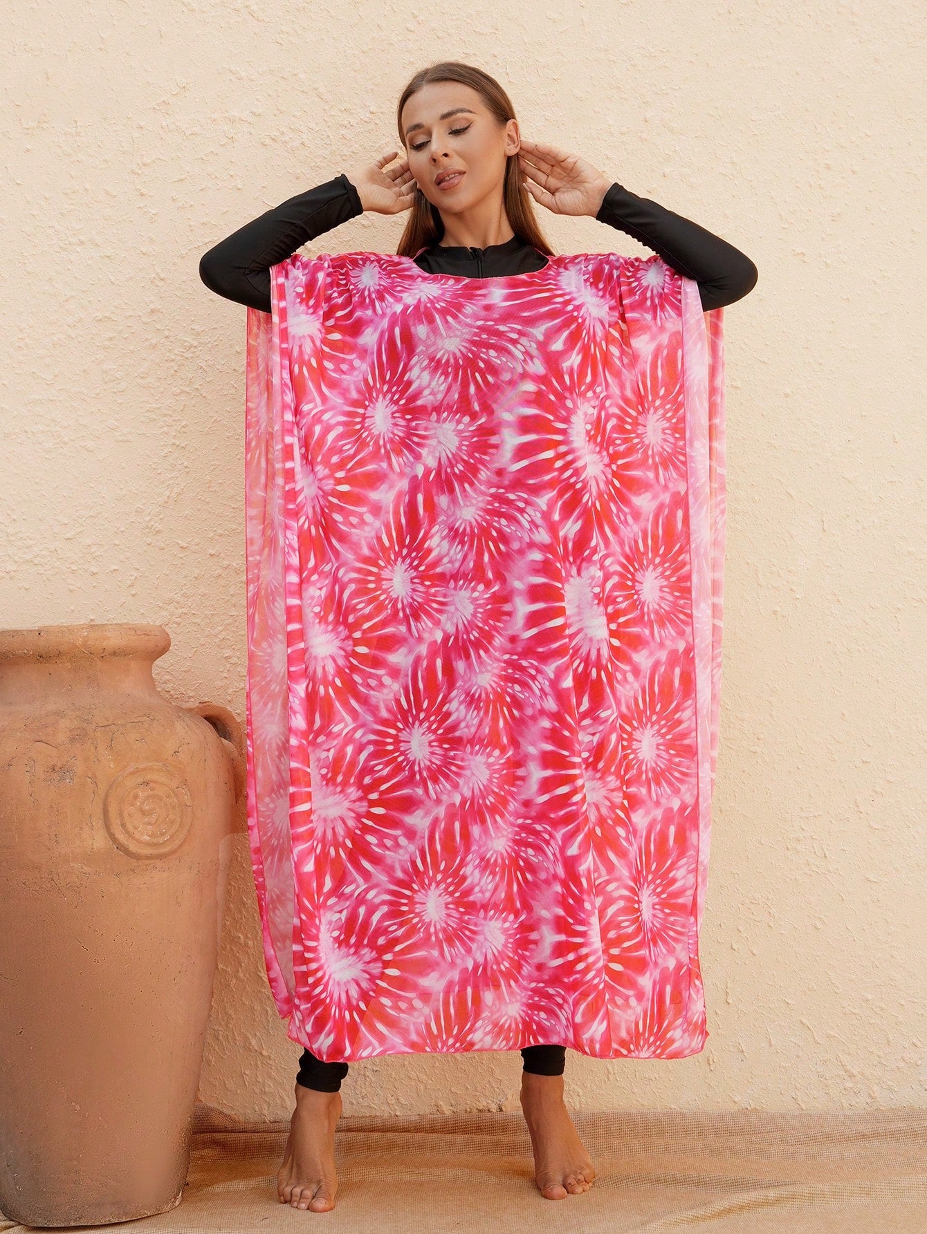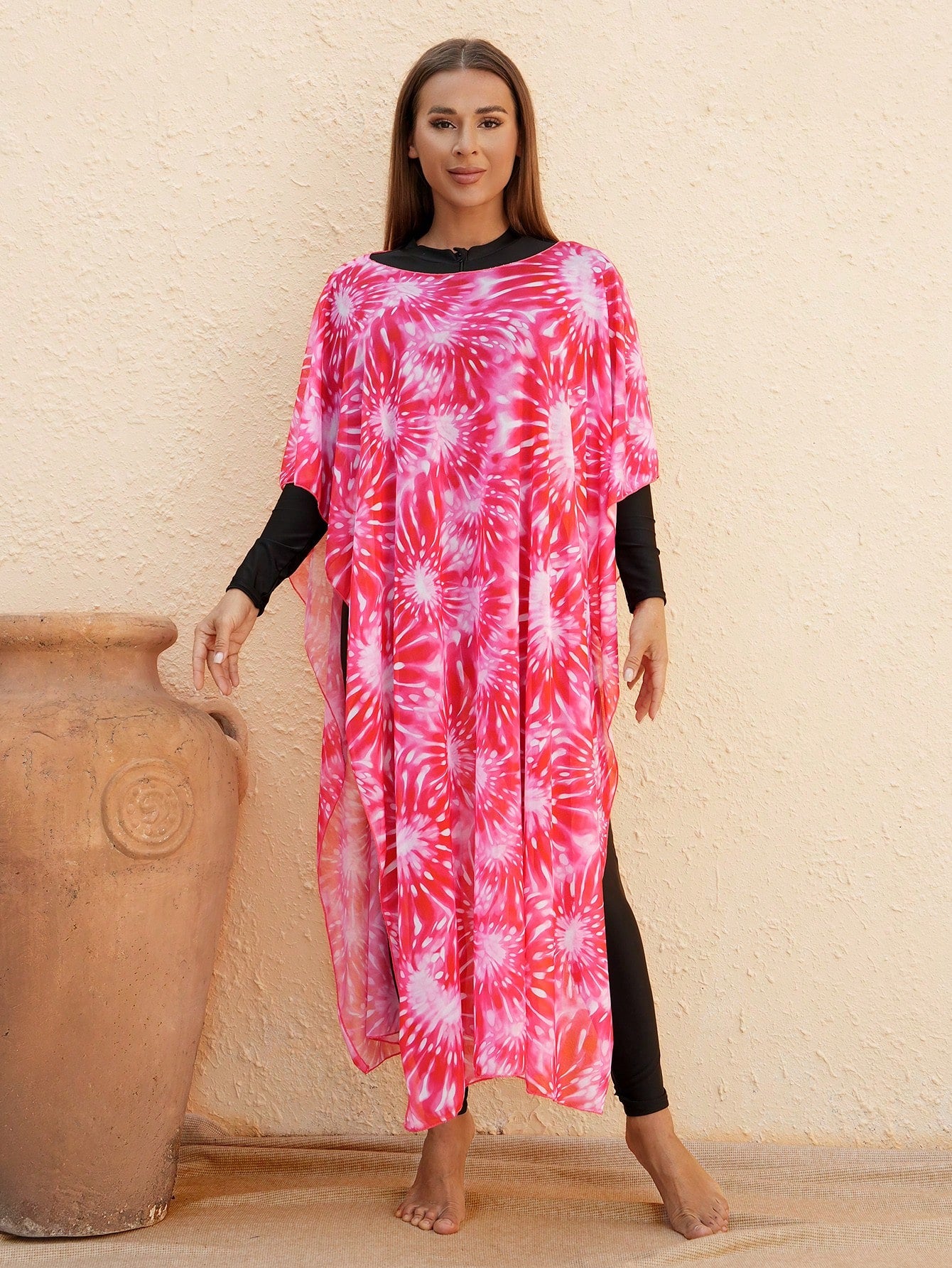 كارديجان كيمونو شيفون طويل متدرج الألوان للنساء من Swim Mulvari، مطبوع عليه بالكامل، مناسب لقضاء عطلة صيفية على الشاطئ