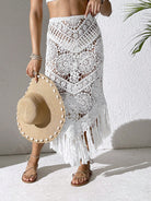 Swim Vcay Women's Vacation Hollow Out Tassel Trim Coverup Wrap Skirt For Summer