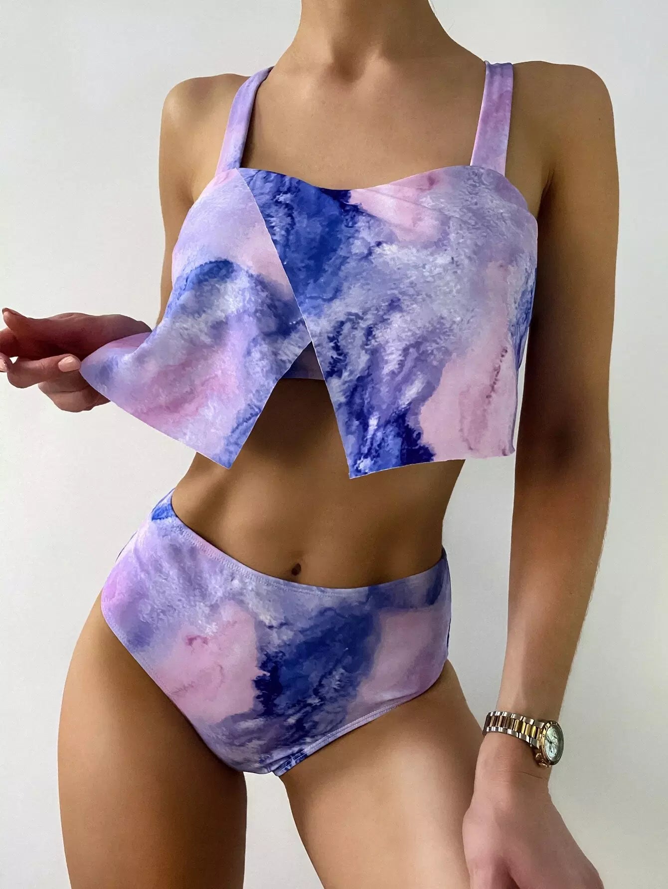 بدلة سباحة بيكيني مصبوغ بربطة عنق مصبوغة