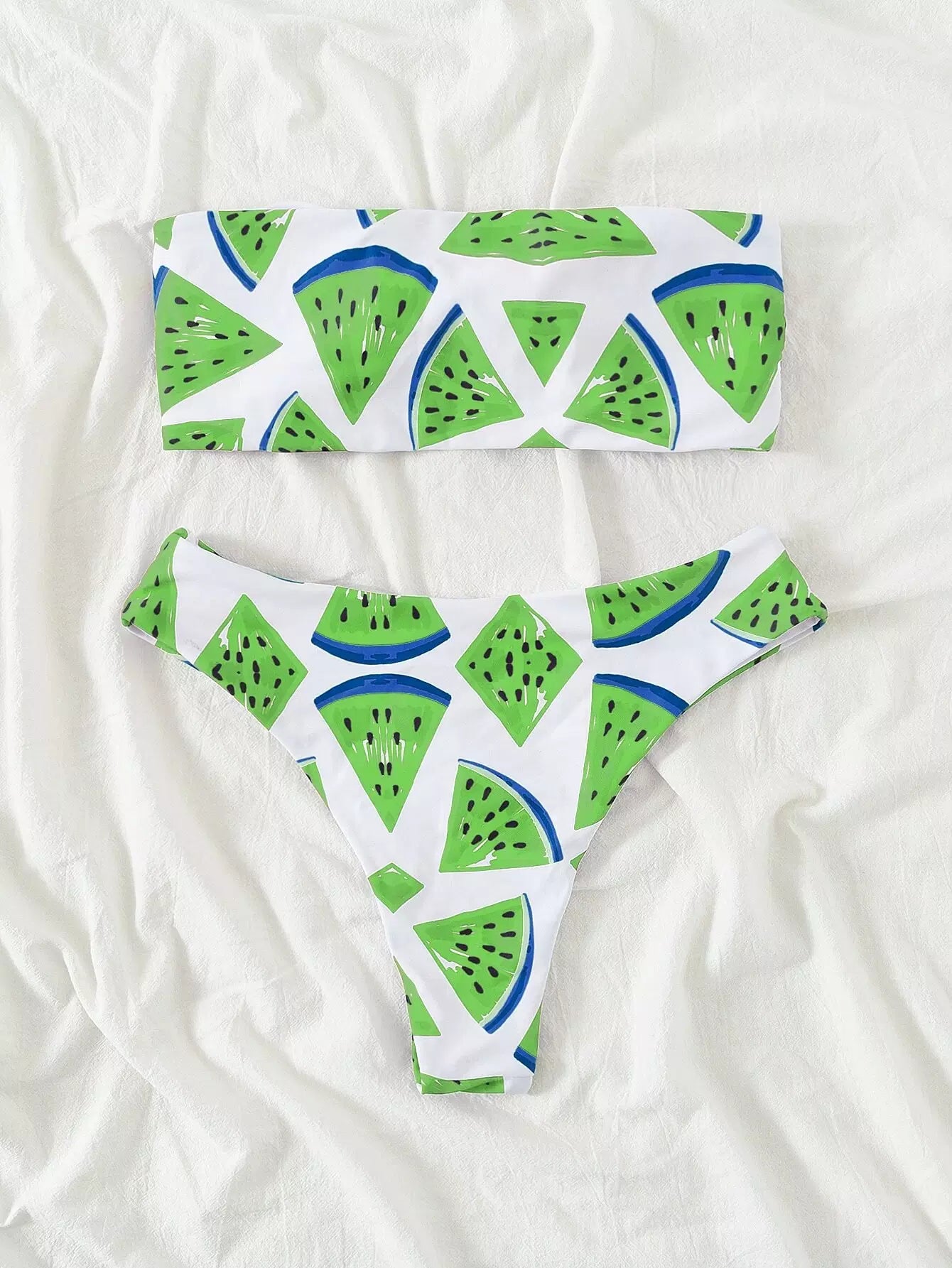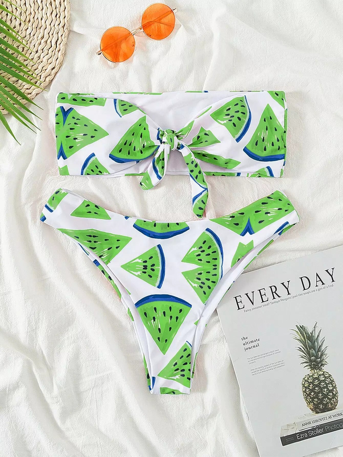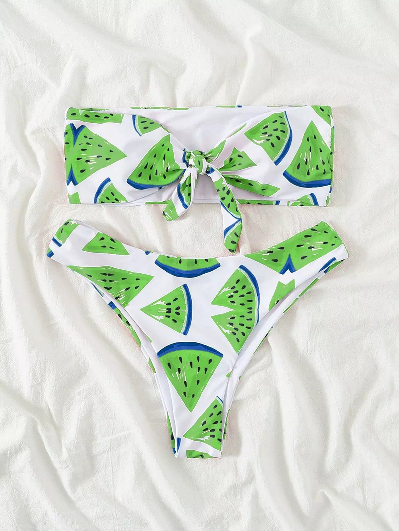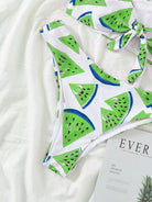 مايوه سباحة بيكيني بعقدة أمامية مطبوع عليها بطيخة