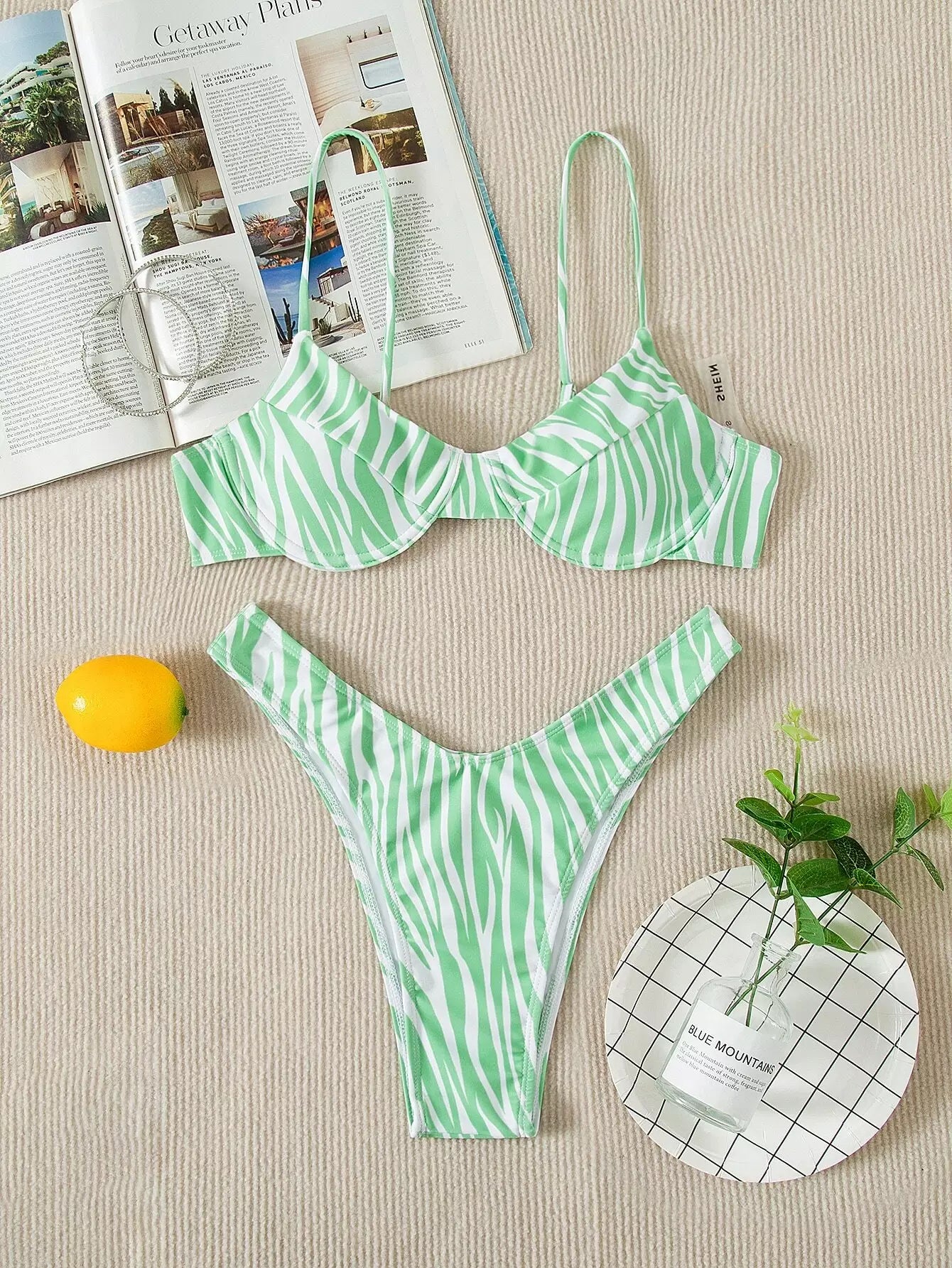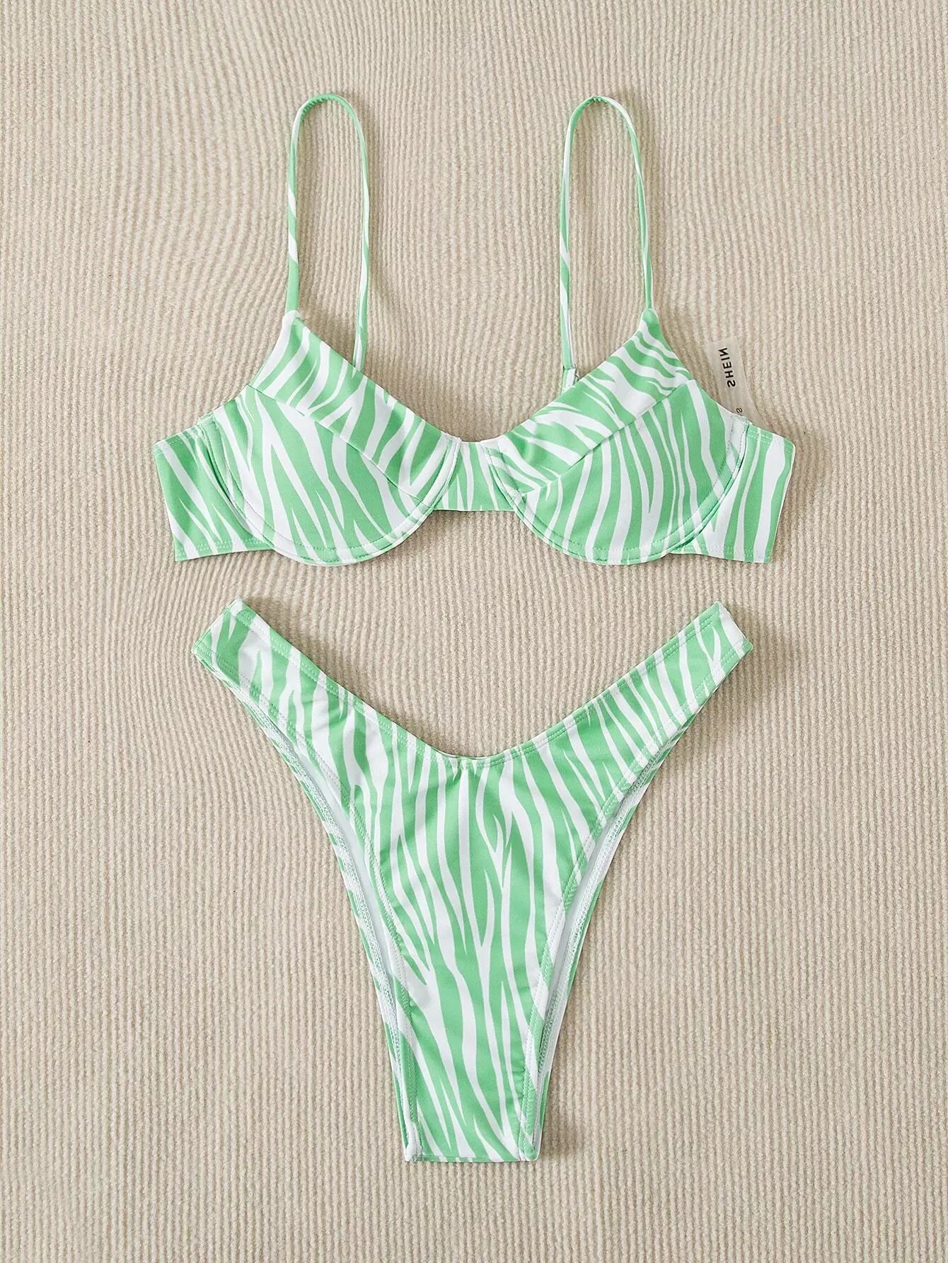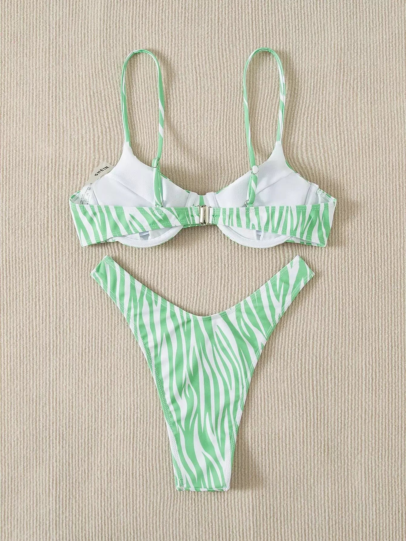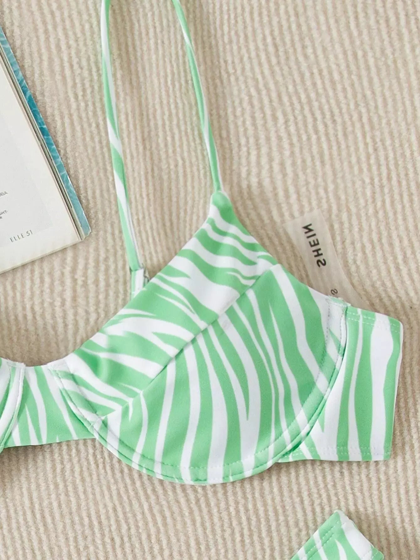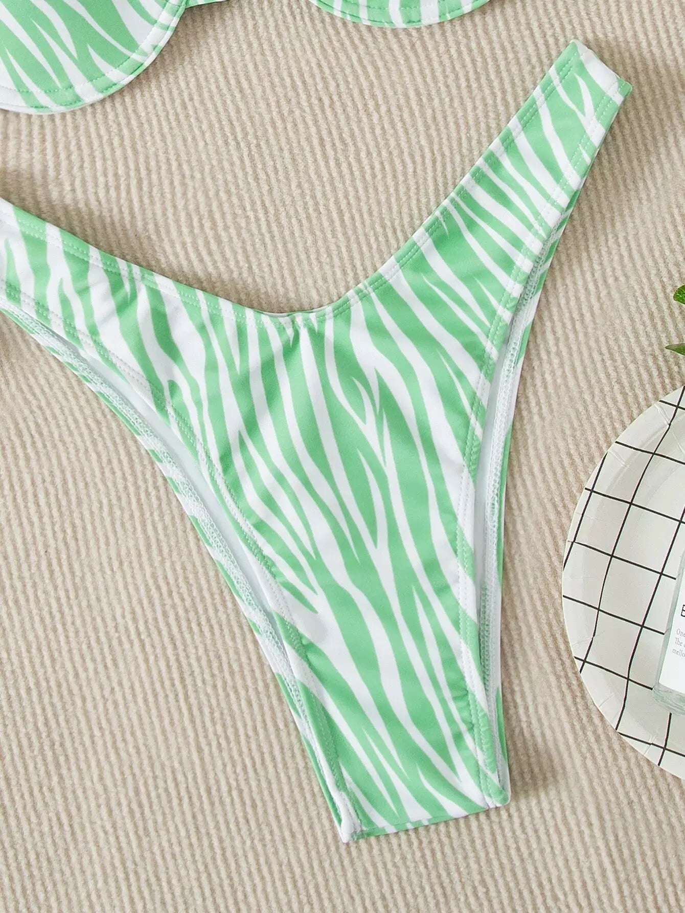 ملابس سباحة بيكيني مخططة بخطوط زيبرا تحت السلك
