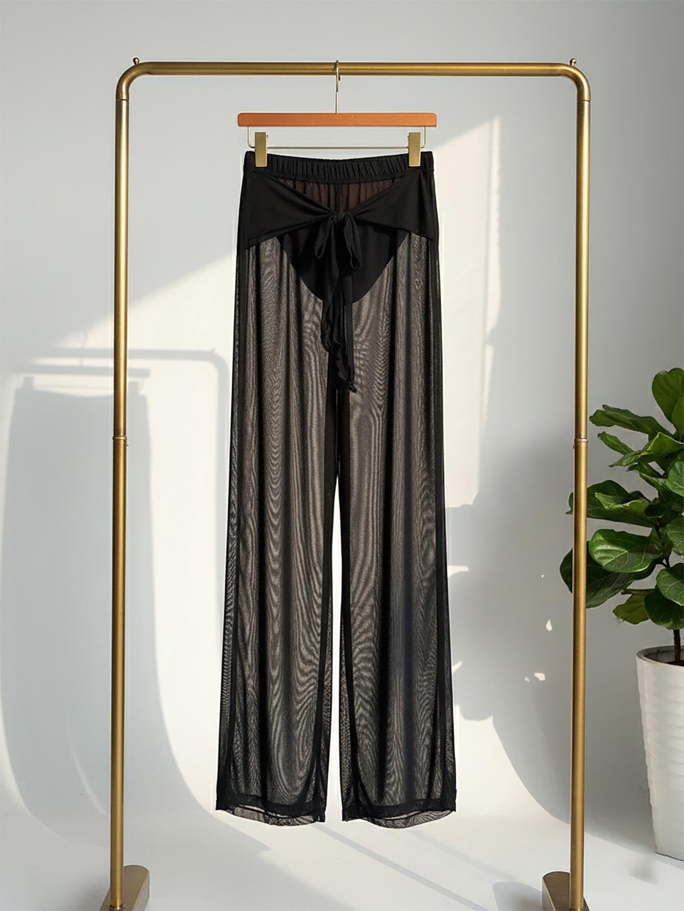 سروال سباحة صيفي شفاف برباط أمامي، قطعة واحدة، مناسب للشاطئ