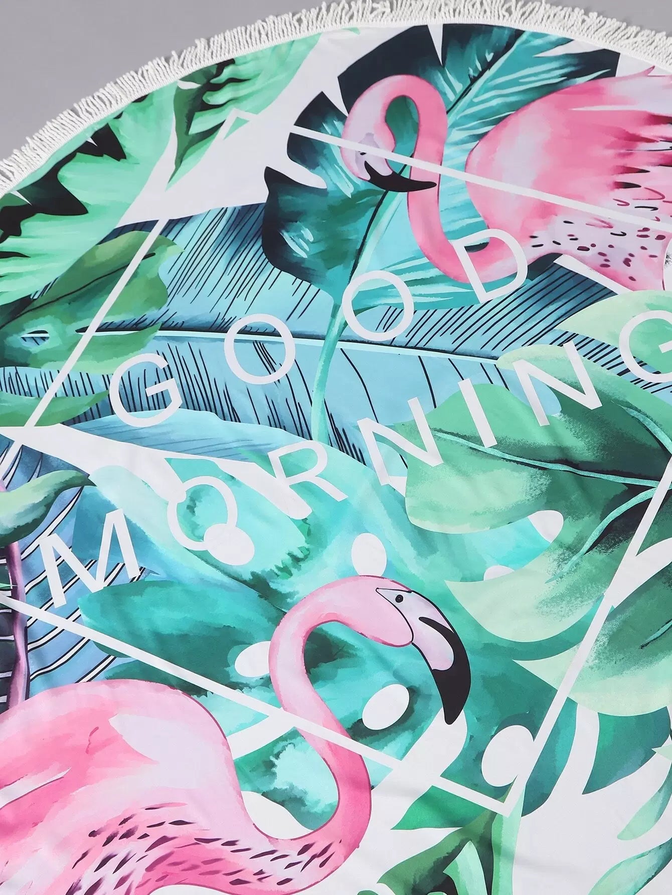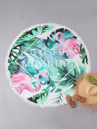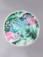 بطانية شاطئ دائرية بطبعة طيور النحام والمناطق الاستوائية