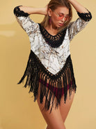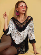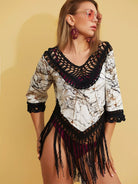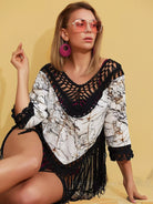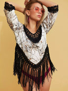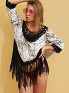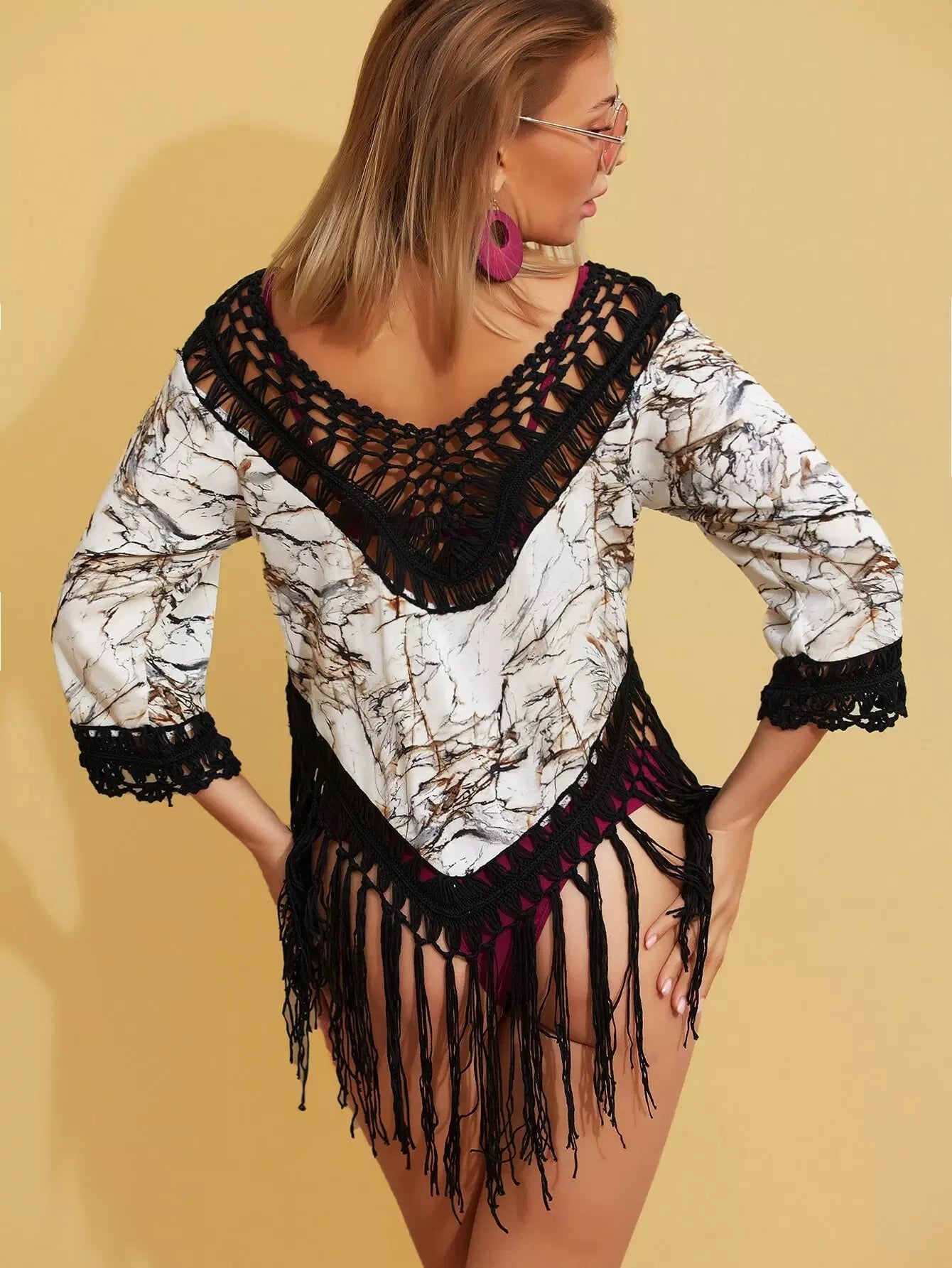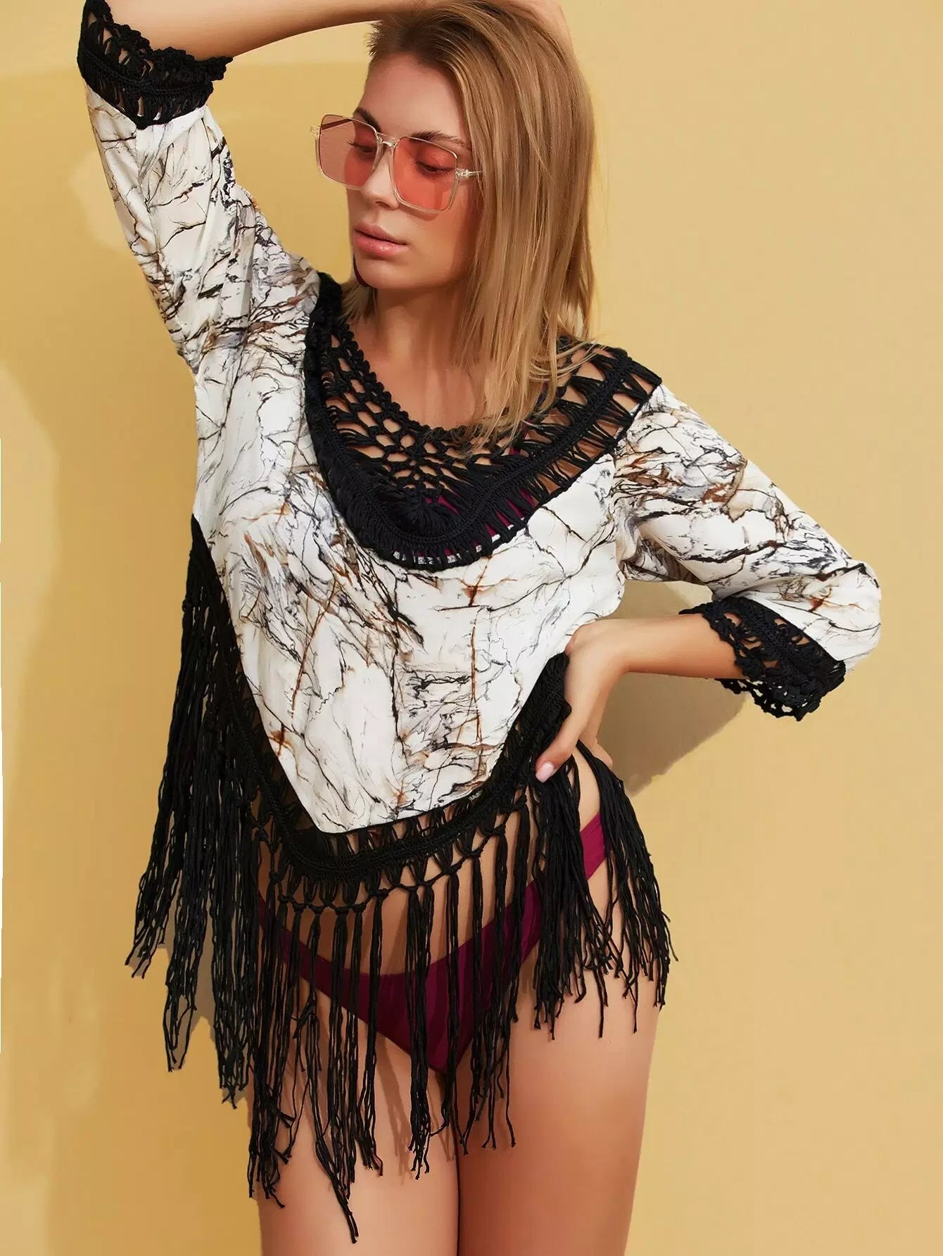 غطاء بحاشية مكرمية غير متماثلة بطبعة رخامية بدون بيكيني