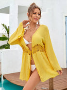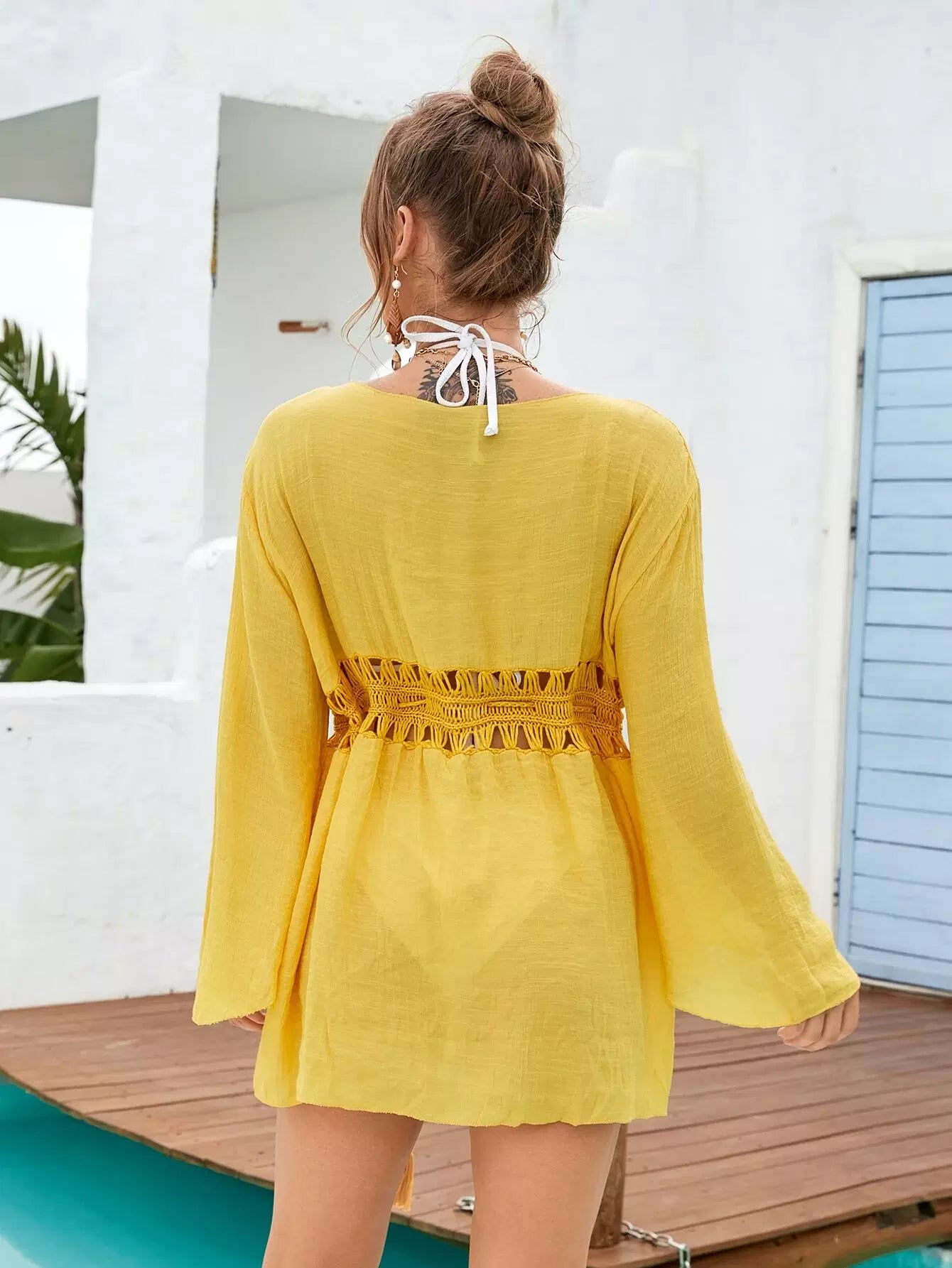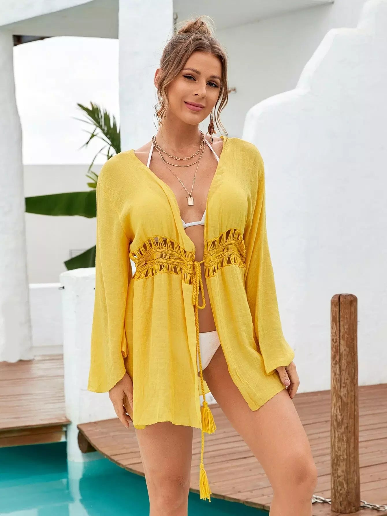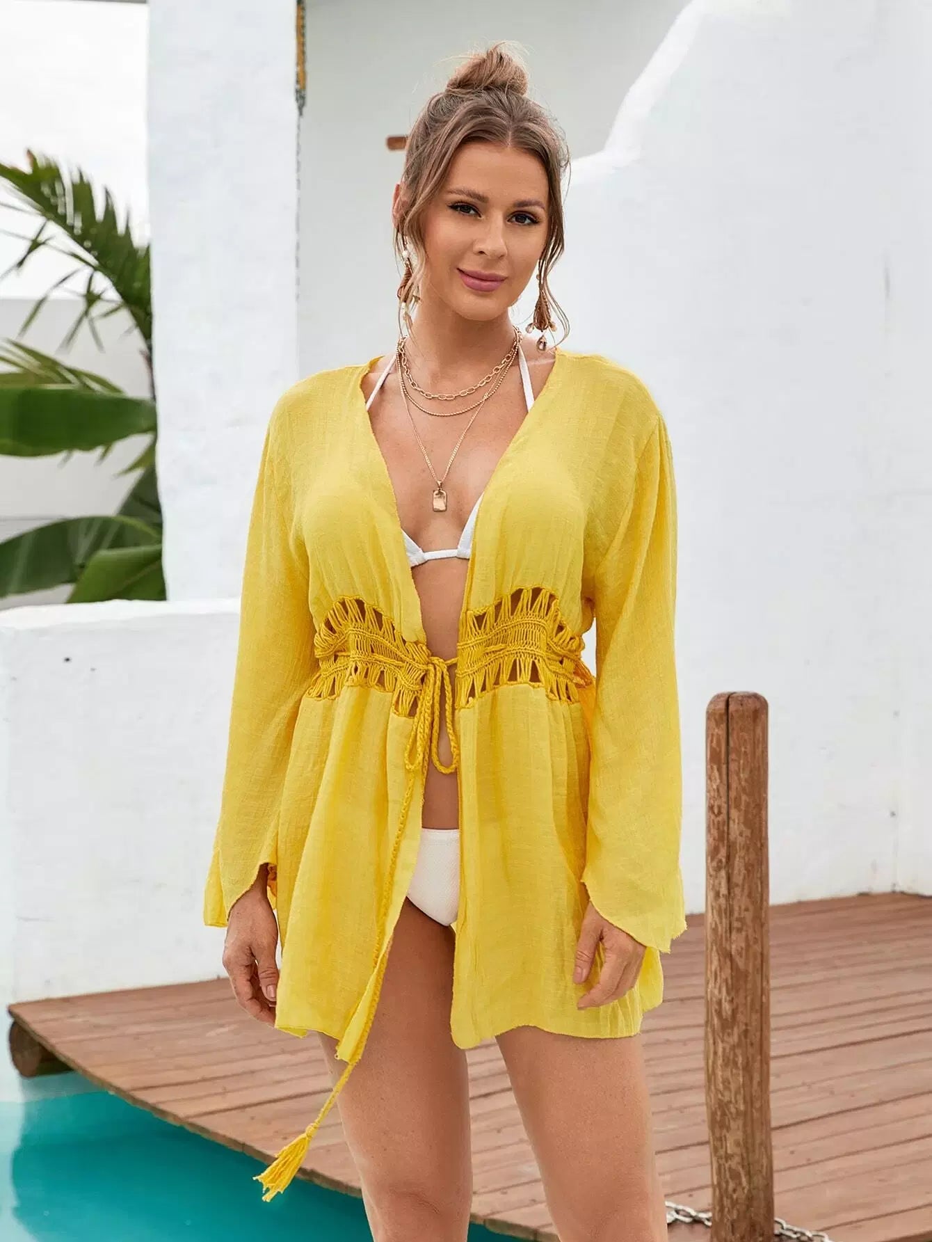 كيمونو برباط أمامي كروشيه بلون متباين
