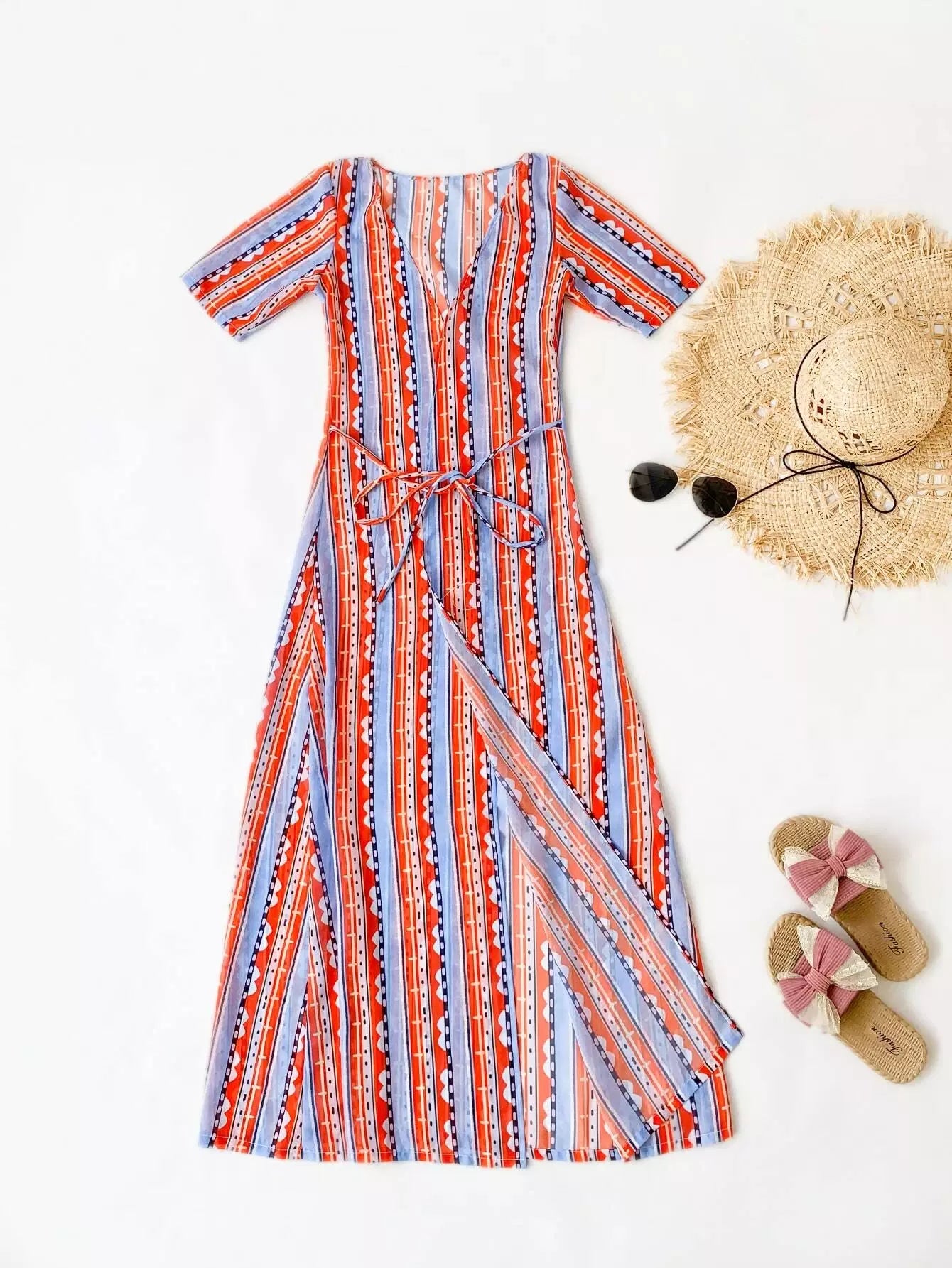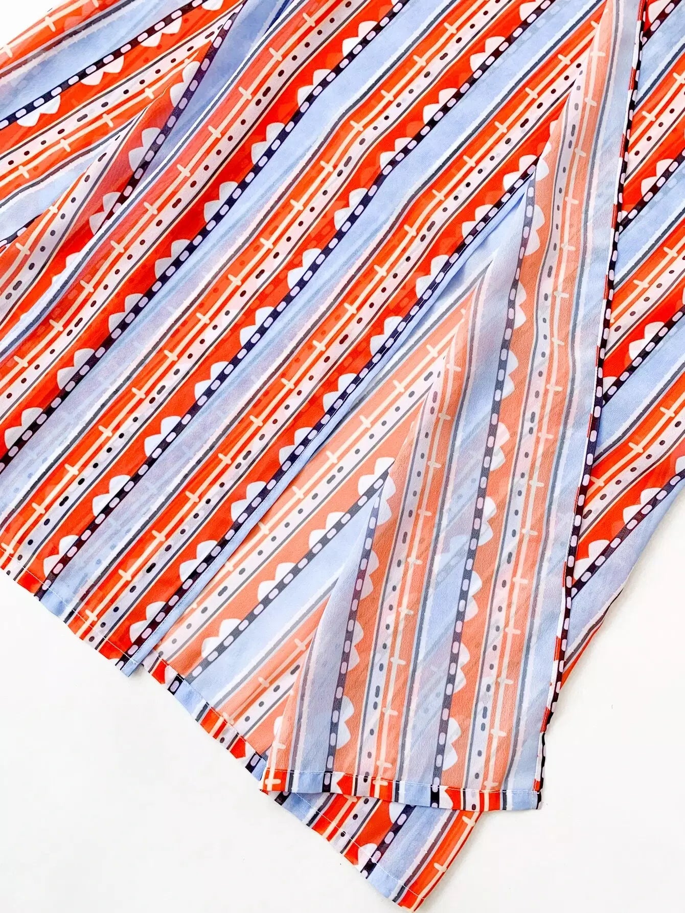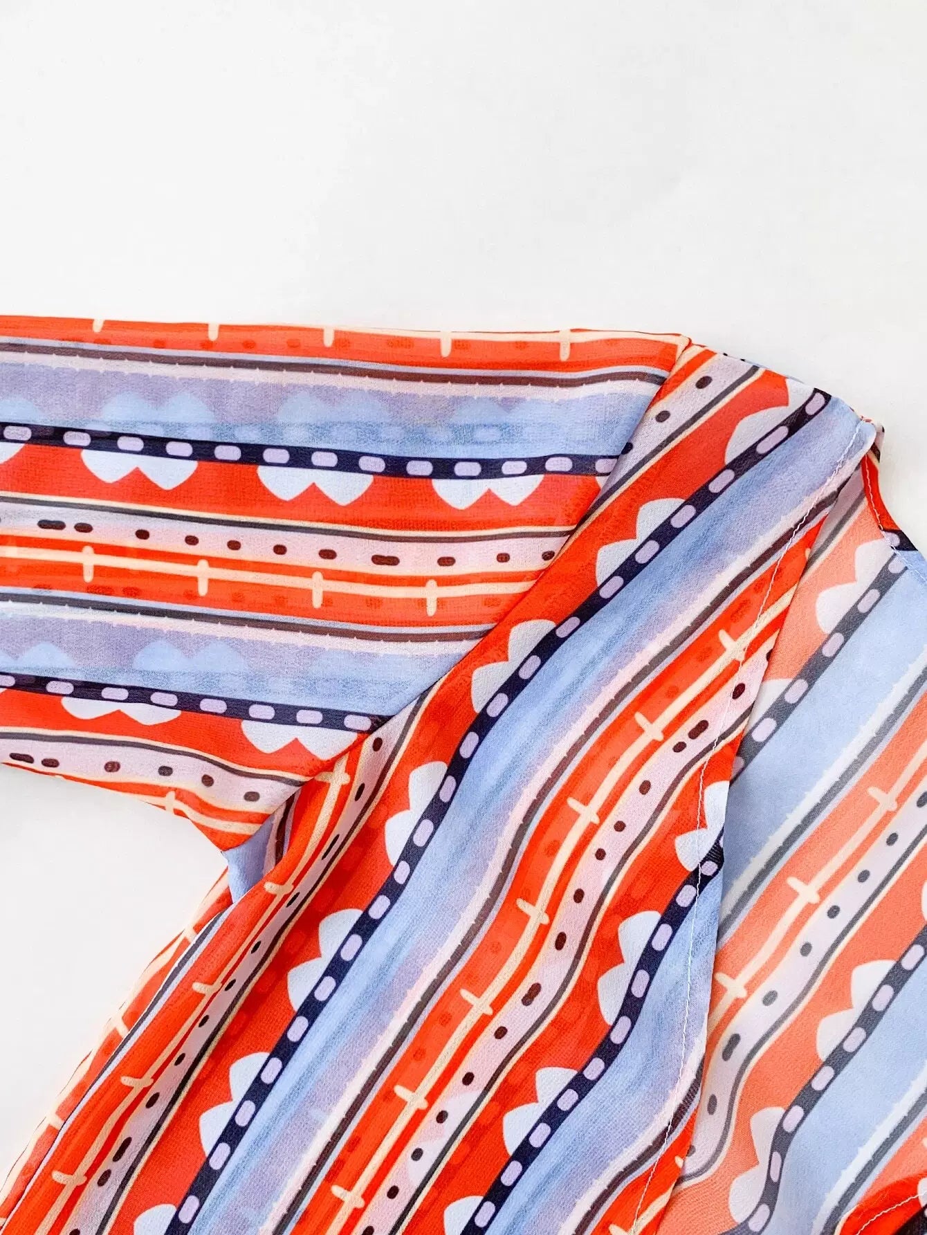 كيمونو بطبعة جيو ومخطط بربطة عنق أمامية