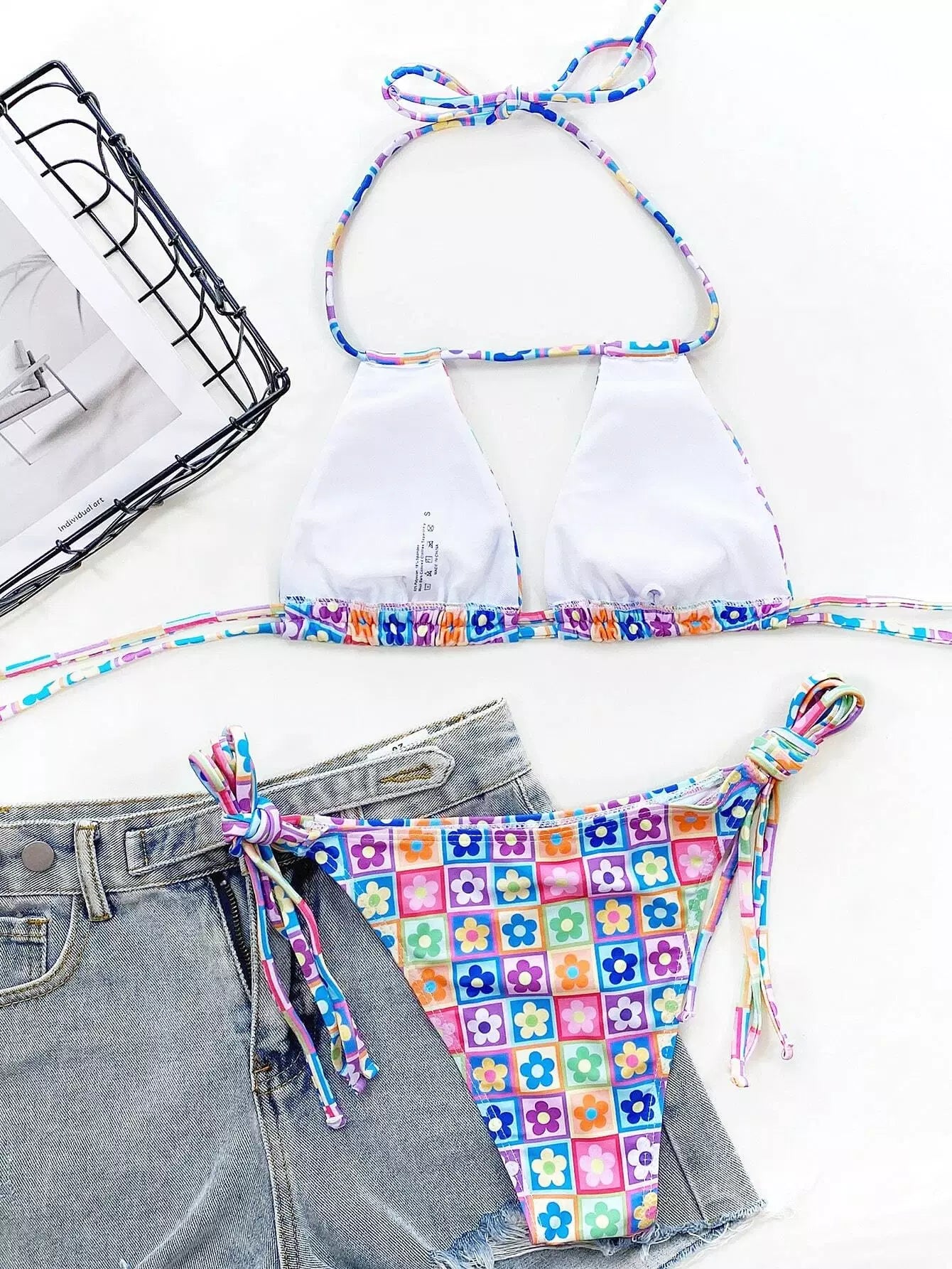مايوه بكيني سباحة بيكيني بطبعة زهور على شكل ربطة جانبية