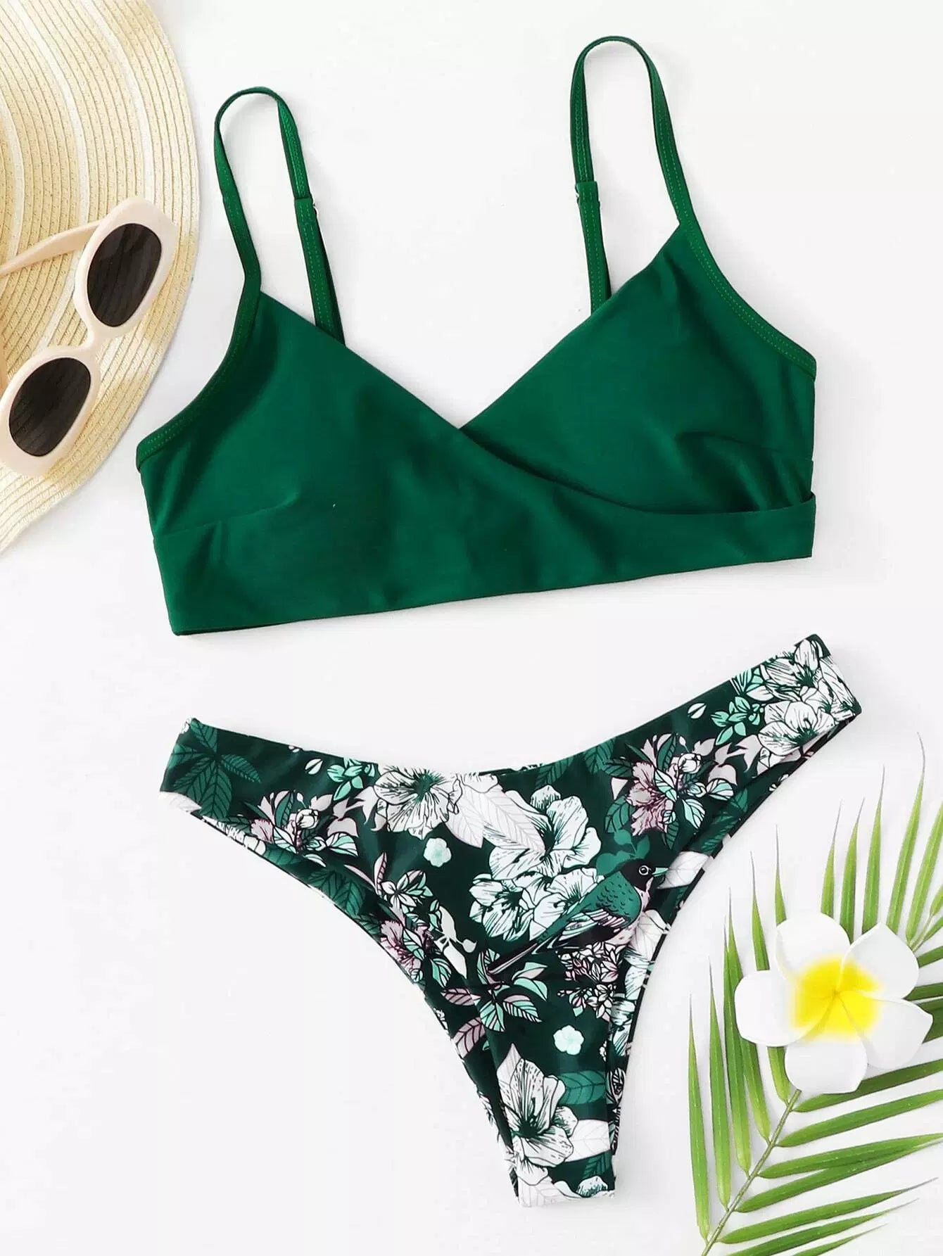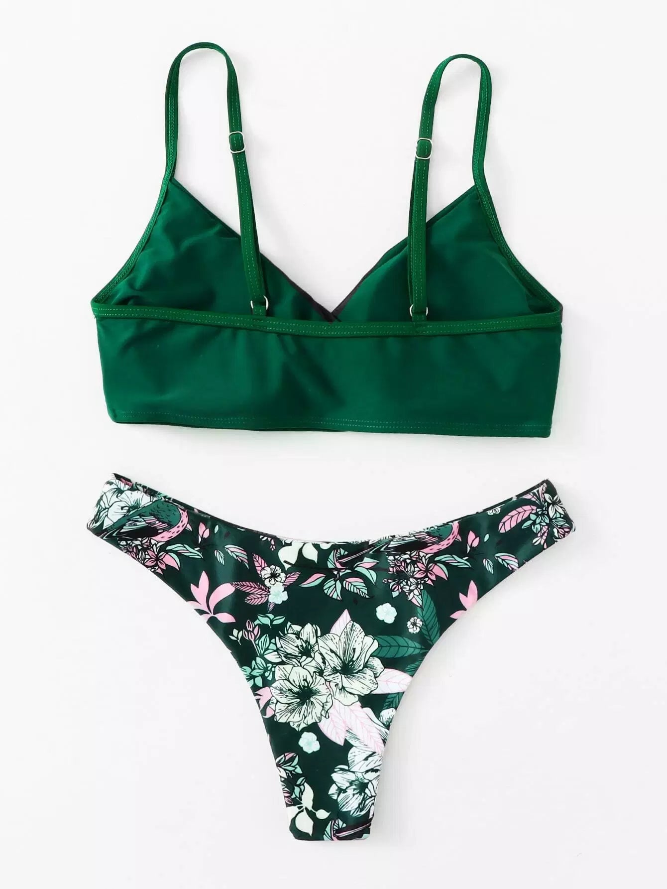 بيكيني سباحة بيكيني برقبة حمالة صدر مطبوع عليها زهور