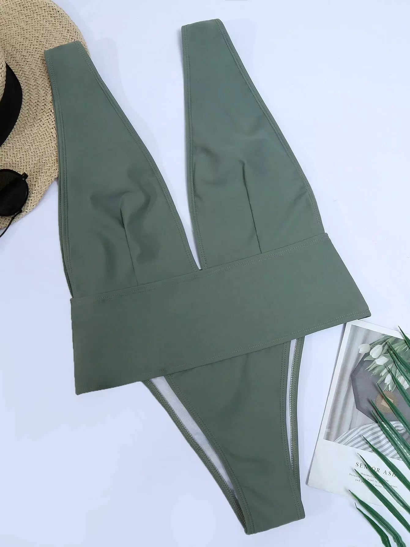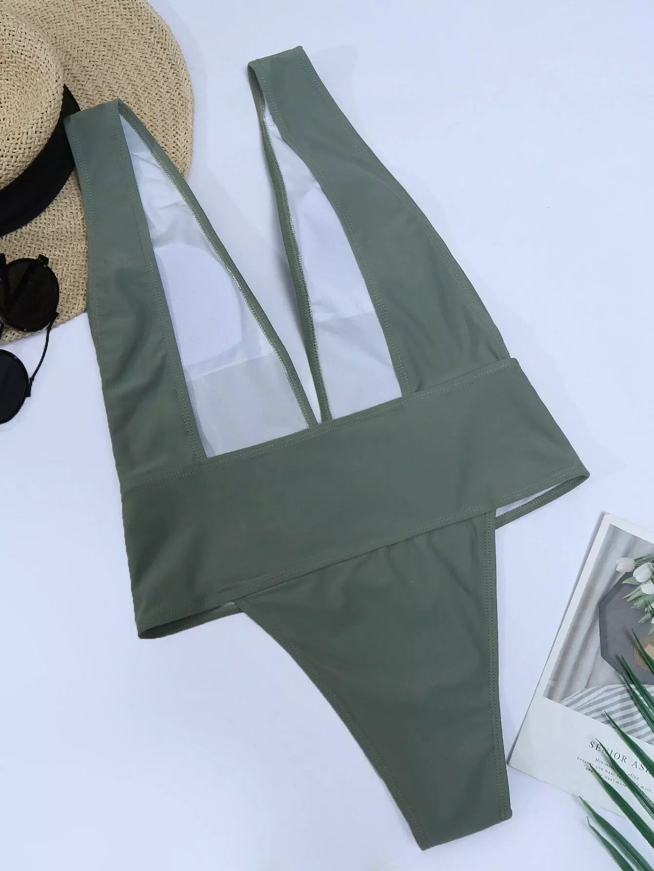 بدلة سباحة سادة بقطعة واحدة مكشوفة من قطعة واحدة