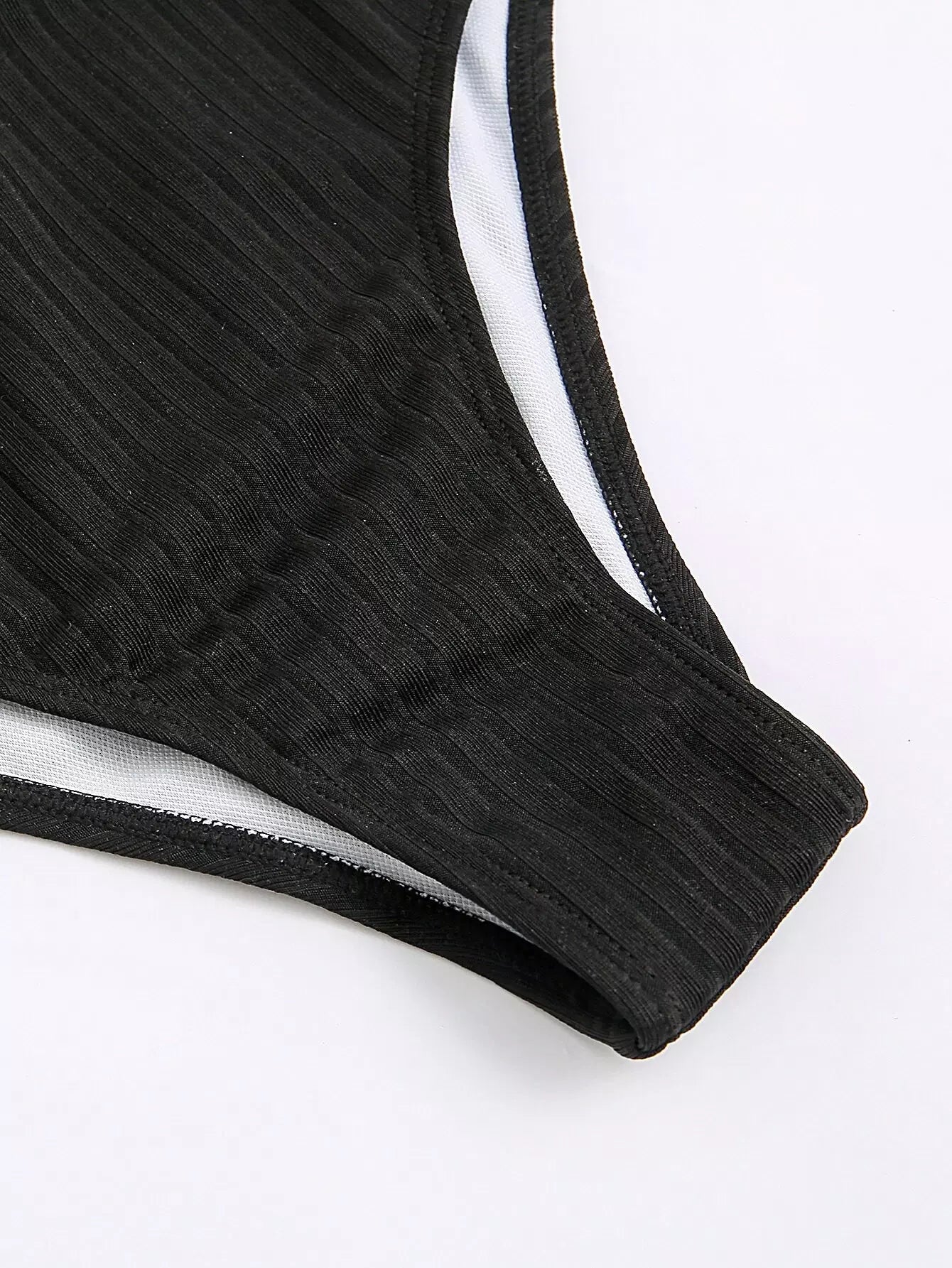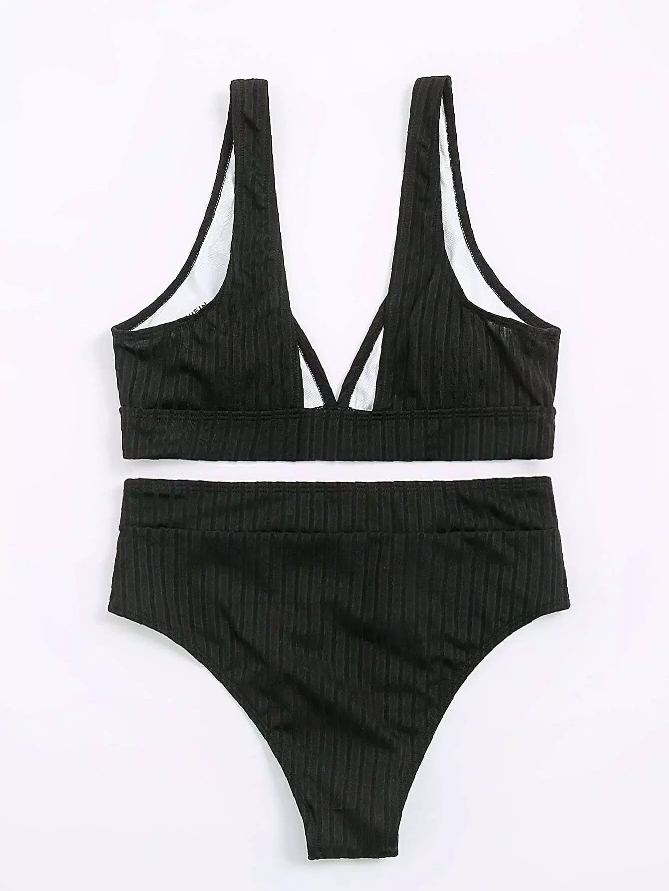بدلة سباحة بيكيني عالي الخصر ضلع