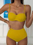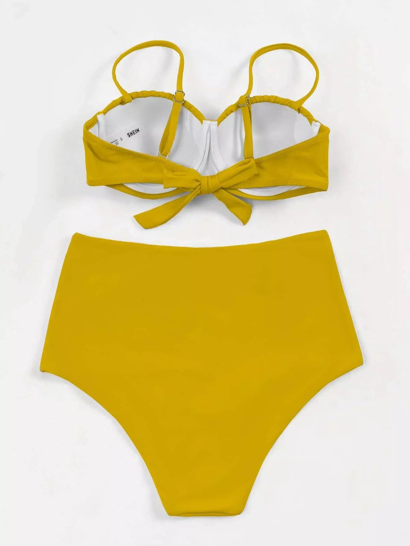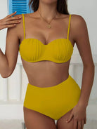بدلة سباحة بيكيني عالية الخصر مكشكشة عند الصدر ومرتفعة للصدر