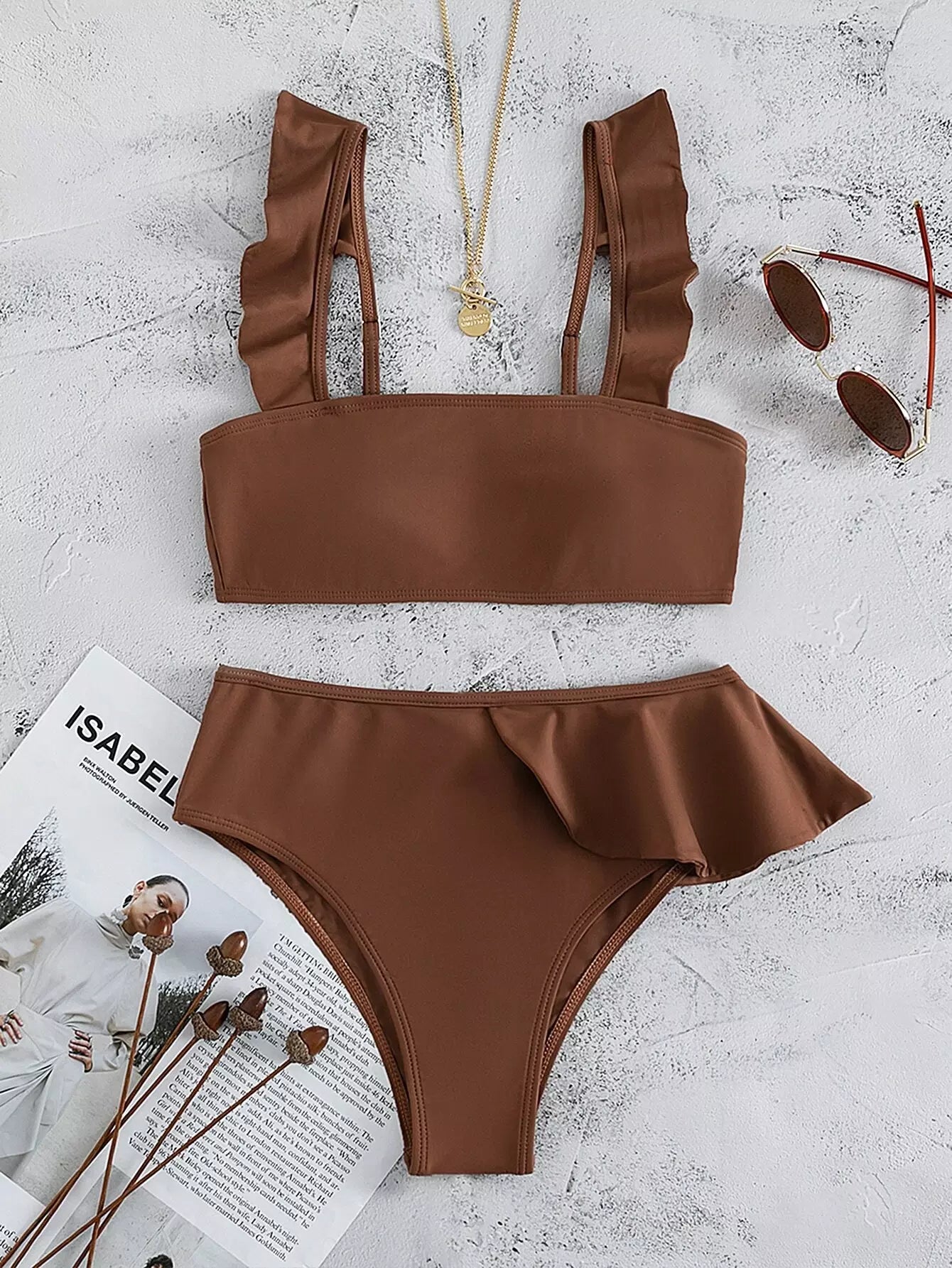 بدلة سباحة بيكيني بكشكش عالي الخصر
